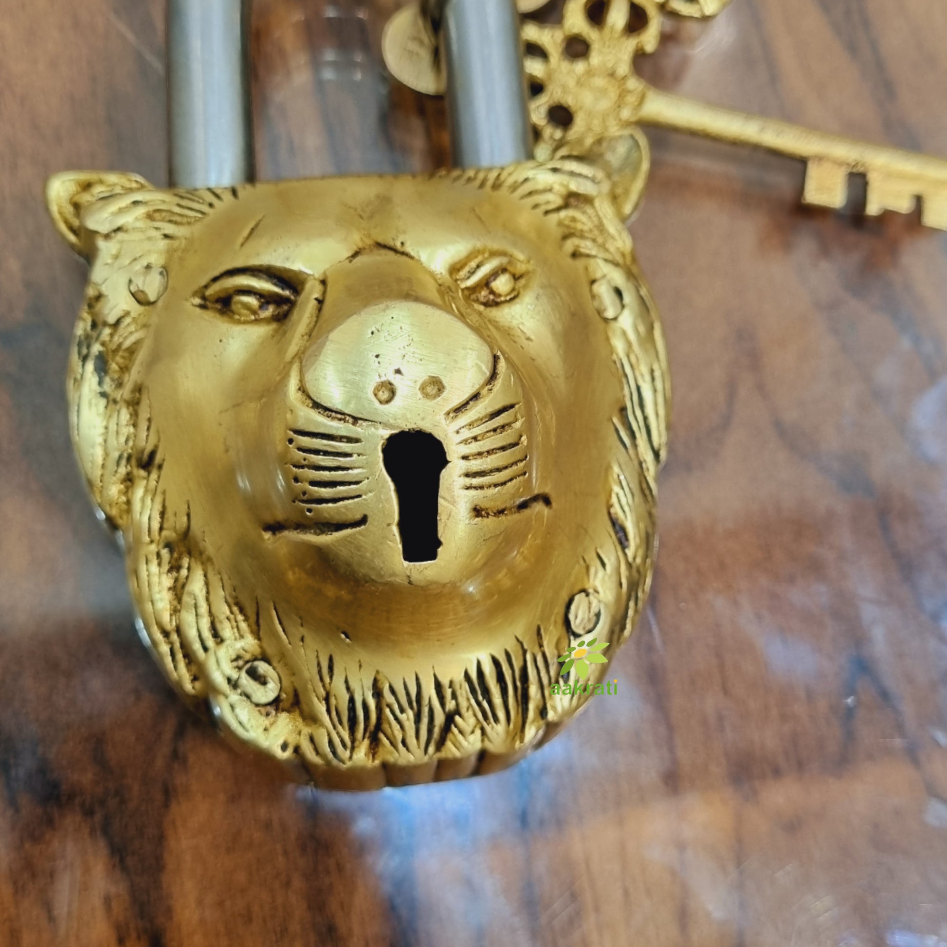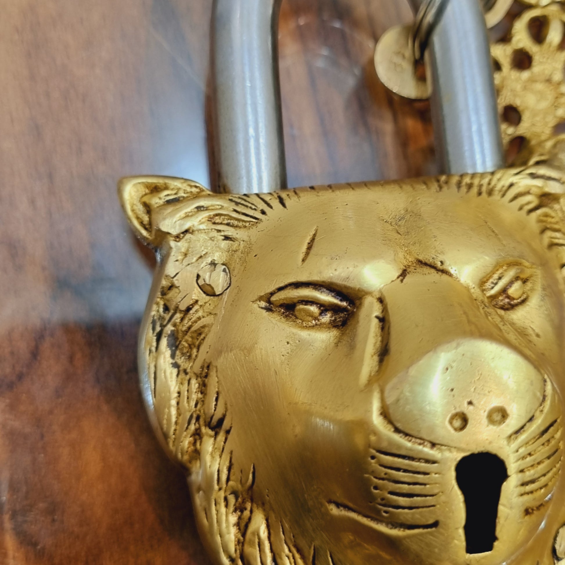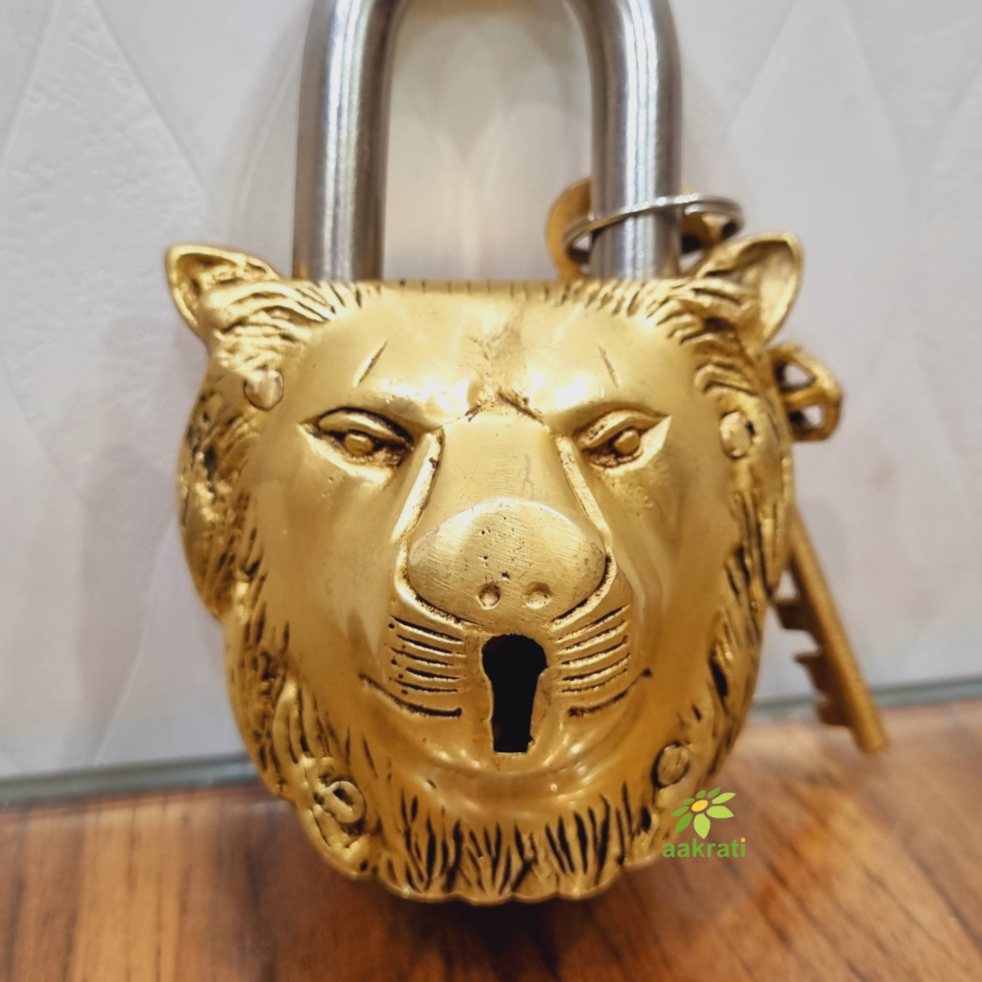 Majestic Brass Lion Shape Padlock | Traditional Lock for a Secure and Elegant Home | Lion Head Brass Padlock ( Yellow, 5.5 inch)