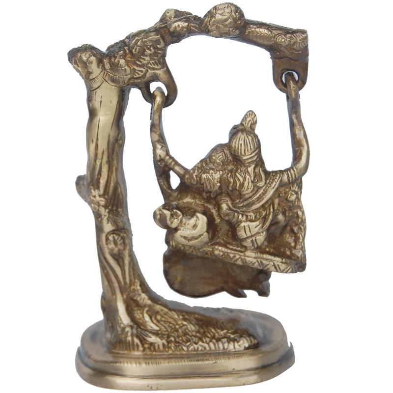 Brass Radha Krishna on Jhula | Bring the Blessings of Love & Peace | Luxury Brass Radha Krishna Statue on Swing ( Yellow, 7 inch)