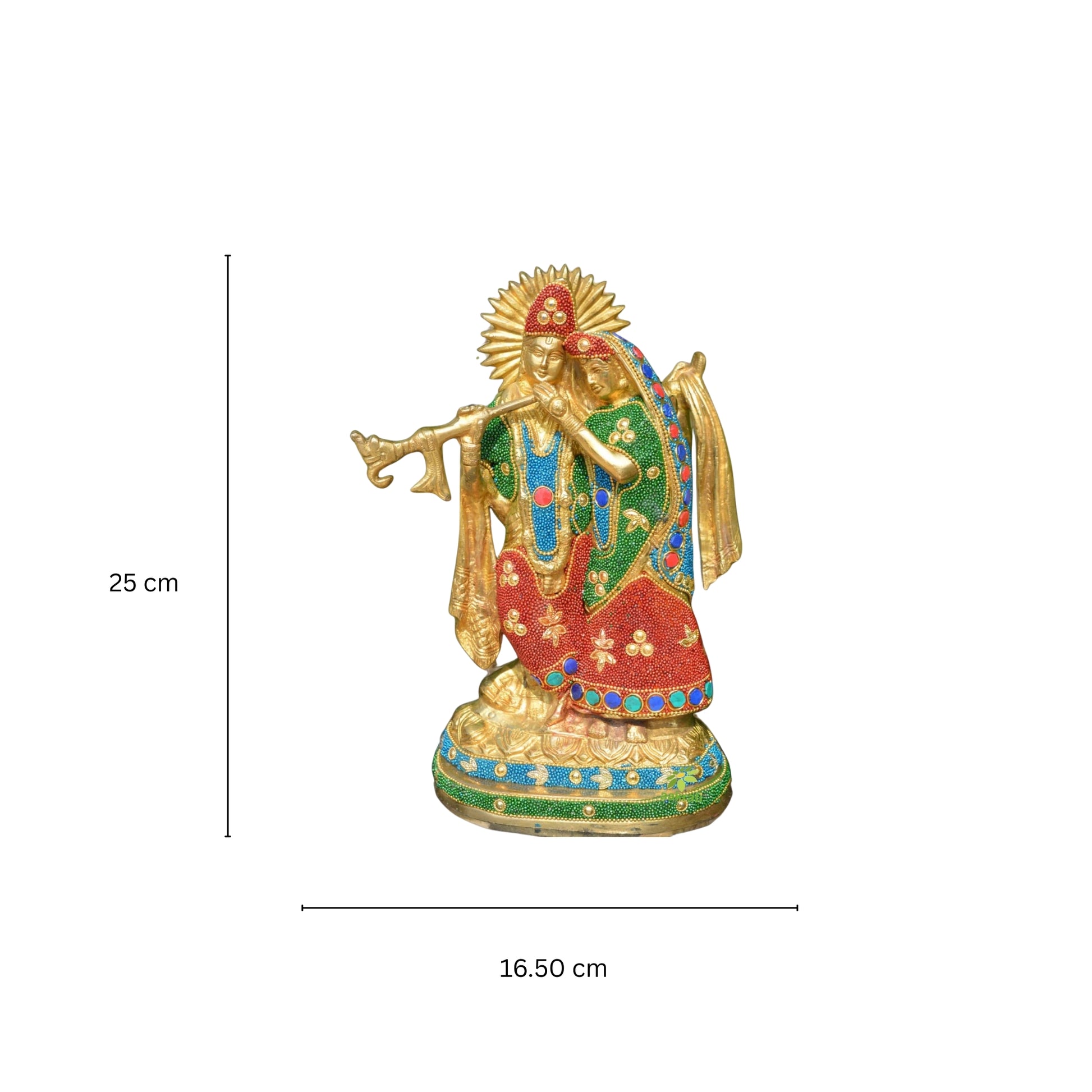 Gift in metal brass with stone work hindu religious Radha krishna scultpure
