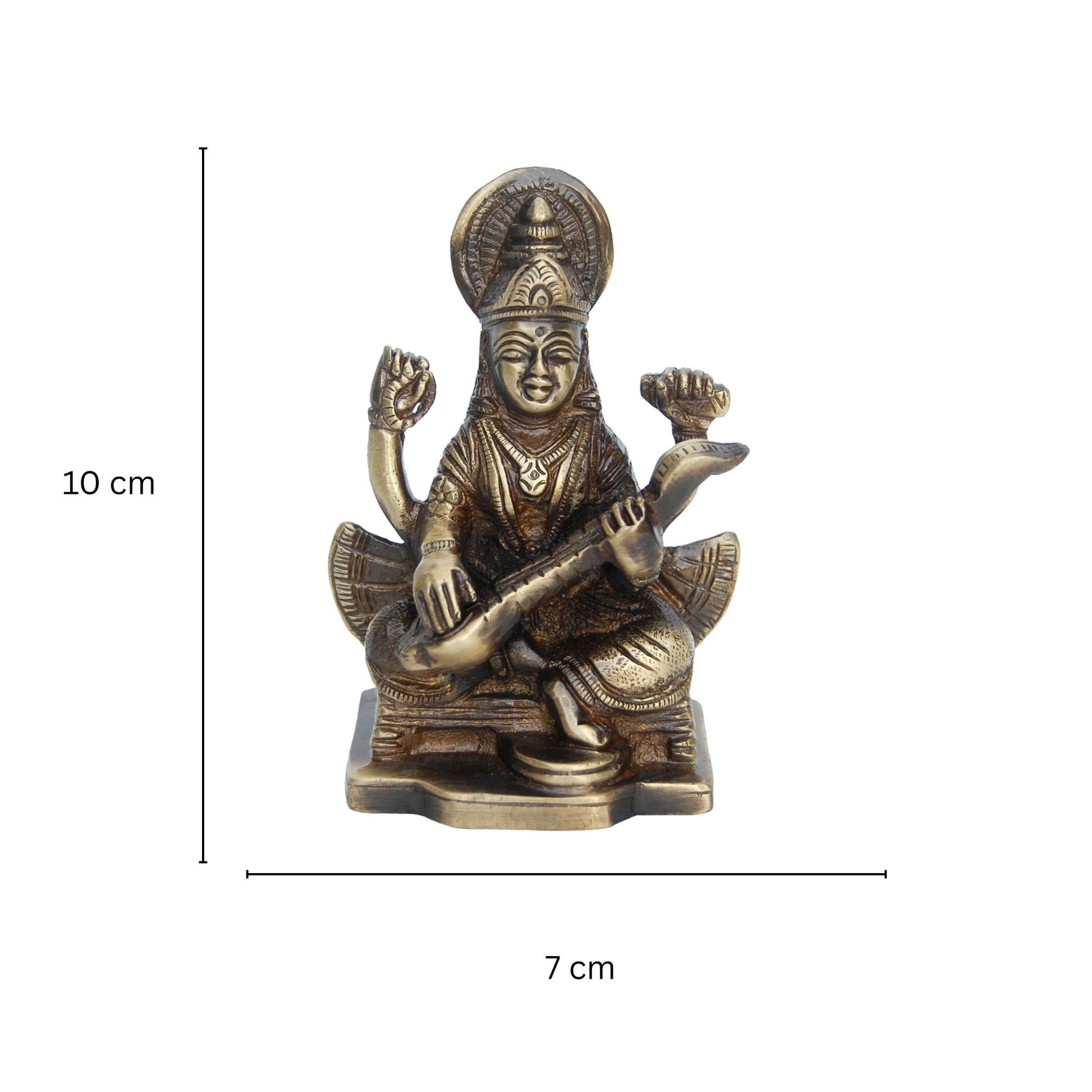 Traditional Brass Saraswati Idol | Perfect for Home Puja and Decor | Brass Goddess Saraswati Statue ( Brown, 3.9 inch)