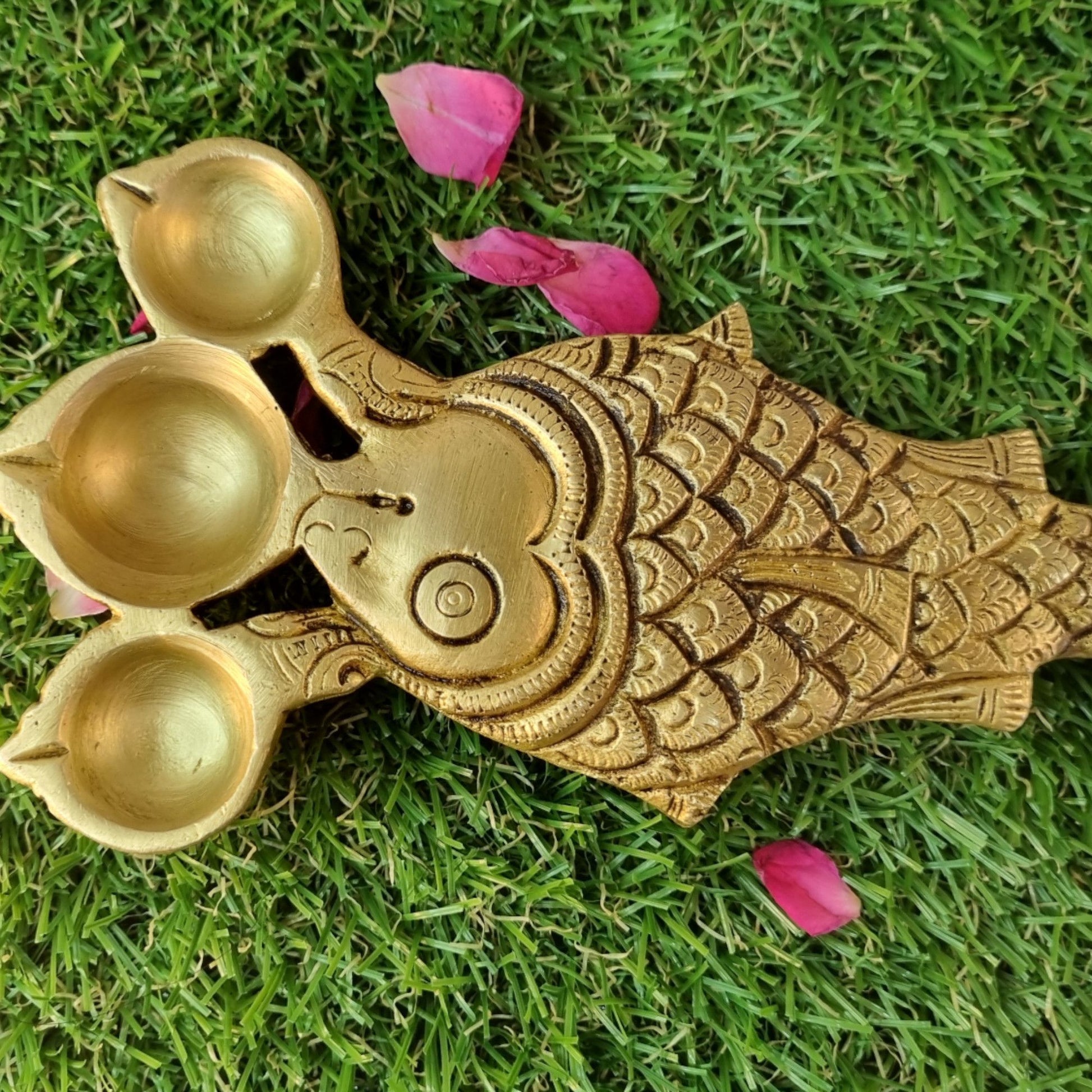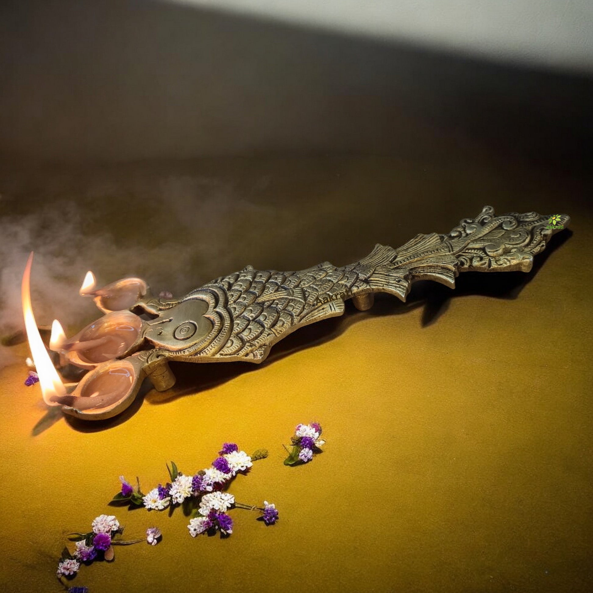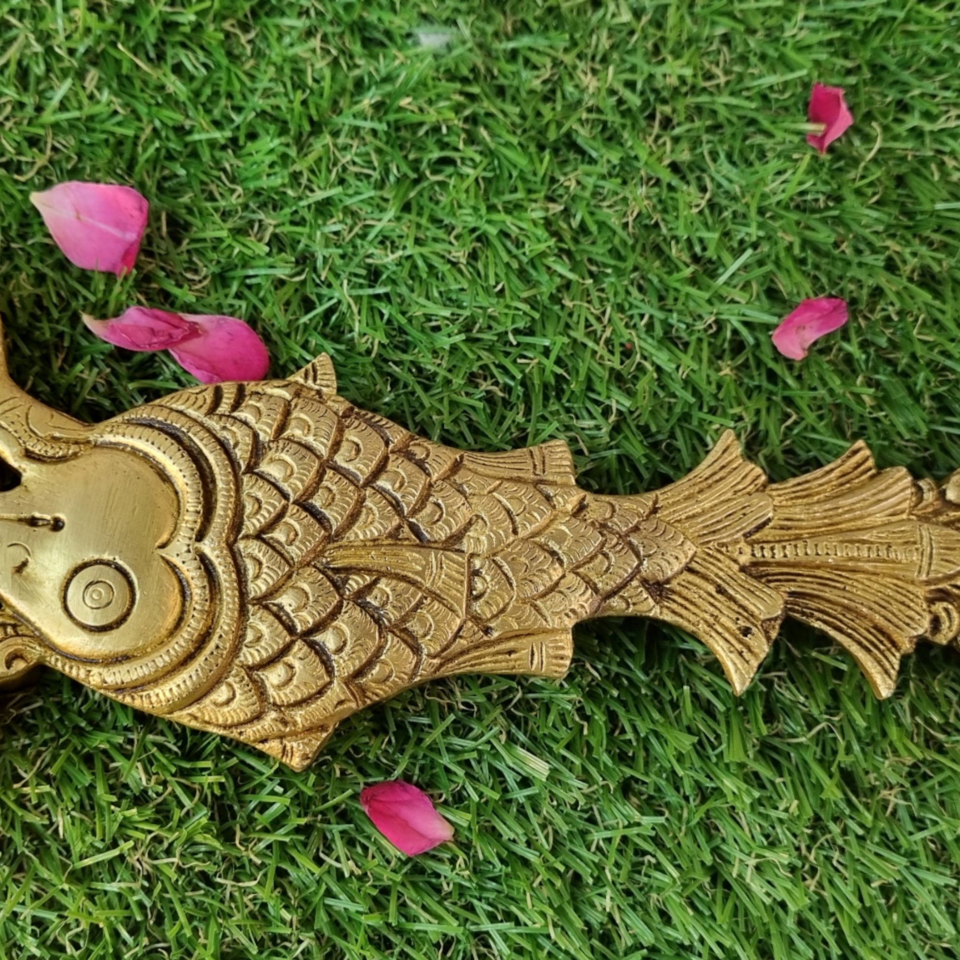 Traditional Brass Fish Shape Pooja Spoon | Handcrafted Spoon for Spiritual Rituals | Brass Ritual Spoon ( Yellow, 10 inch)
