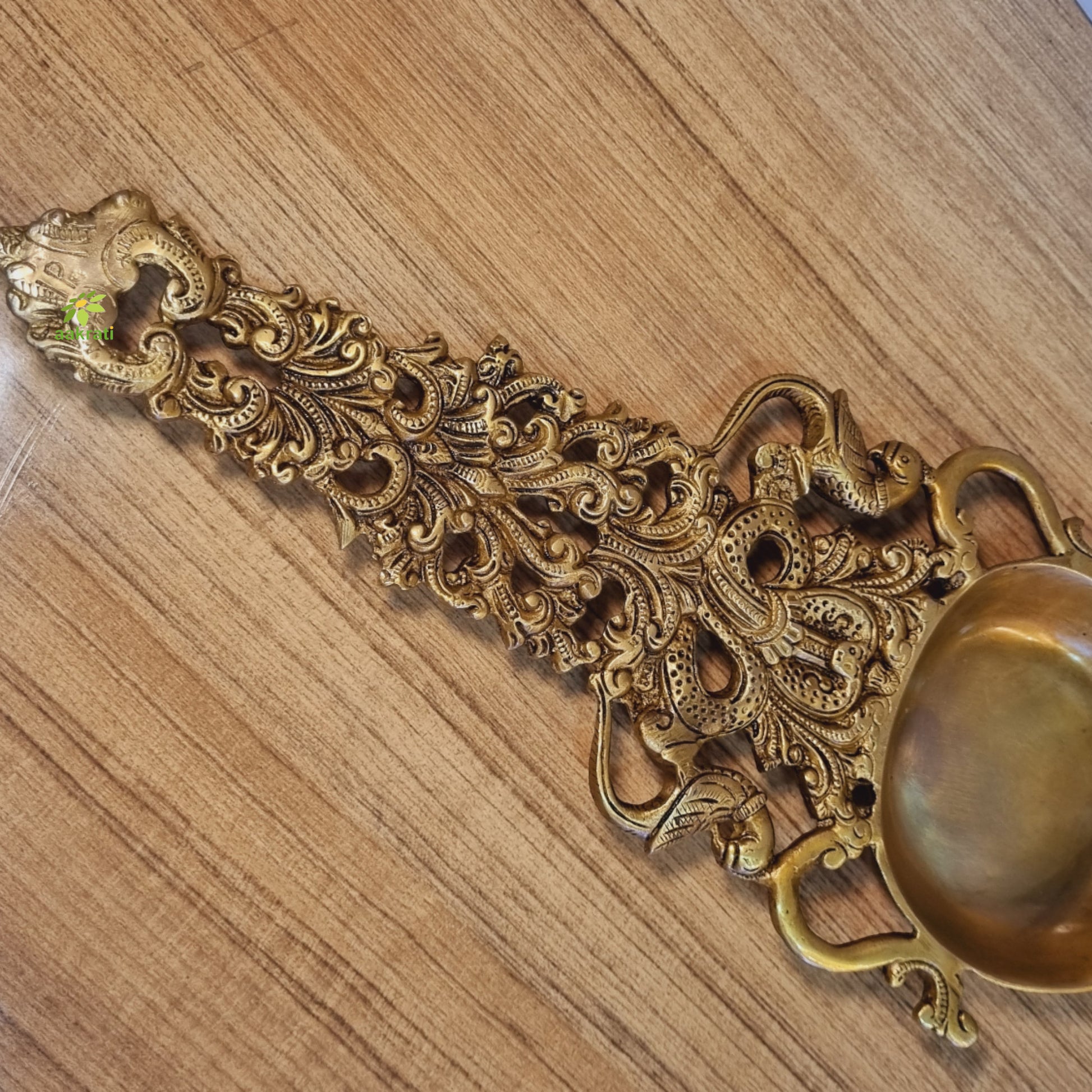 Traditional Brass Pooja Spoon | Handcrafted Spoon for Spiritual Rituals | Brass Ritual Spoon ( Yellow, 13 inch)