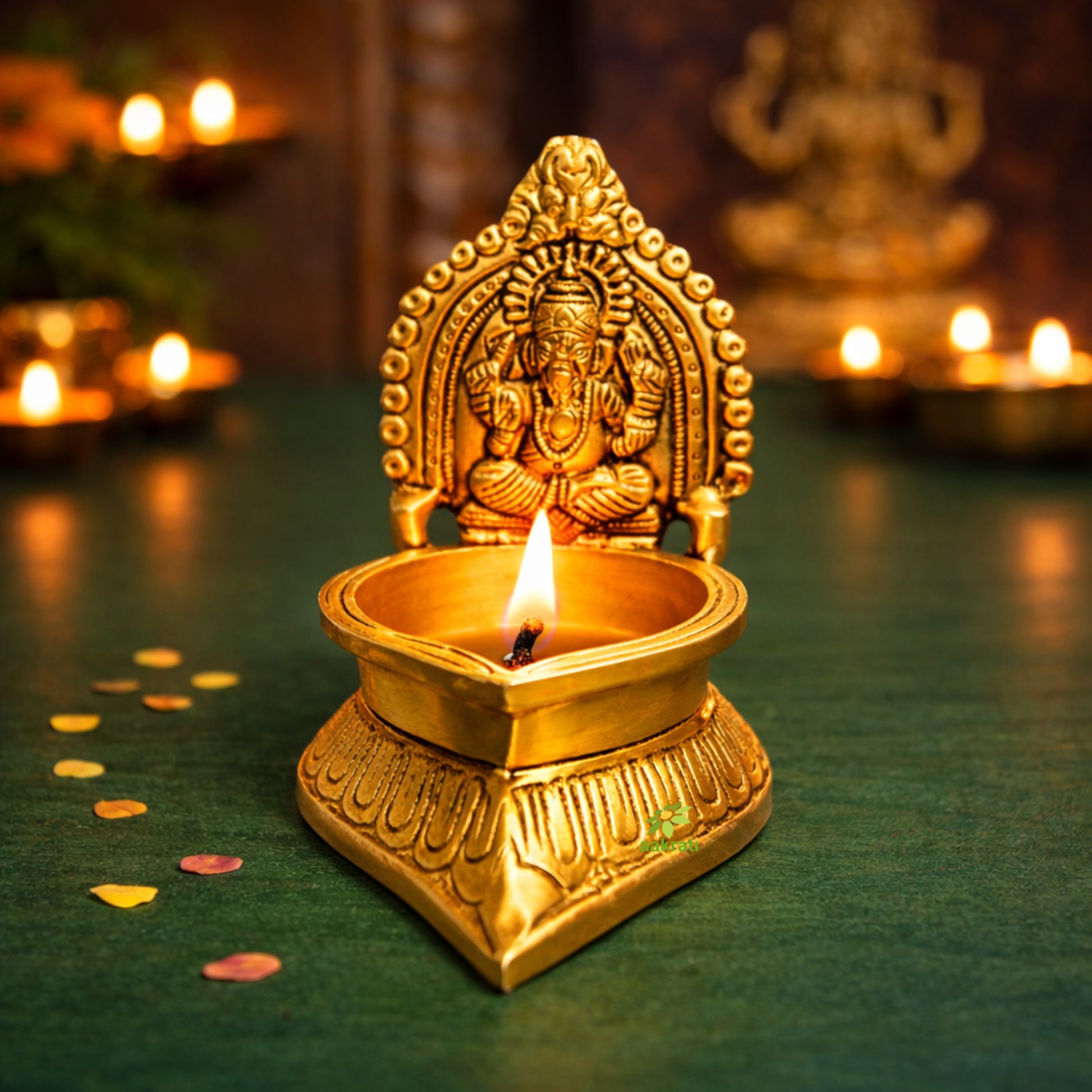 Brass Ganesh Diya for Pooja | Brass Oil Lamp | Brass Diya for Temple (Yellow, 4.2 Inches)