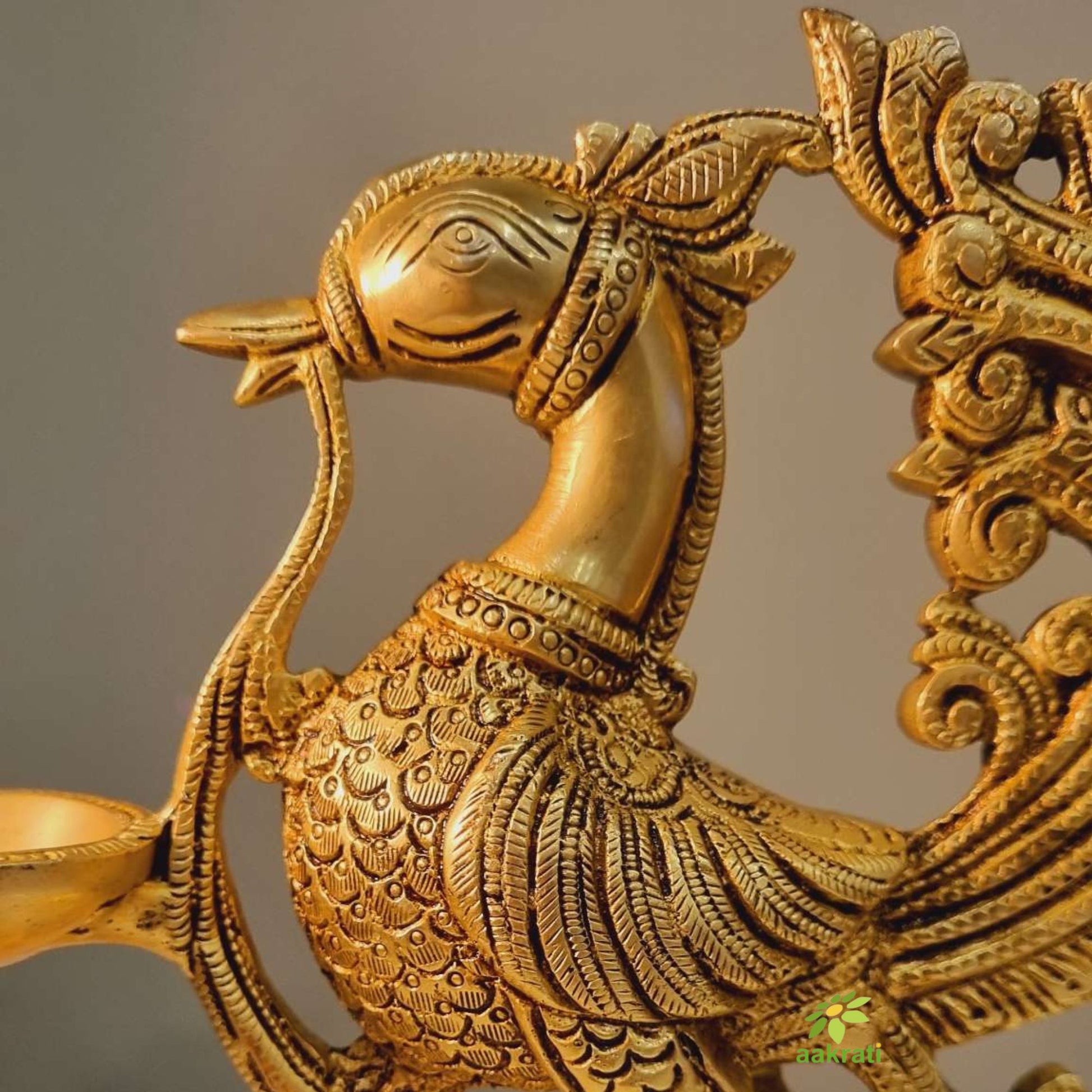 Peacock Floor Oil Lamp Brass Decorative Statue