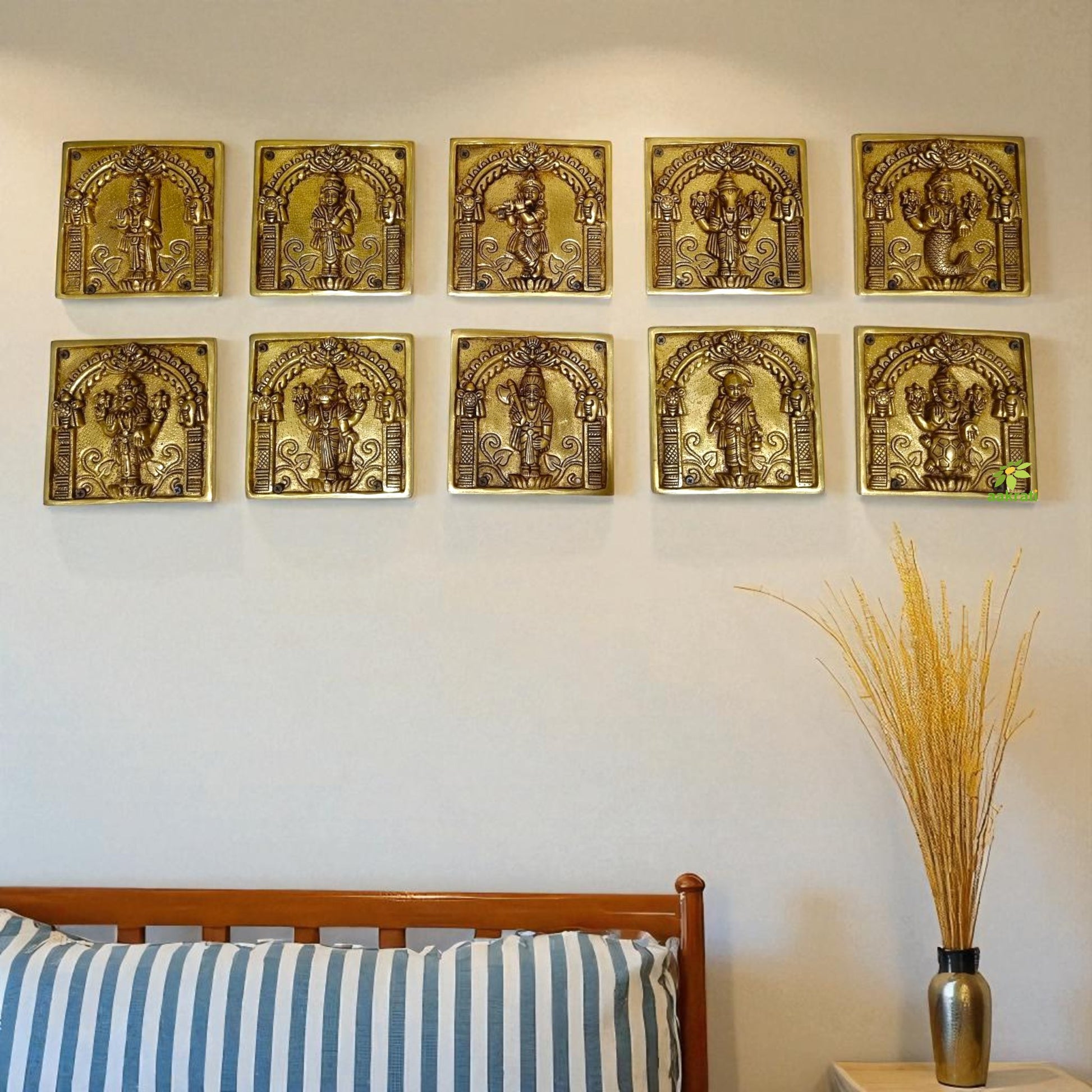 "Handcrafted Brass Dashavatar Wall Hanging | "Premium Brass Dashavatar Wall Art | ndian Handicraft Decor"(Yellow 5.9 inch)