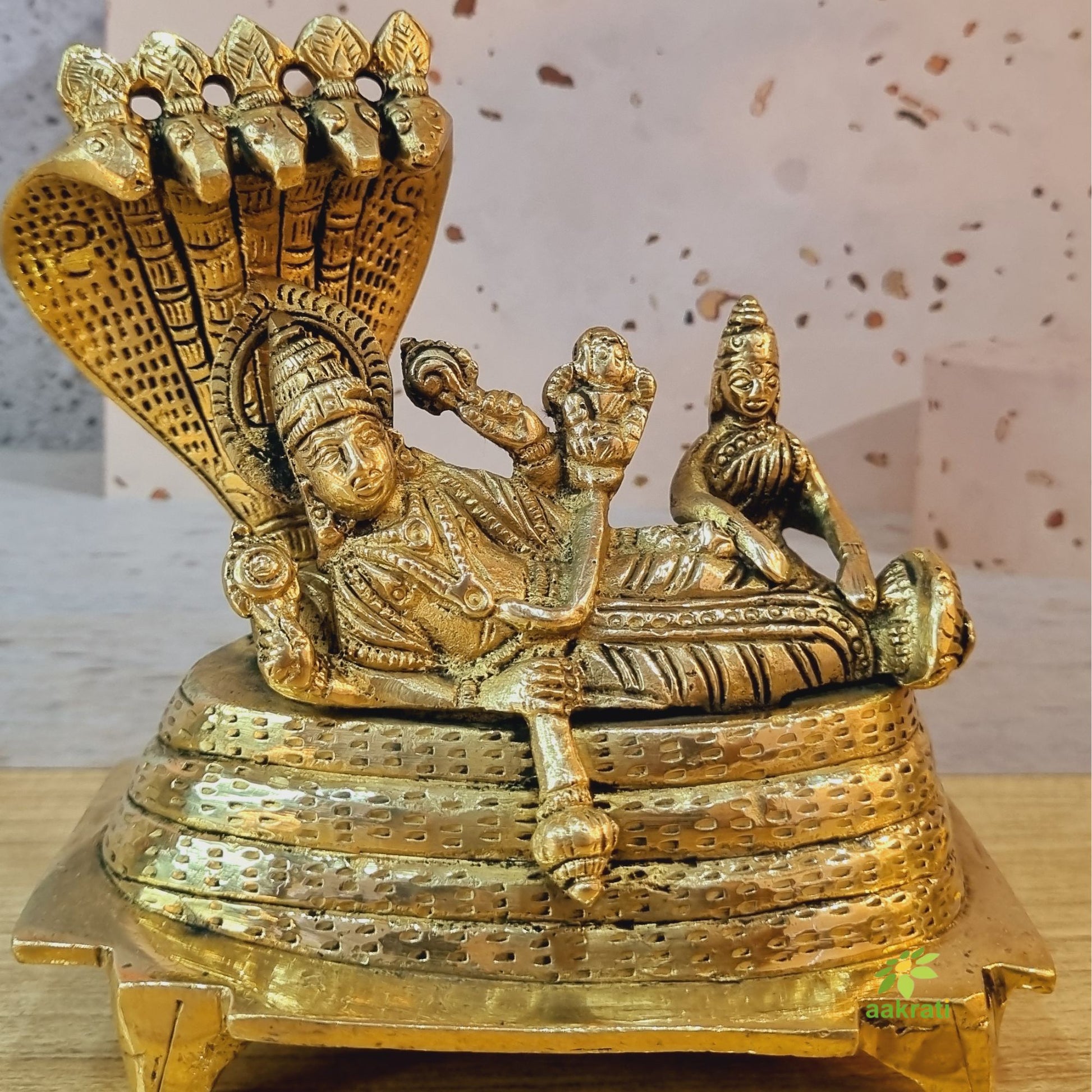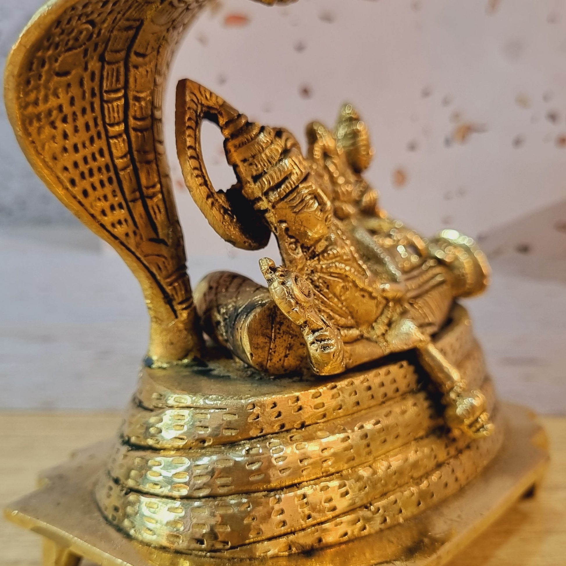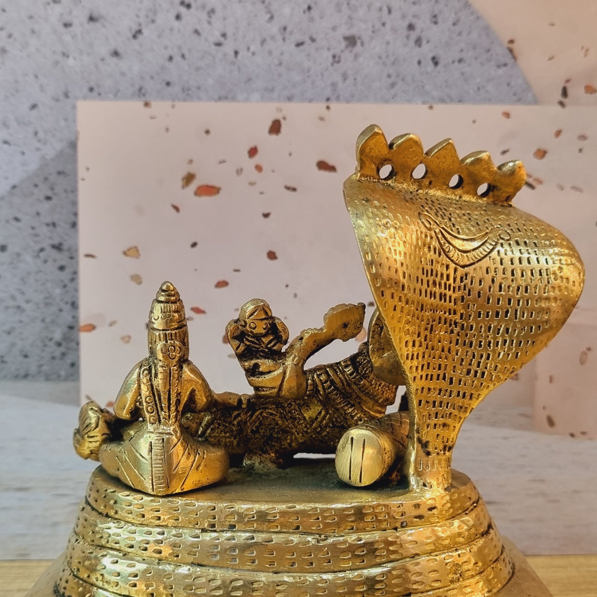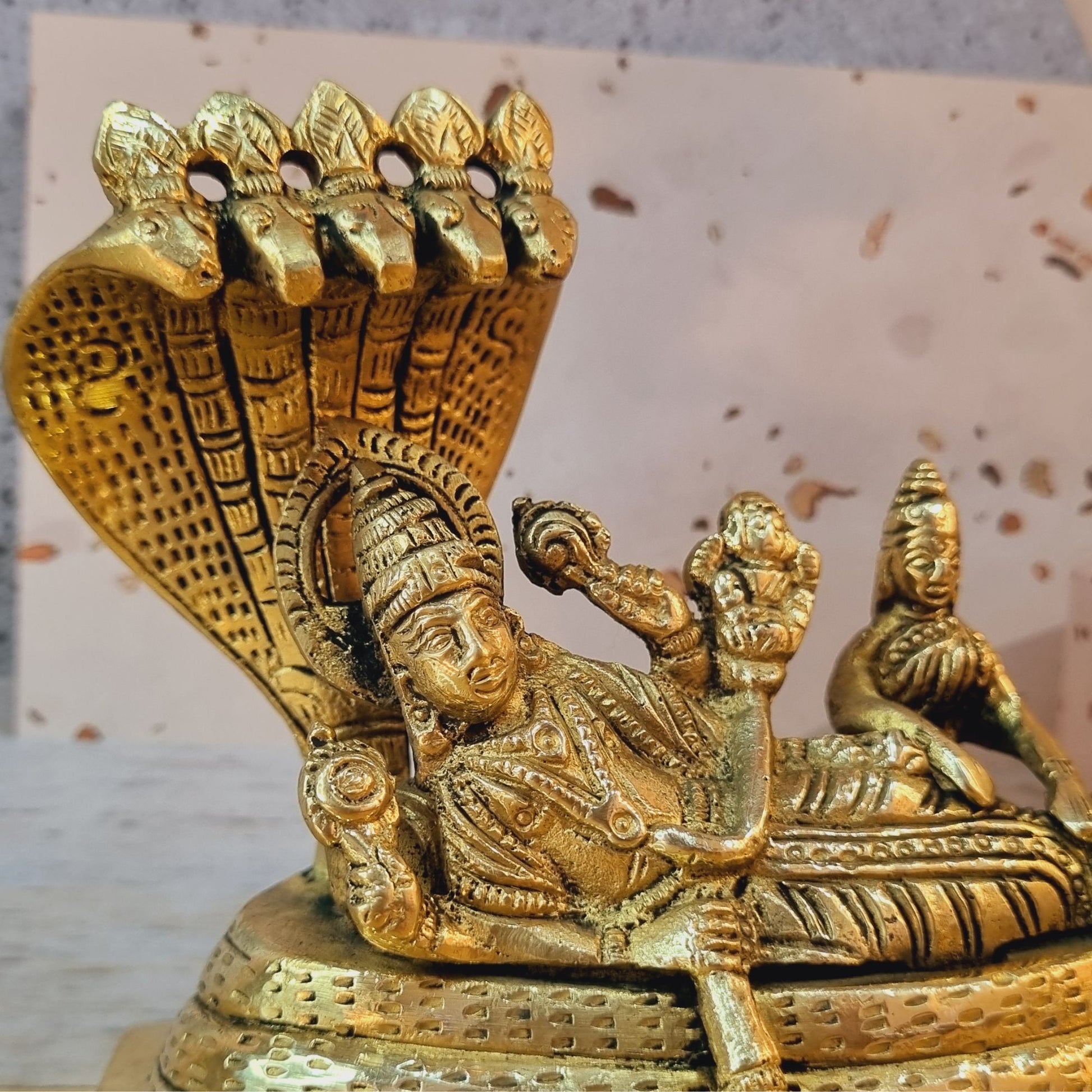 Vishnu Laxmi Sitting On Sheshnag - Lord Narayan rest in Vainkunt Dham metal idol 4.5 inch