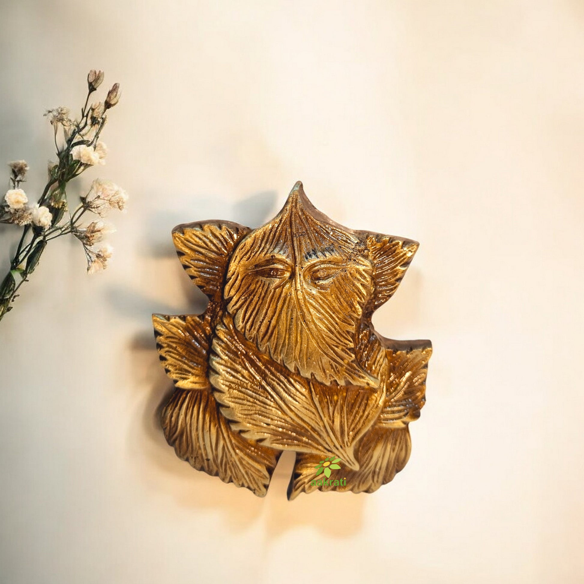 Leaf Shaped Ganesha Brass Wall Hanging | Unique Spiritual Art for Home | Traditional Brass Ganesha Murti Wall Decor ( Brown, 4 inch)