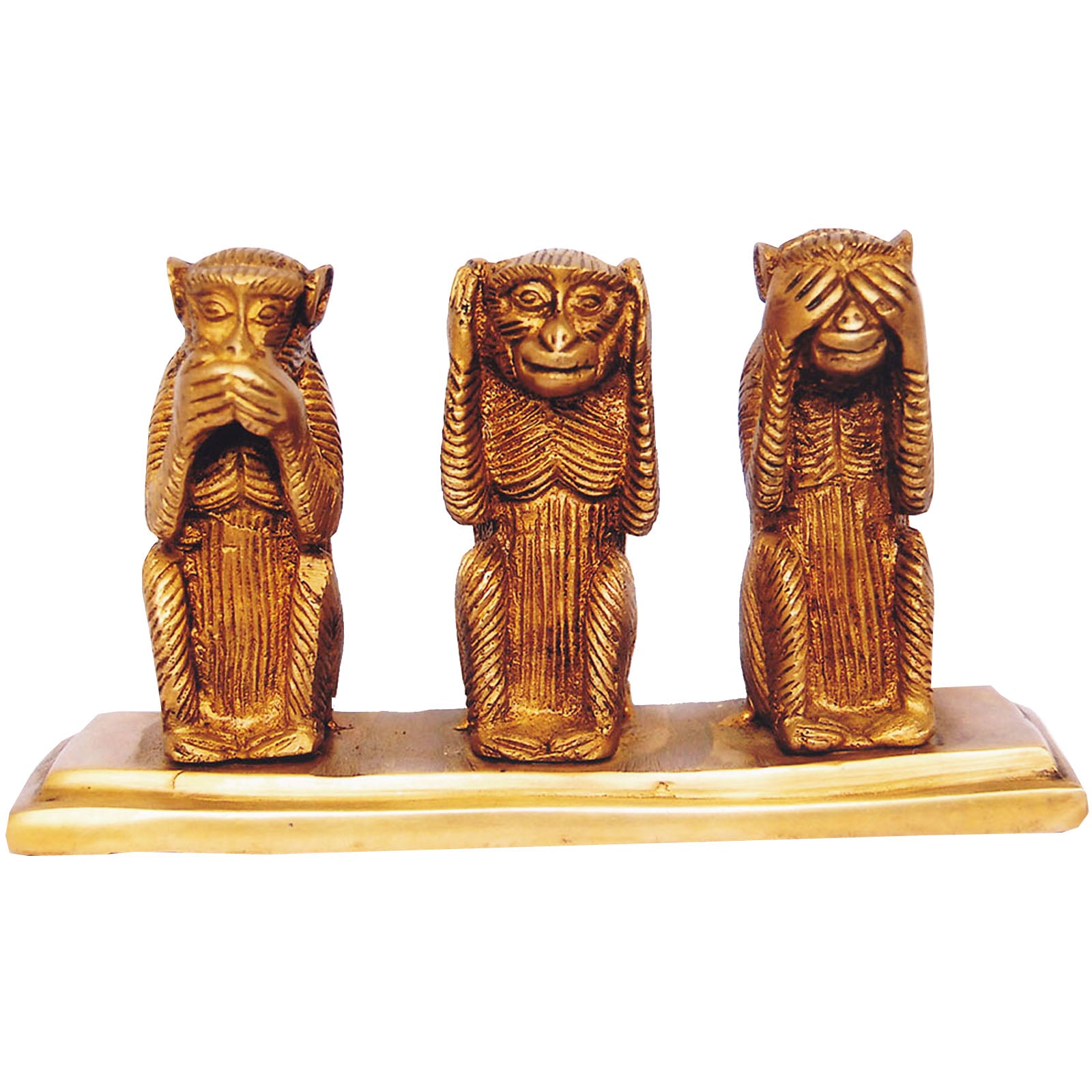 Handcrafted Brass Monkey Figurines | Stylish and Playful Decorative Piece for Your Home | Brass Monkey Statue Set ( Yellow, 7 inch)