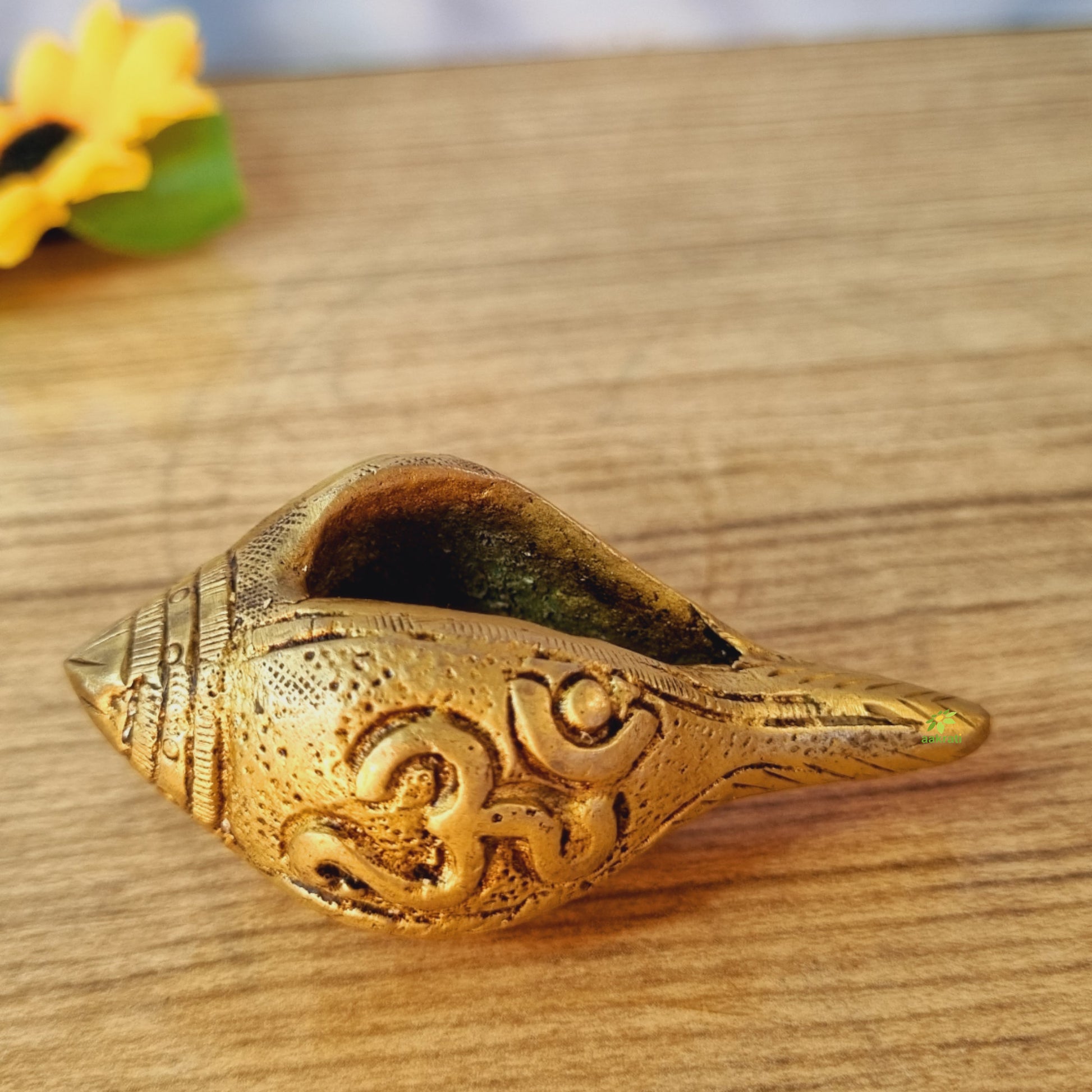 Handcrafted Brass Shankh | Perfect for Pooja and Divine Decor | Divine Brass Shankh ( Yellow, 2.8 inch)