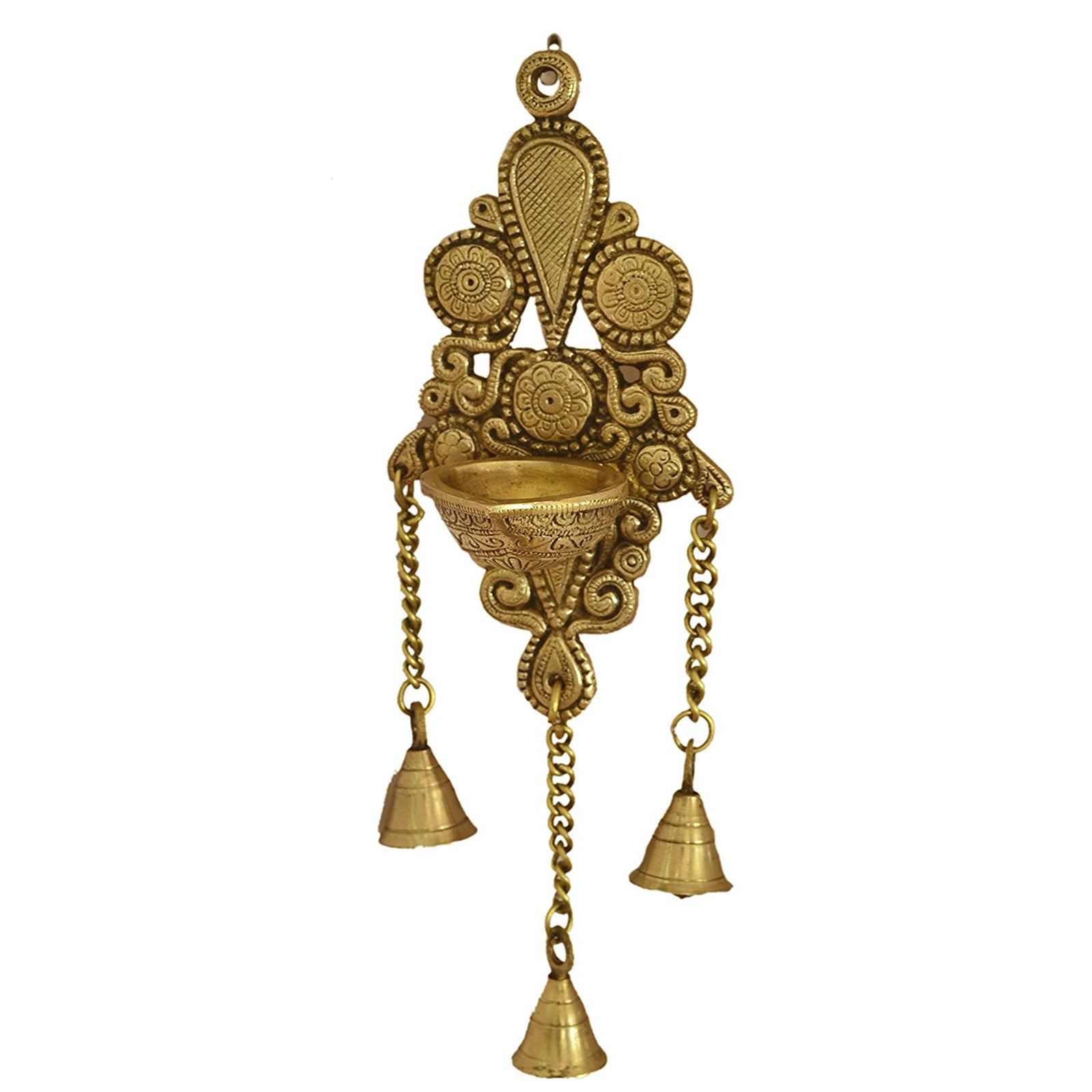 Aakrati Wall Hanging Deepak Also as Candle Stand with Bells Made of Brass Metal - Wall Decor Indian showpiece for Gift -Total Height 11 inch