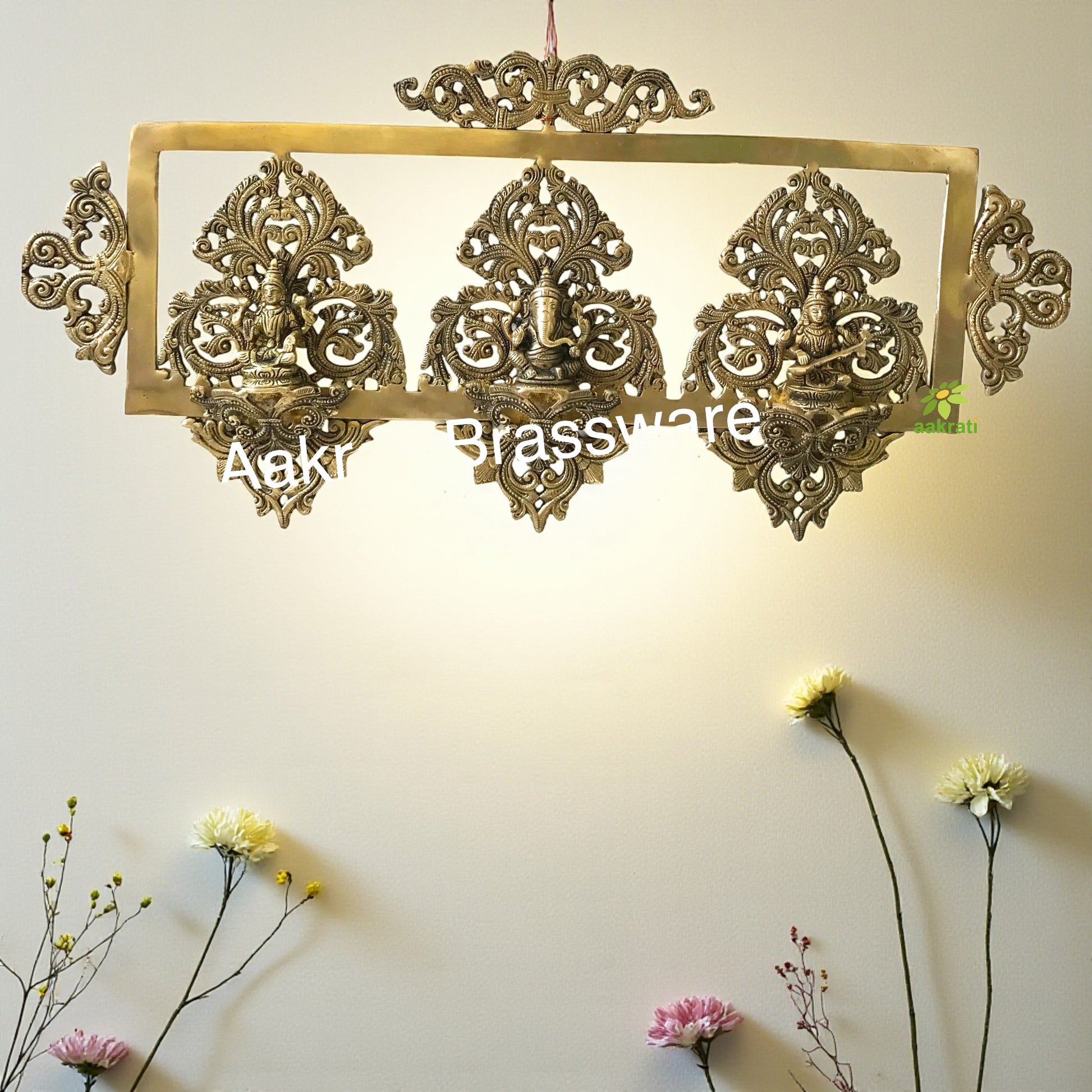 Brass made Laxmi Ganesha Saraswati decorative religious wall decor