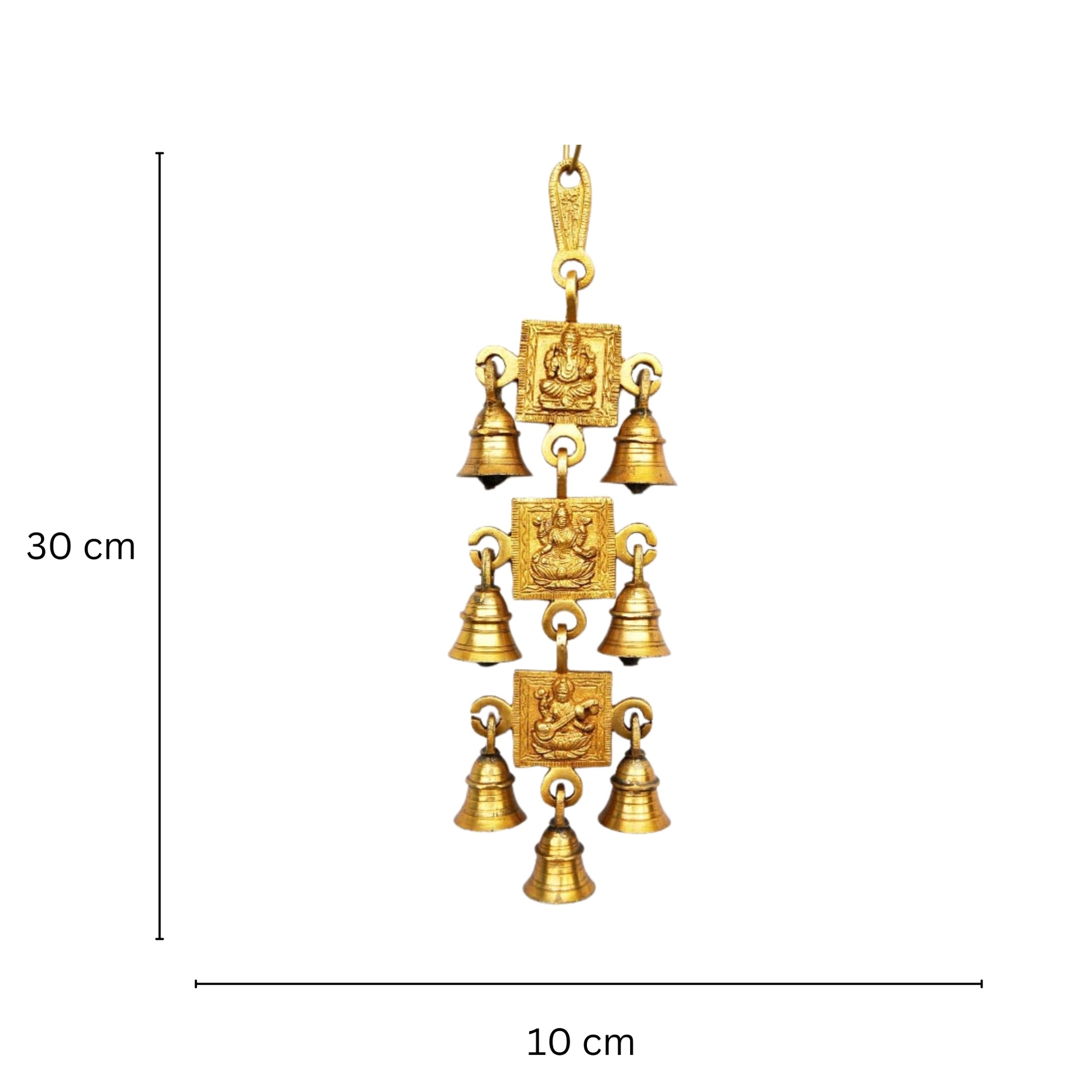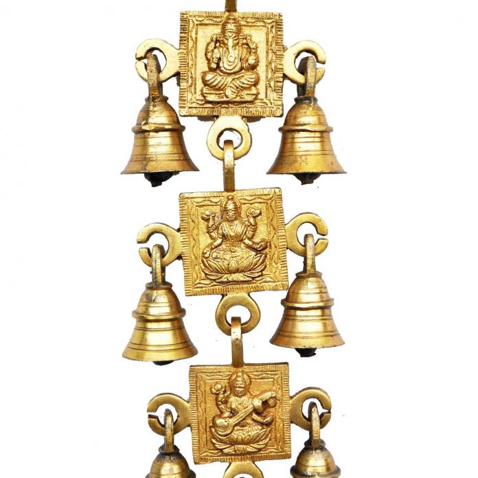 Brass Religious Wind Chime | Spiritual Wall Hanging | Brass Designer Wall Hanging Bell ( Yellow, 12.5 inch)