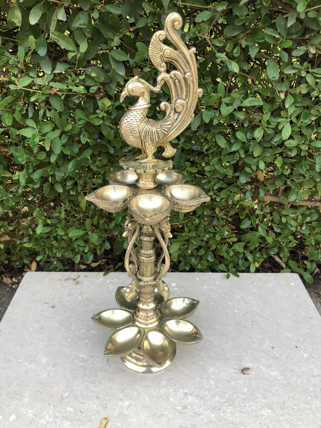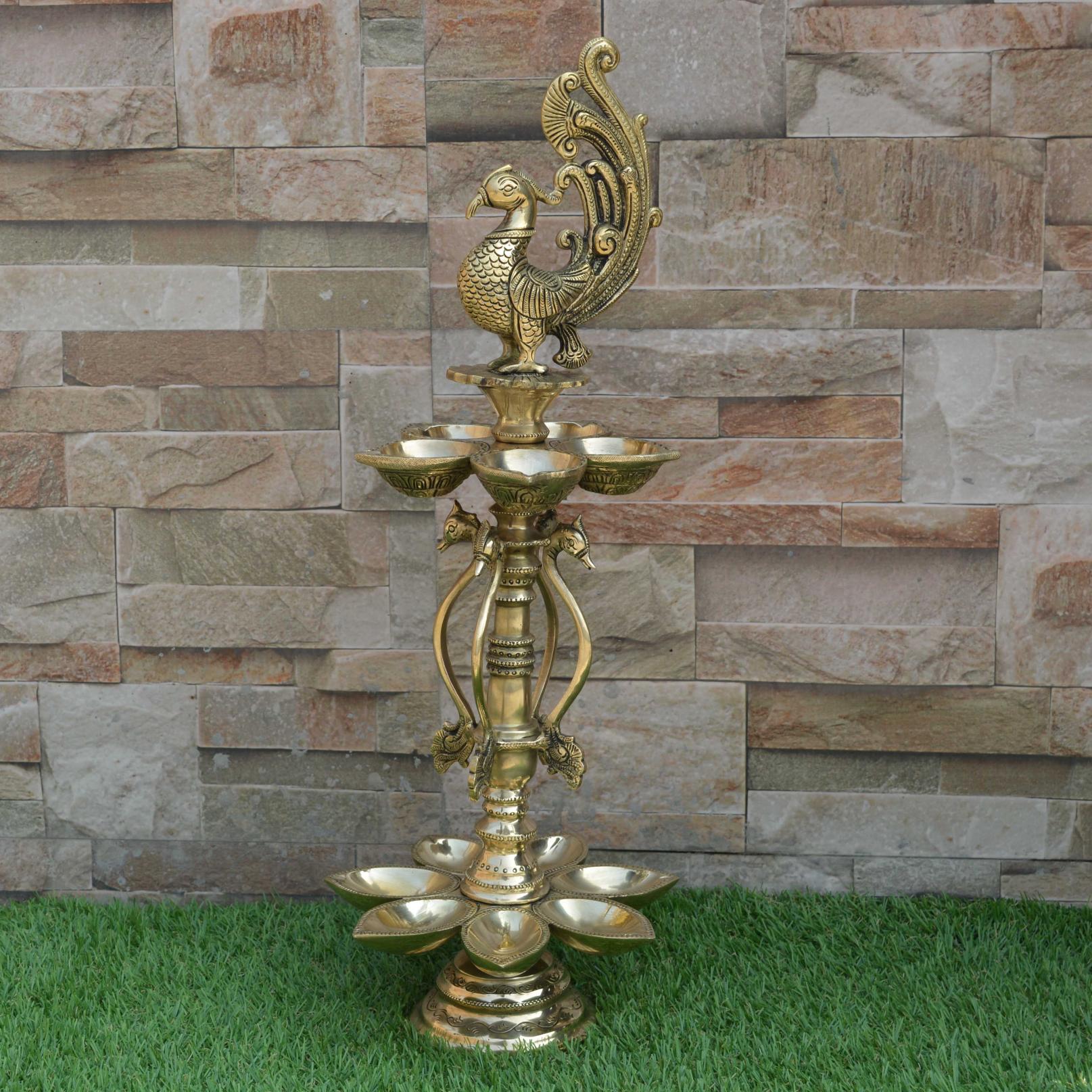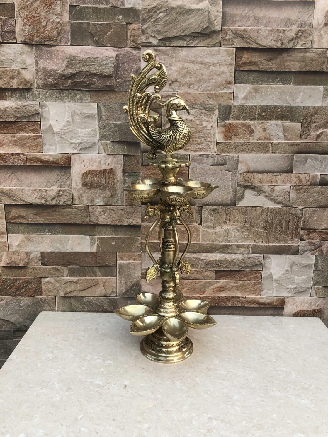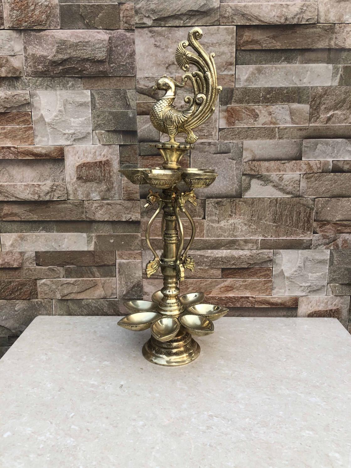 Peacock figure brass metal decorative Pooja Ghar oil lamp/Table Diya