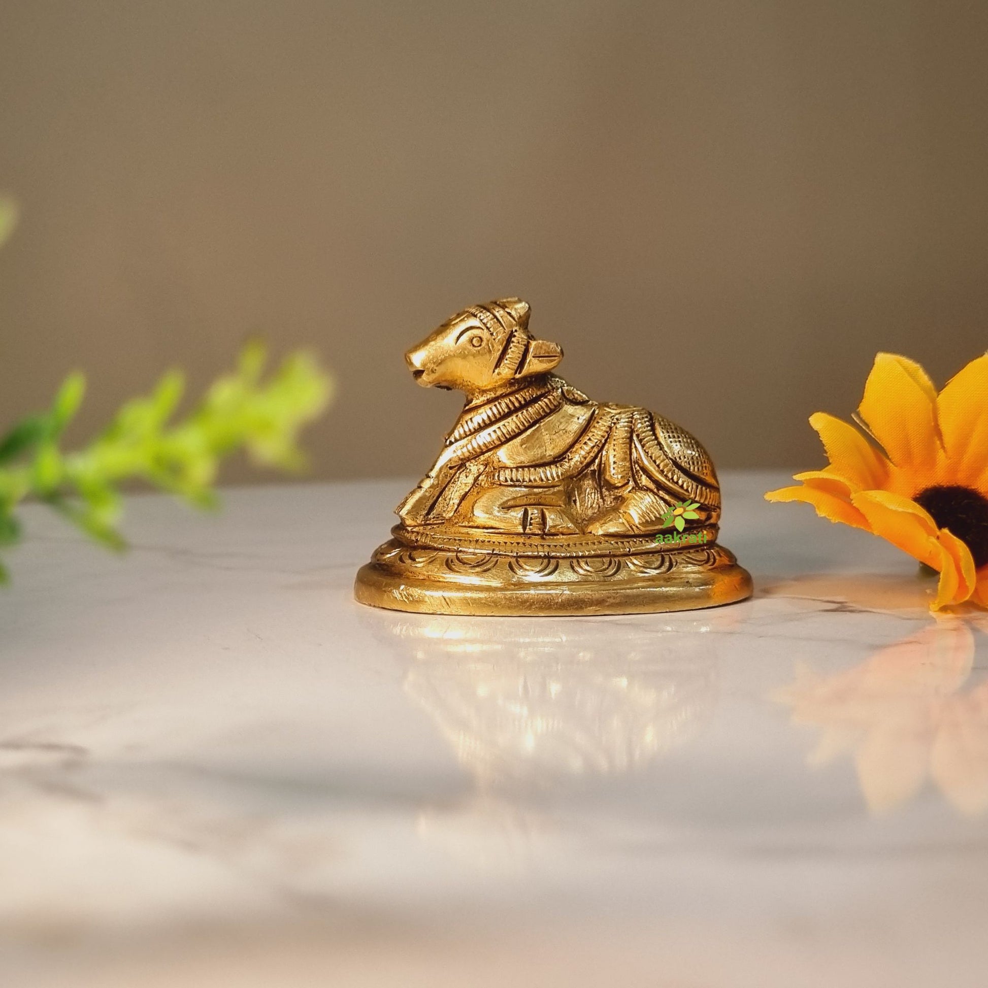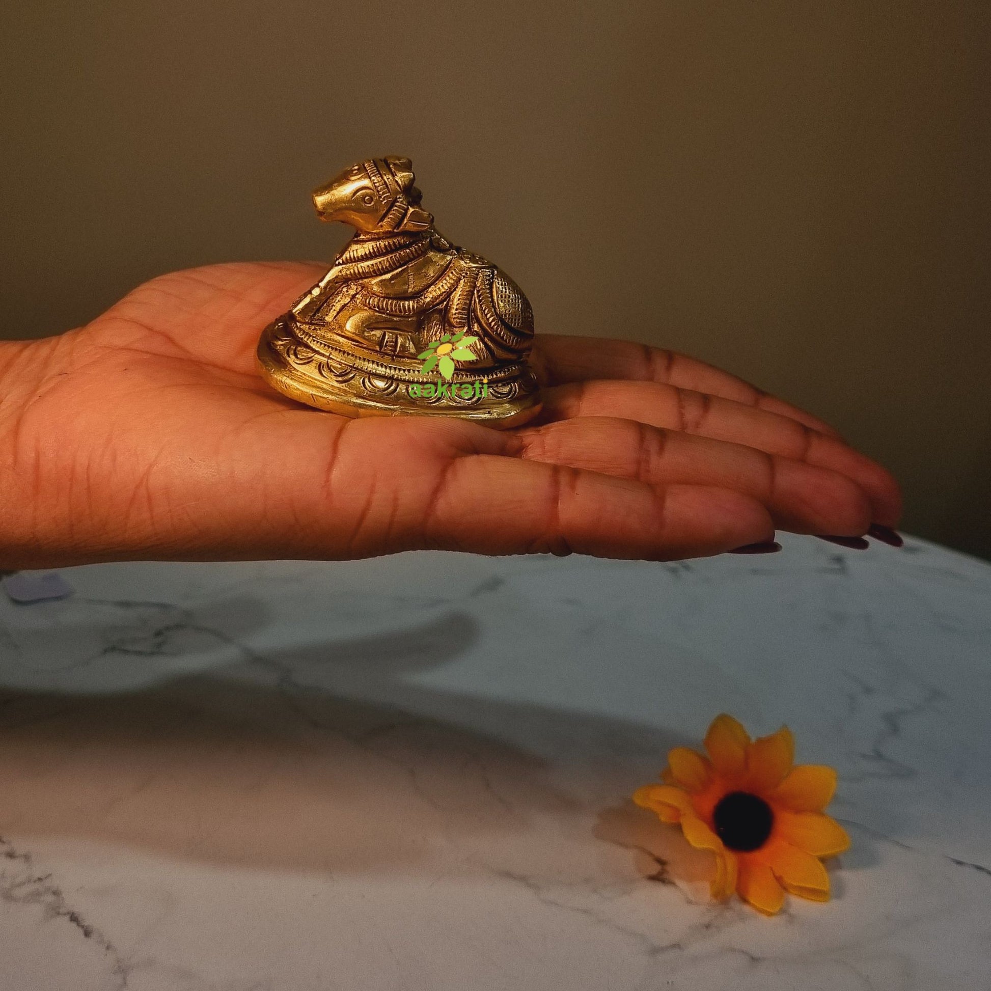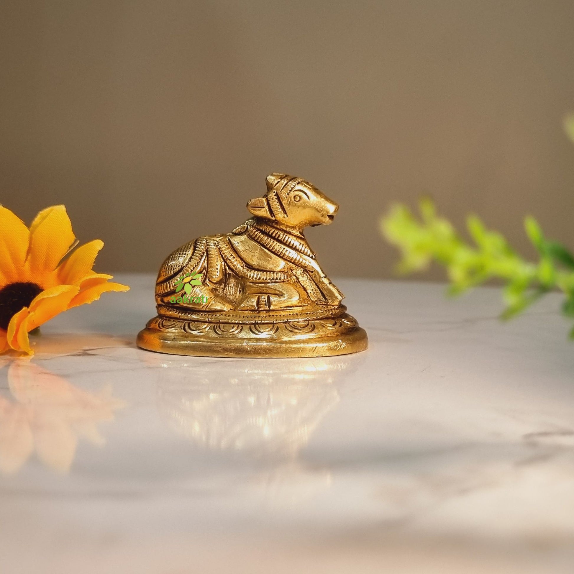 Brass Nandi Statue | Sacred Blessings of Lord Shiva for Your Home | Divine Brass Nandi Figurine ( Yellow, 2 inch)