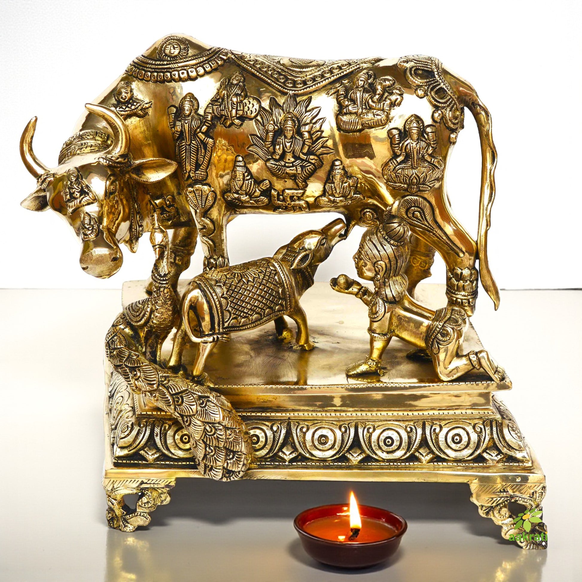 Decorative Nandi/Cow with calf sitting baby krishna near to calf brass made temple/gift purpose statue