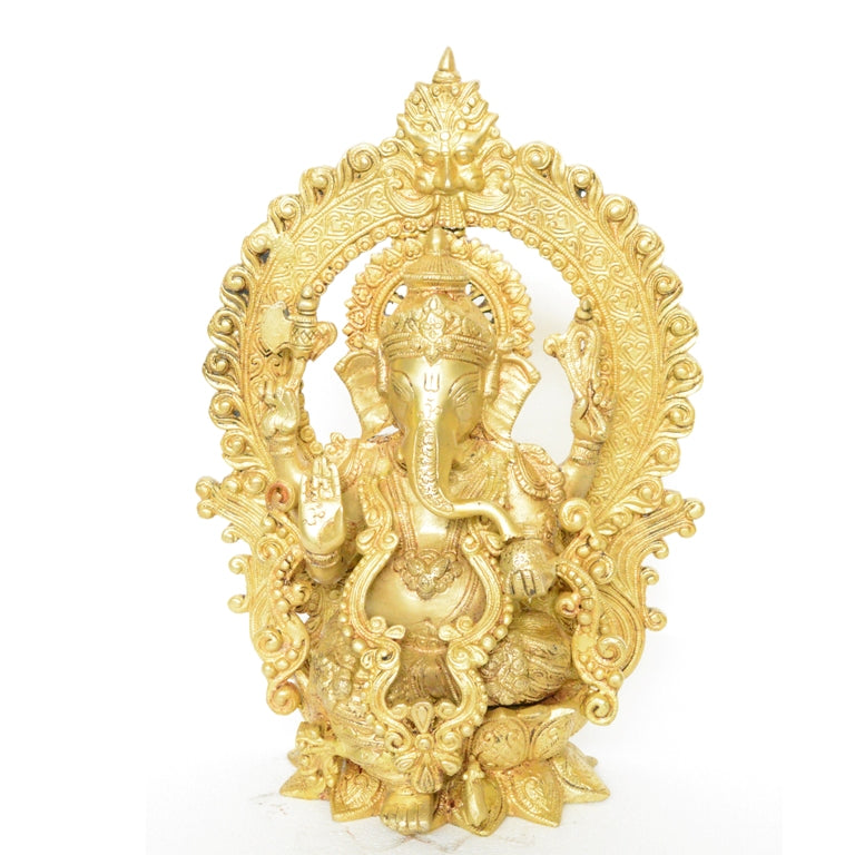 Brass Ganesh Statue with yellow finishing for home and temple decoration