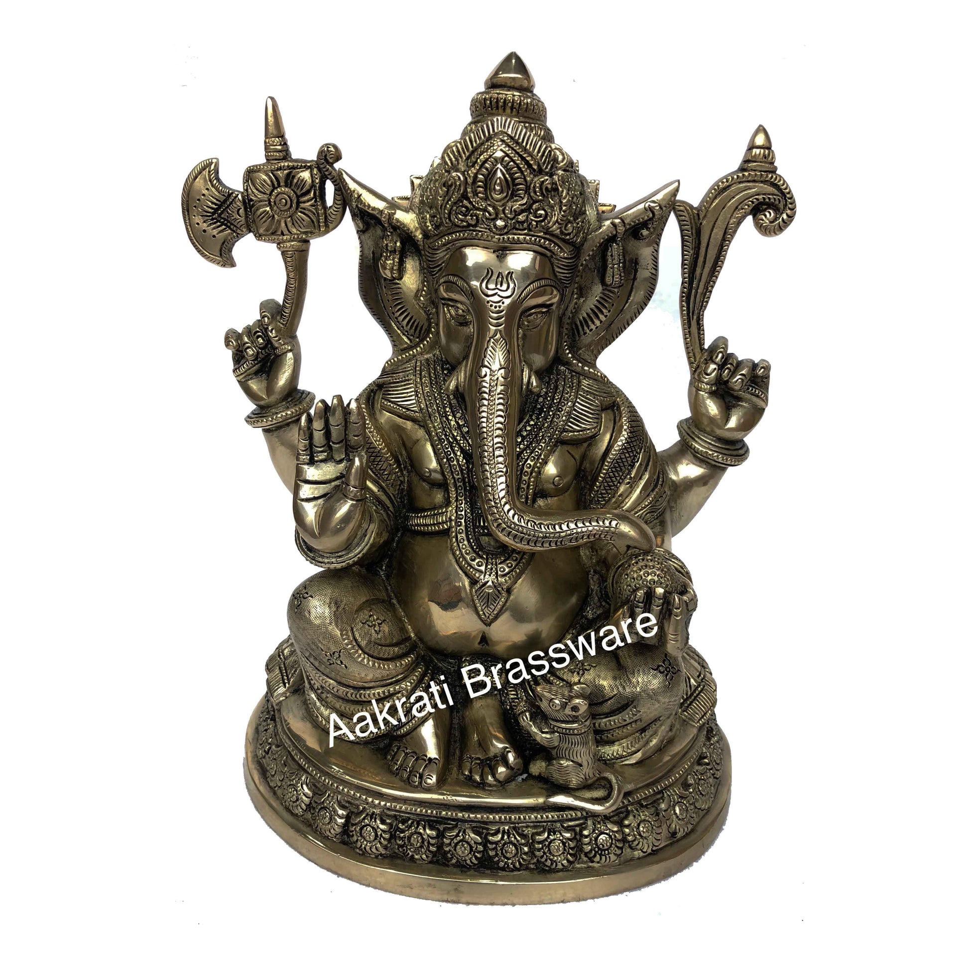 Brass metal Lord Ganesha decorative hand carved pooja ghar/office statue
