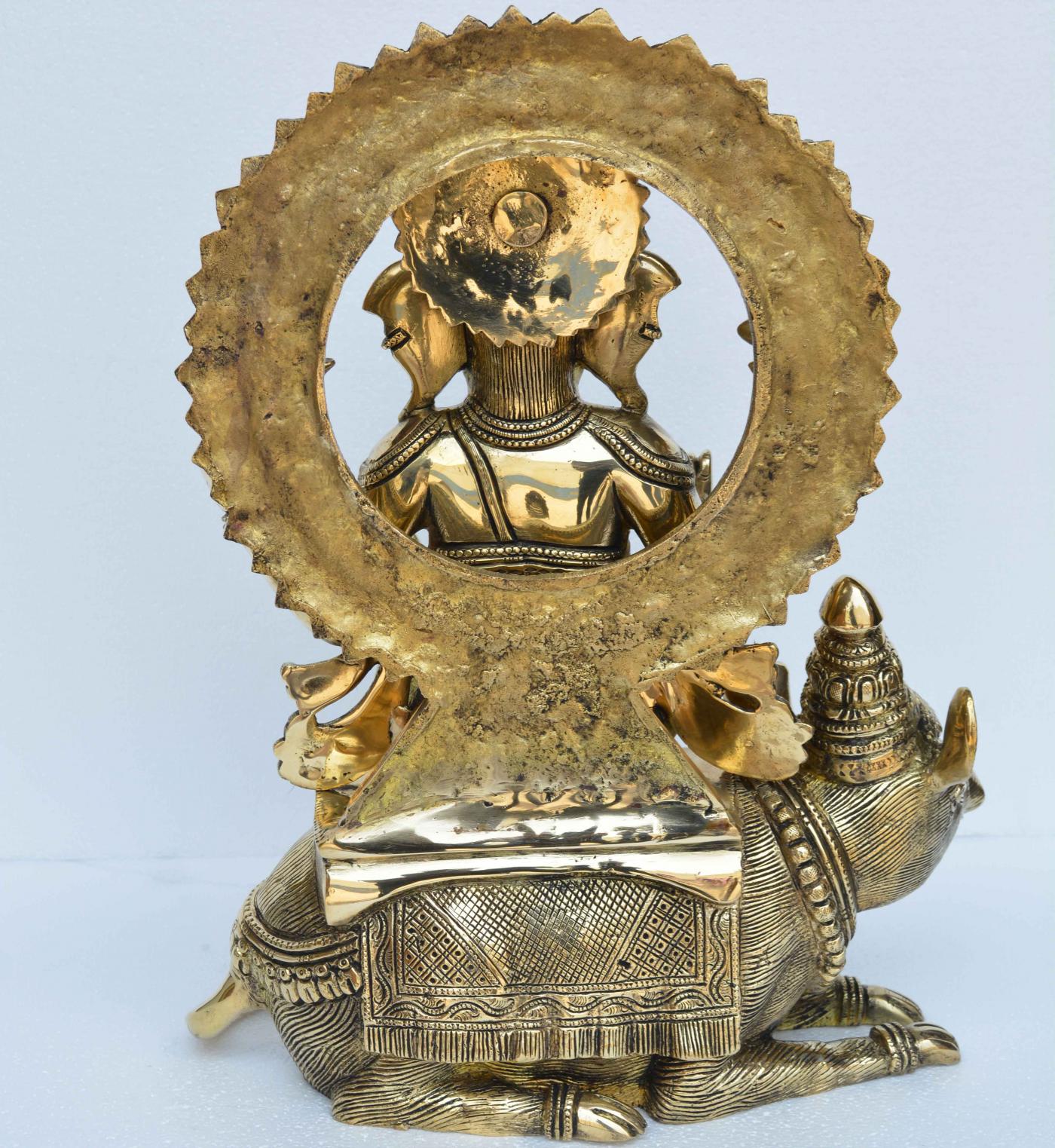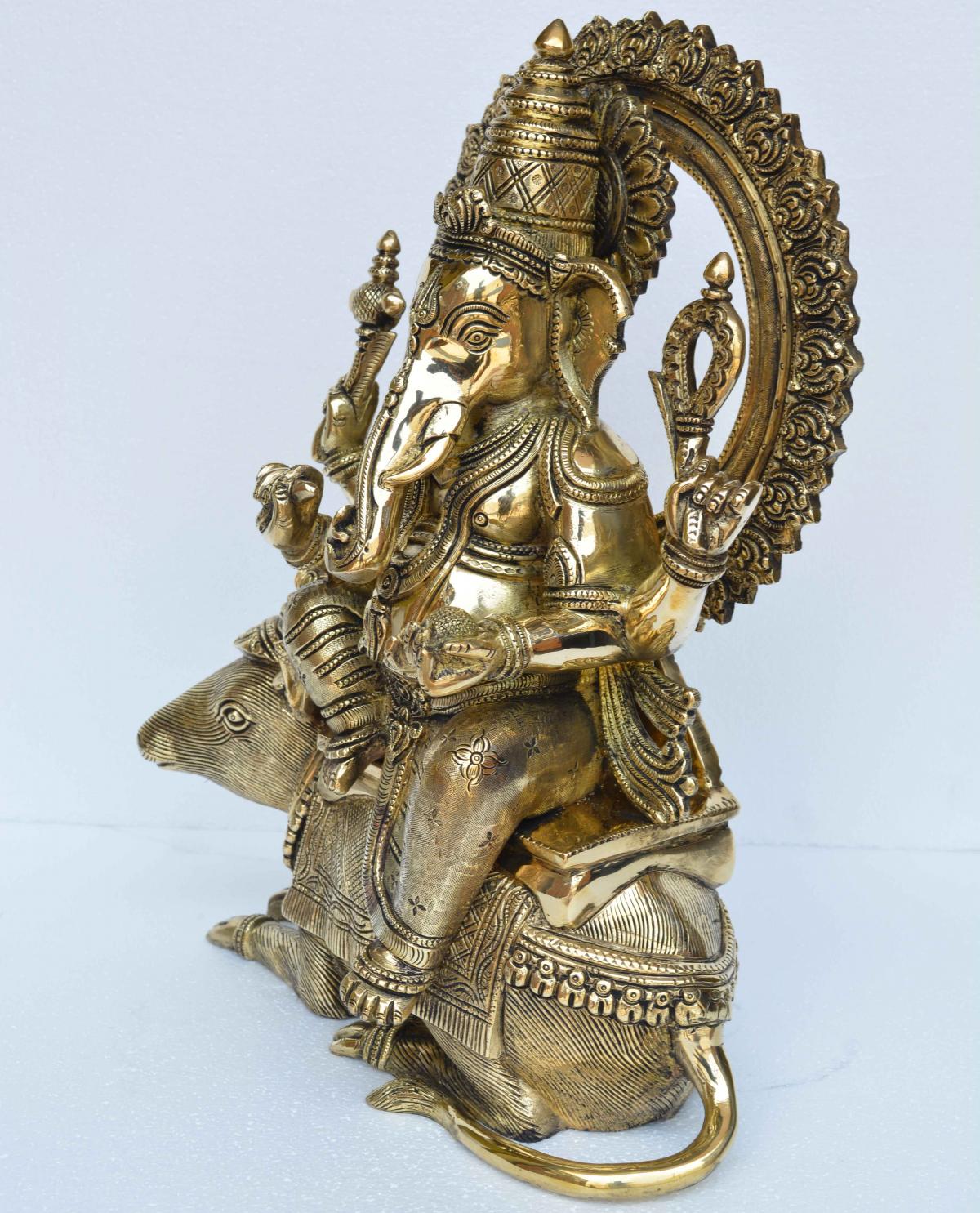 Crowned Ganesh Seated on his Mouse, Ganpati ekdant hindu god Murti Sculpture