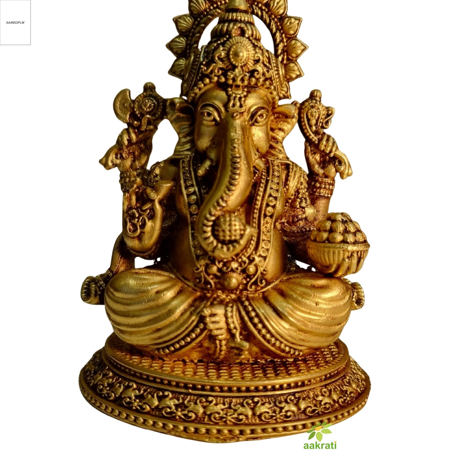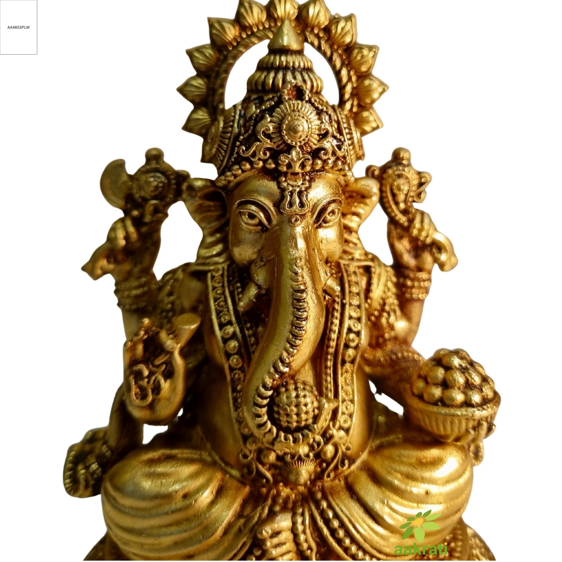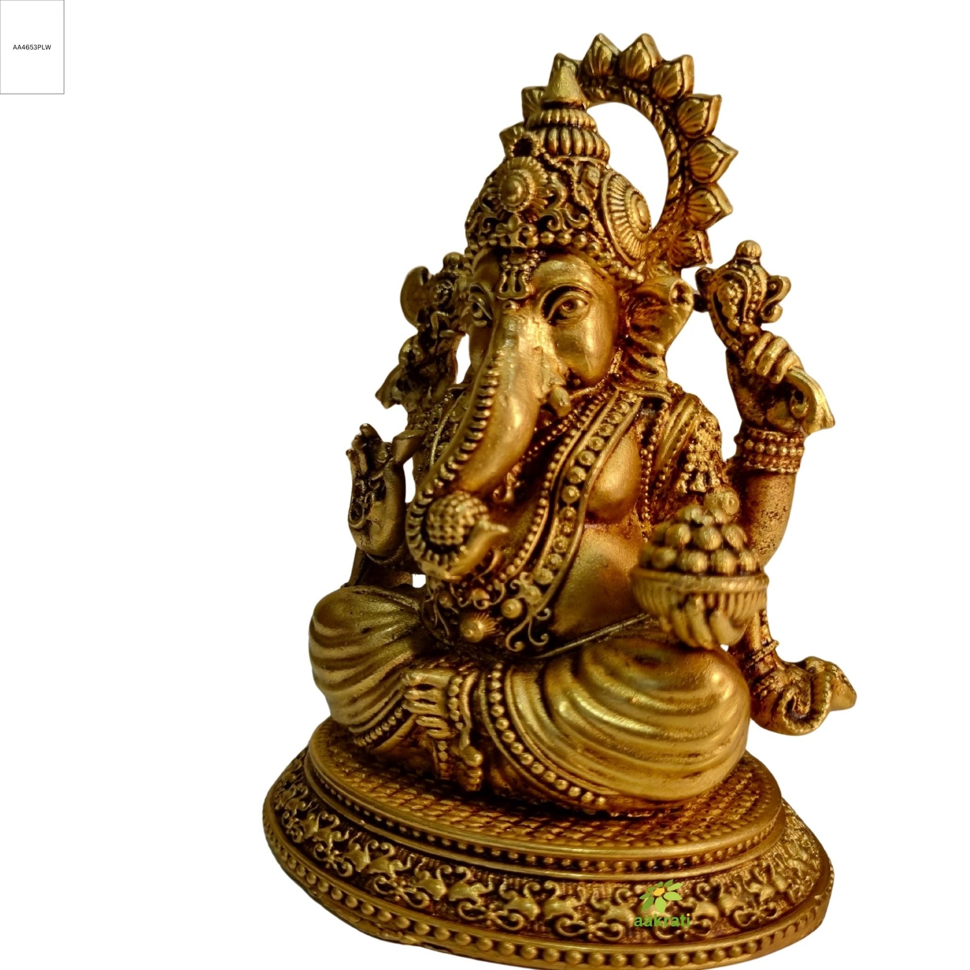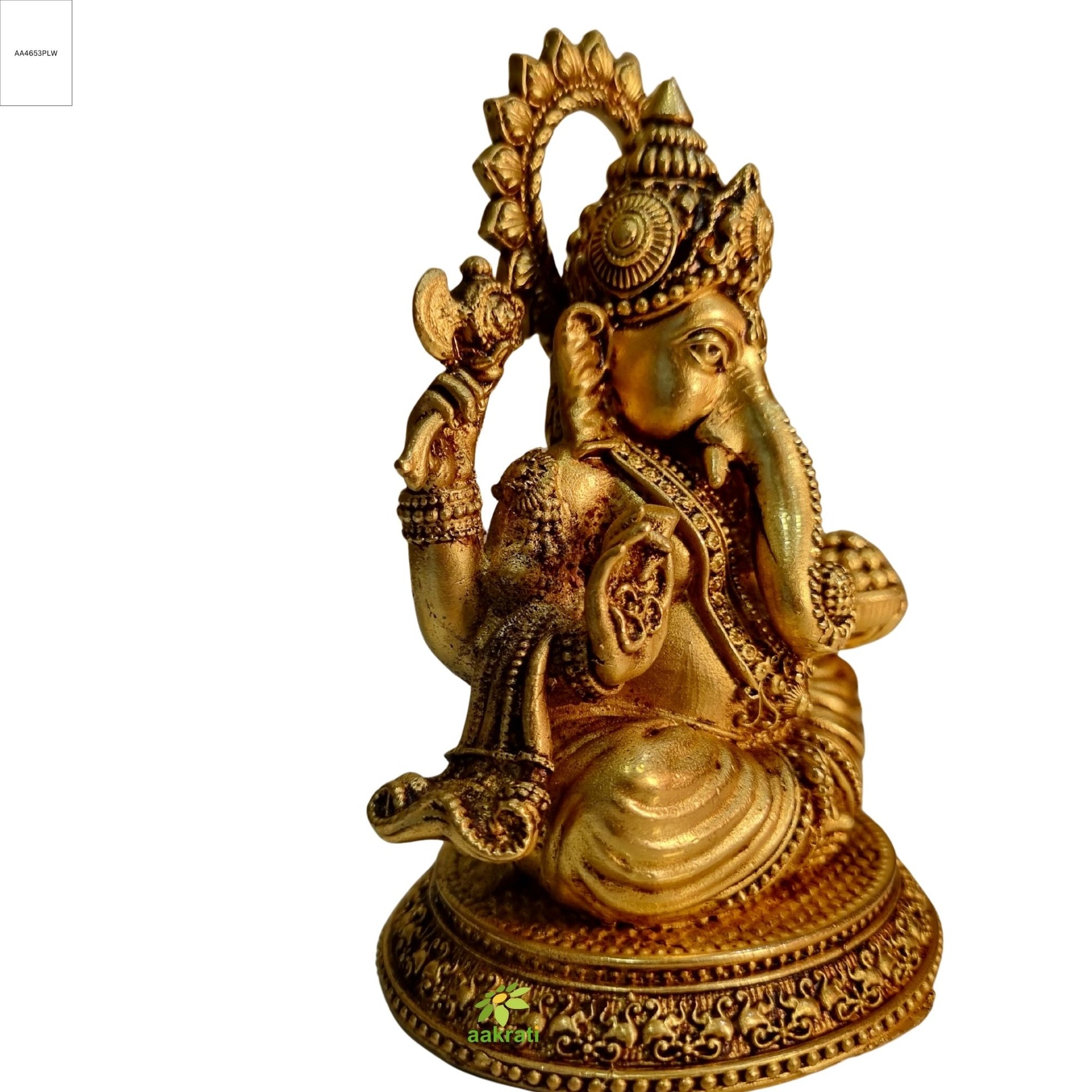 Decorative Brass Ganapati Statue | Ethnic Hindu God Figurine for Diwali & Daily Pooja | Brass Vinayaka Idol (Yellow, 4.5 Inch)
