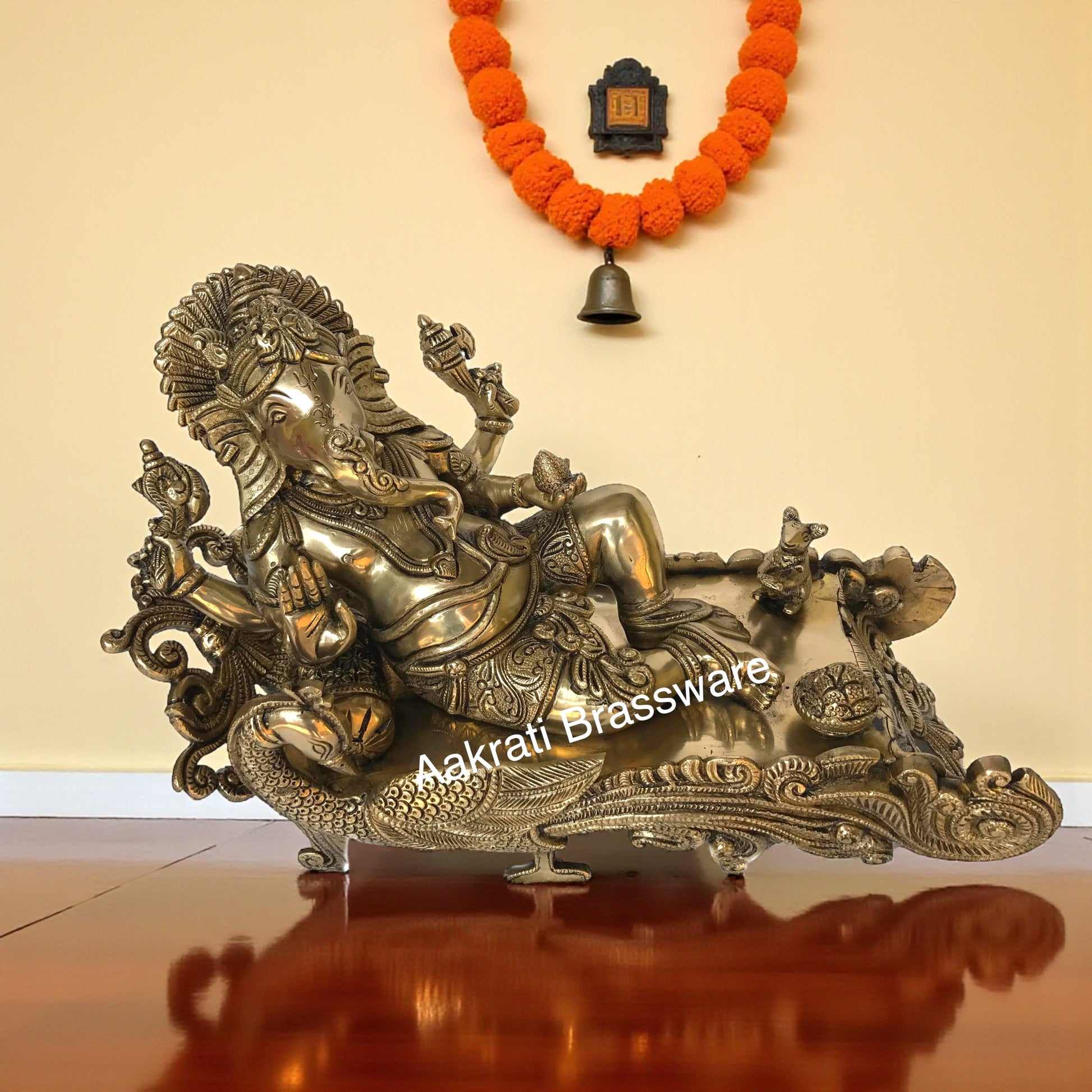 Lord Ganesha Brass made reclining decorative hand carved statue