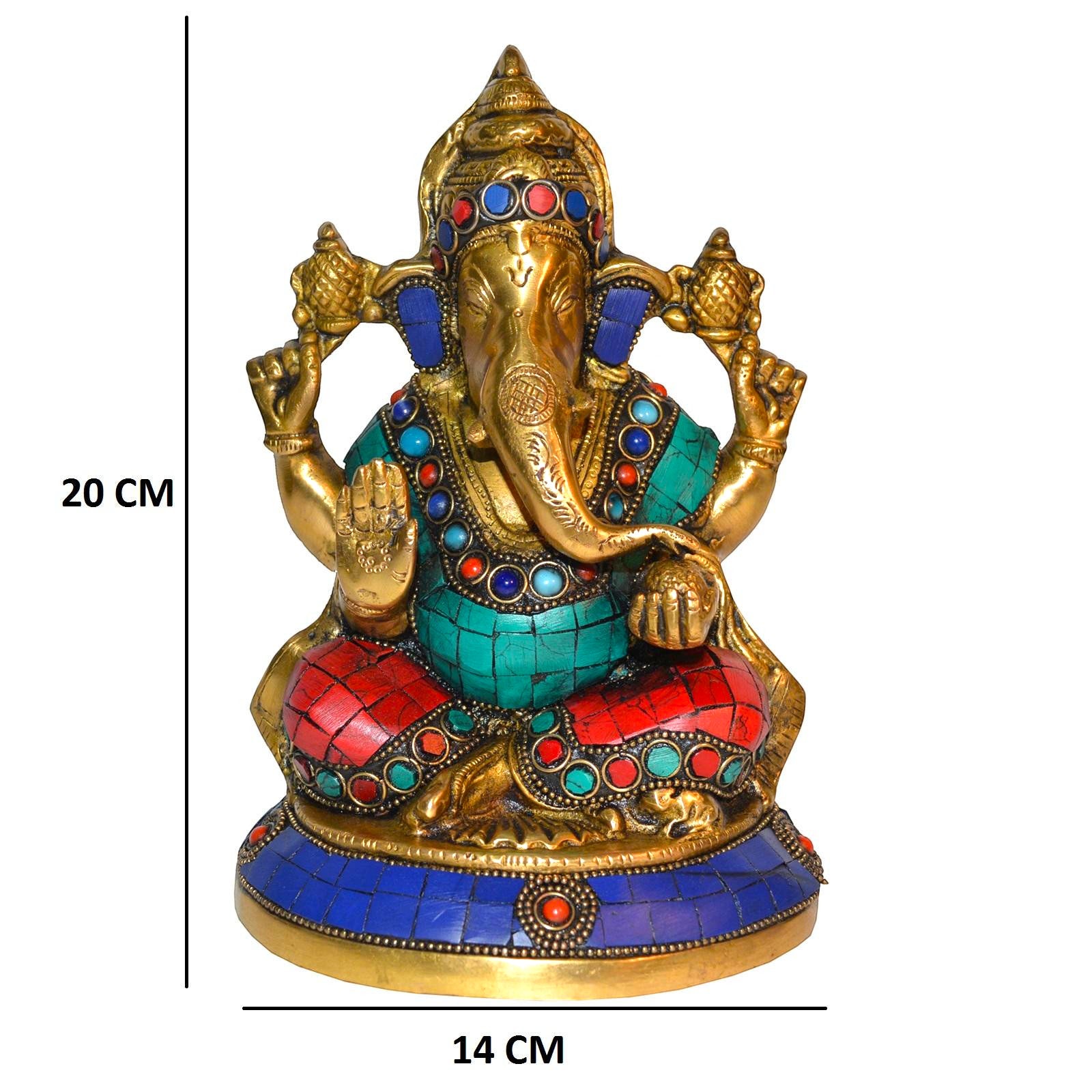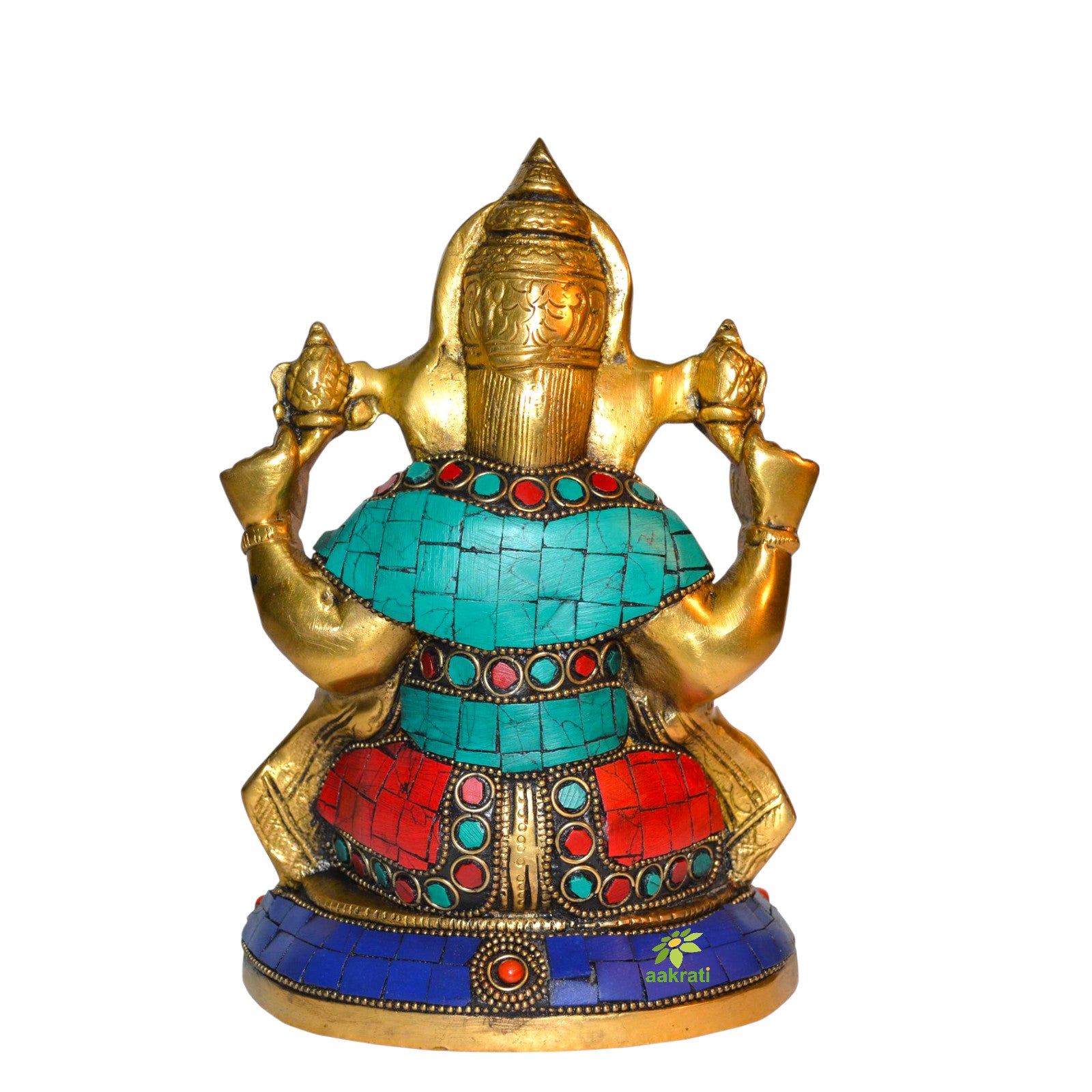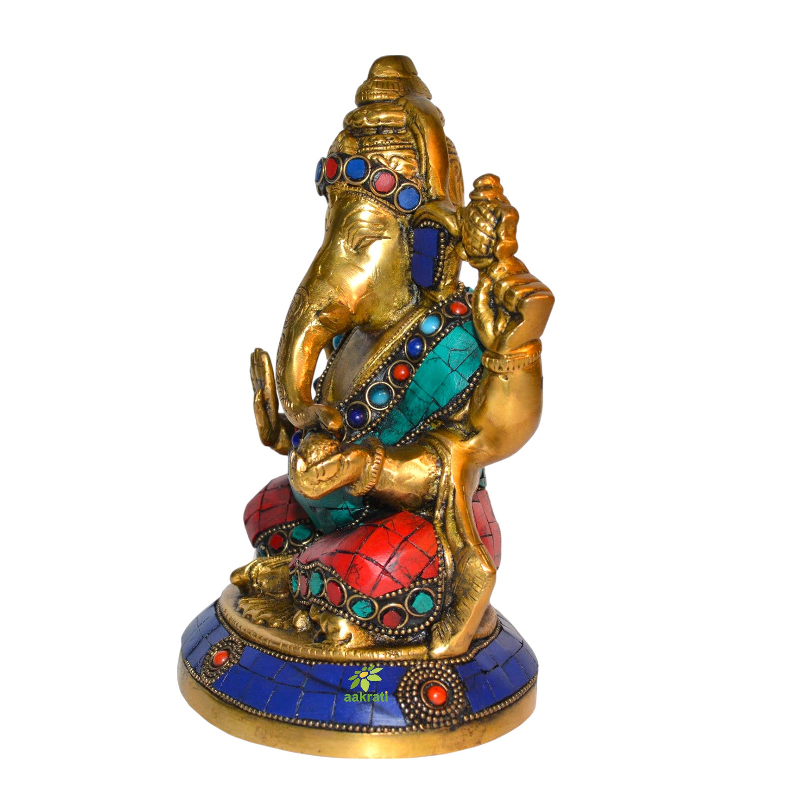 Lord Ganpati Religious Sculpture with Stone Turquoise Work for Temple by Aakrati