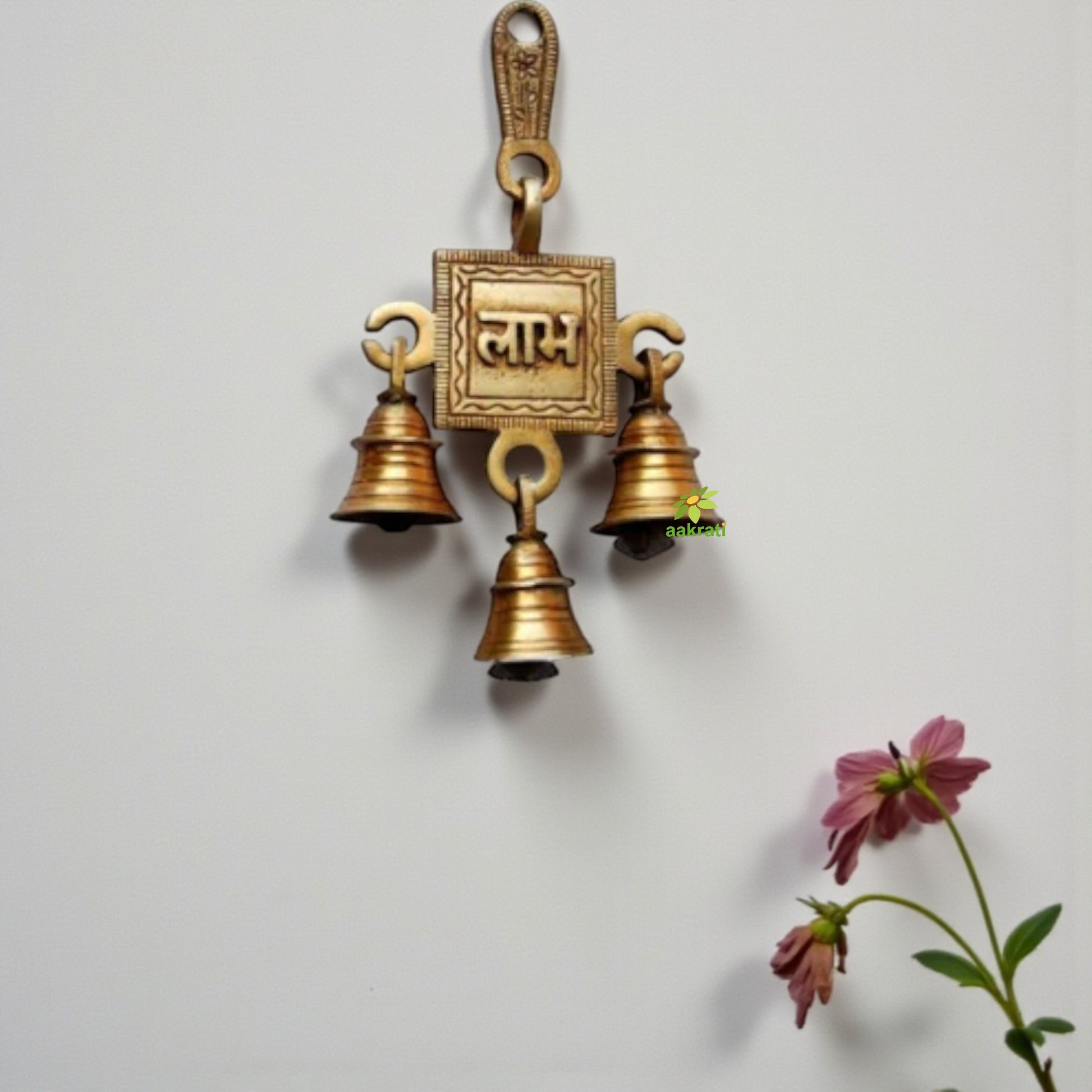 Elegant Shubh Labh Brass Wind Chime | Crafted for Peace, Prosperity, and Good Luck | Divine Labh Handmade Wind Chime ( Yellow, 6.8 inch)