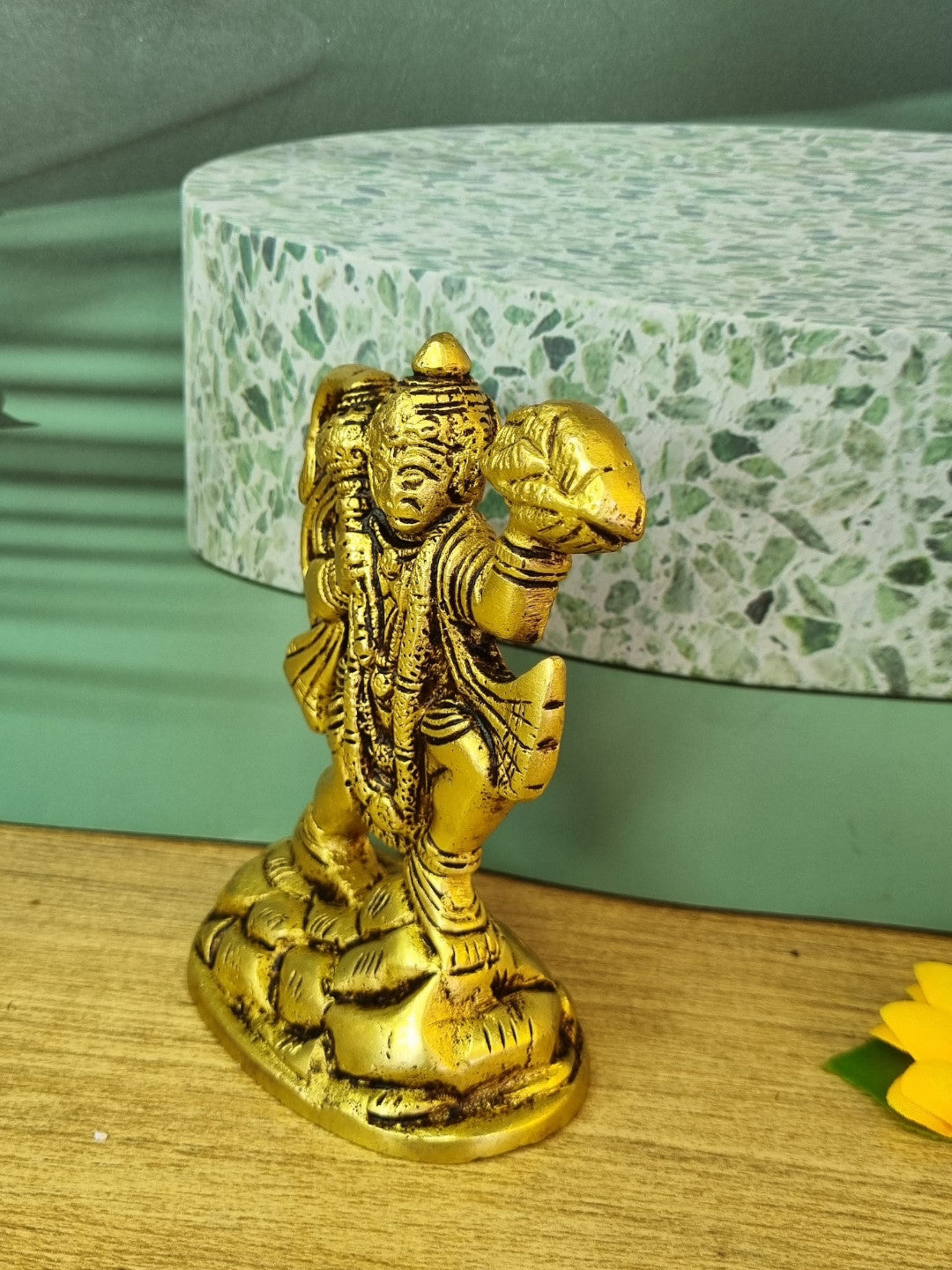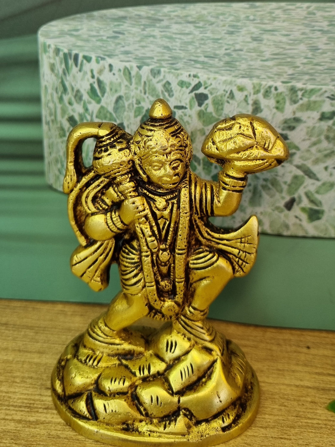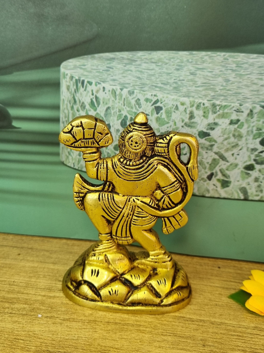 Handcrafted Brass Hanuman Idol | Divine Showpiece for Home and Office | Elegant Brass Hanuman Statue in Standing Position ( Yellow, 3.9 inch)