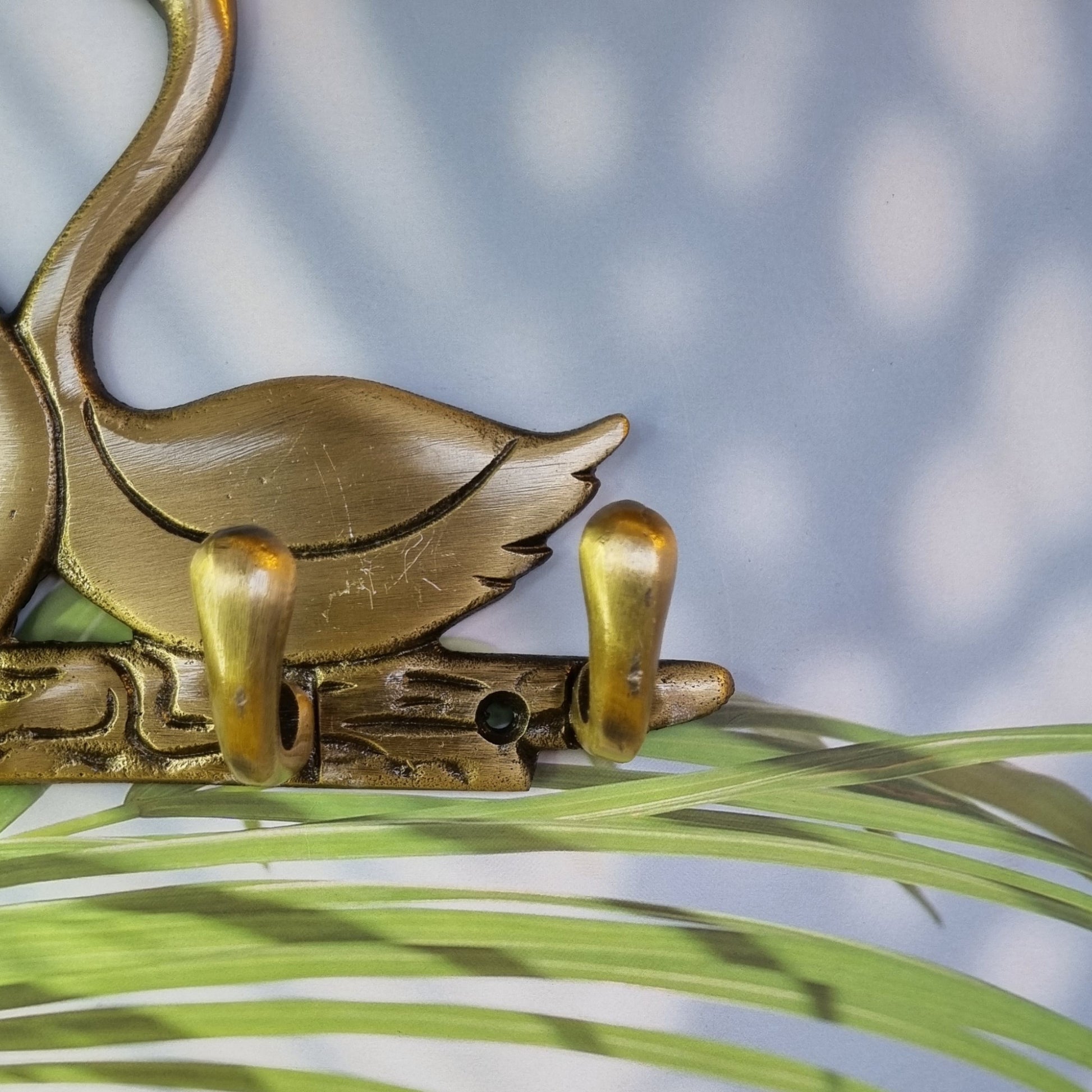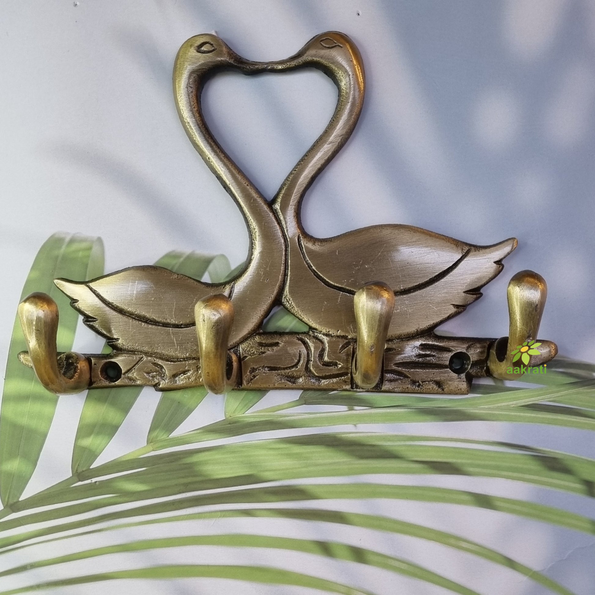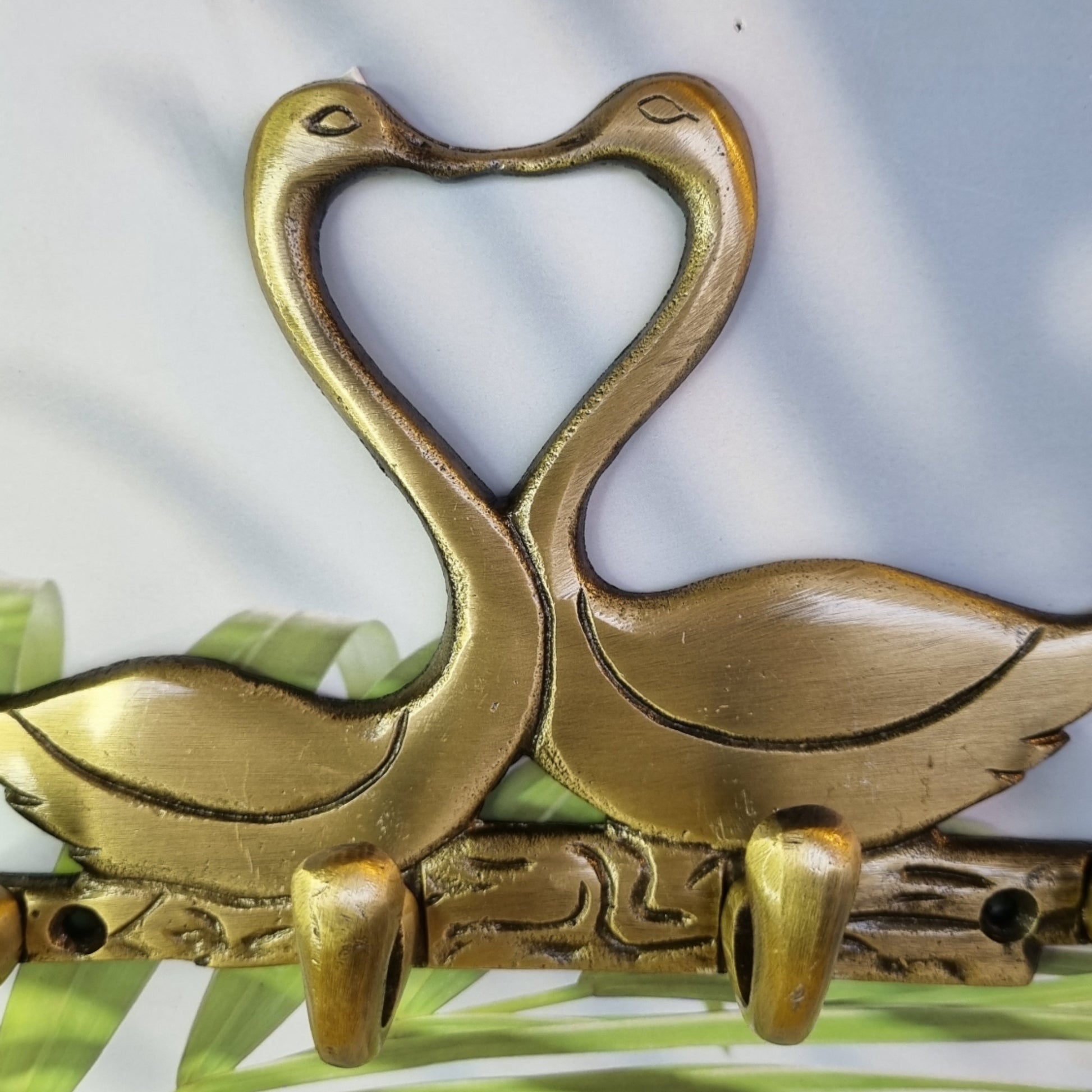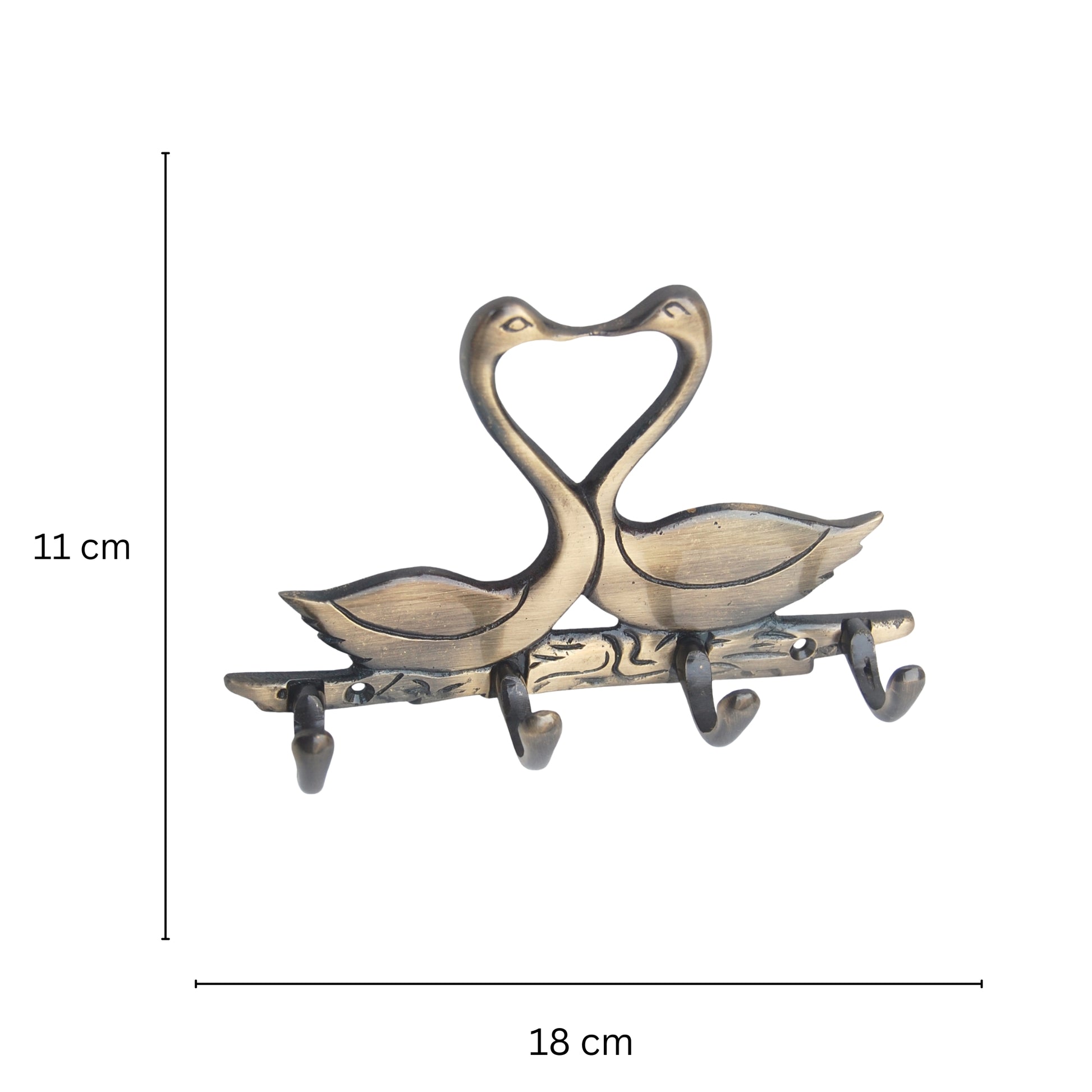 Metal Animal shape two Swan with 4 hooks crafted key holder ( Brown, 7 inch)