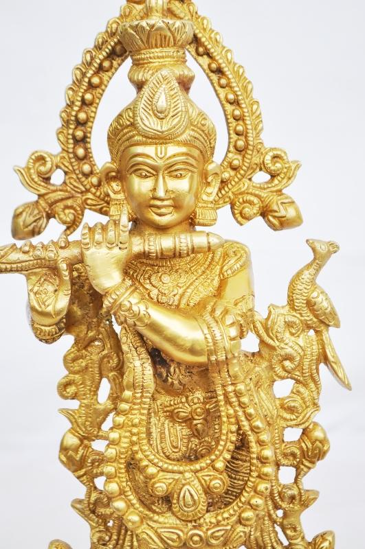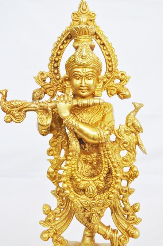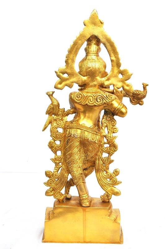 Decorative Brass Krishna Murti | Handcrafted Divine Idol for Home & Temple | ( Yellow, 15 inch)