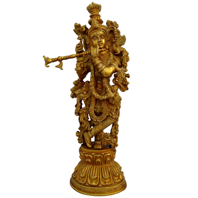 Handcrafted Brass Krishna Murti | Aesthetic Idol for Your Sacred Space | Brass Krishna Murti ( Yellow, 20 inch)