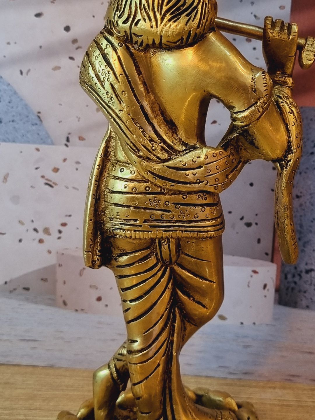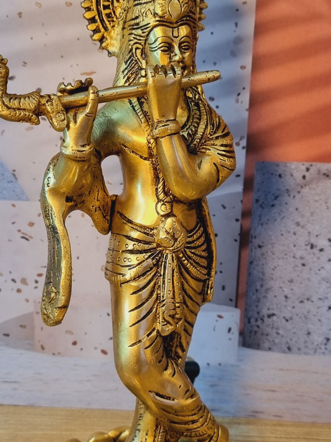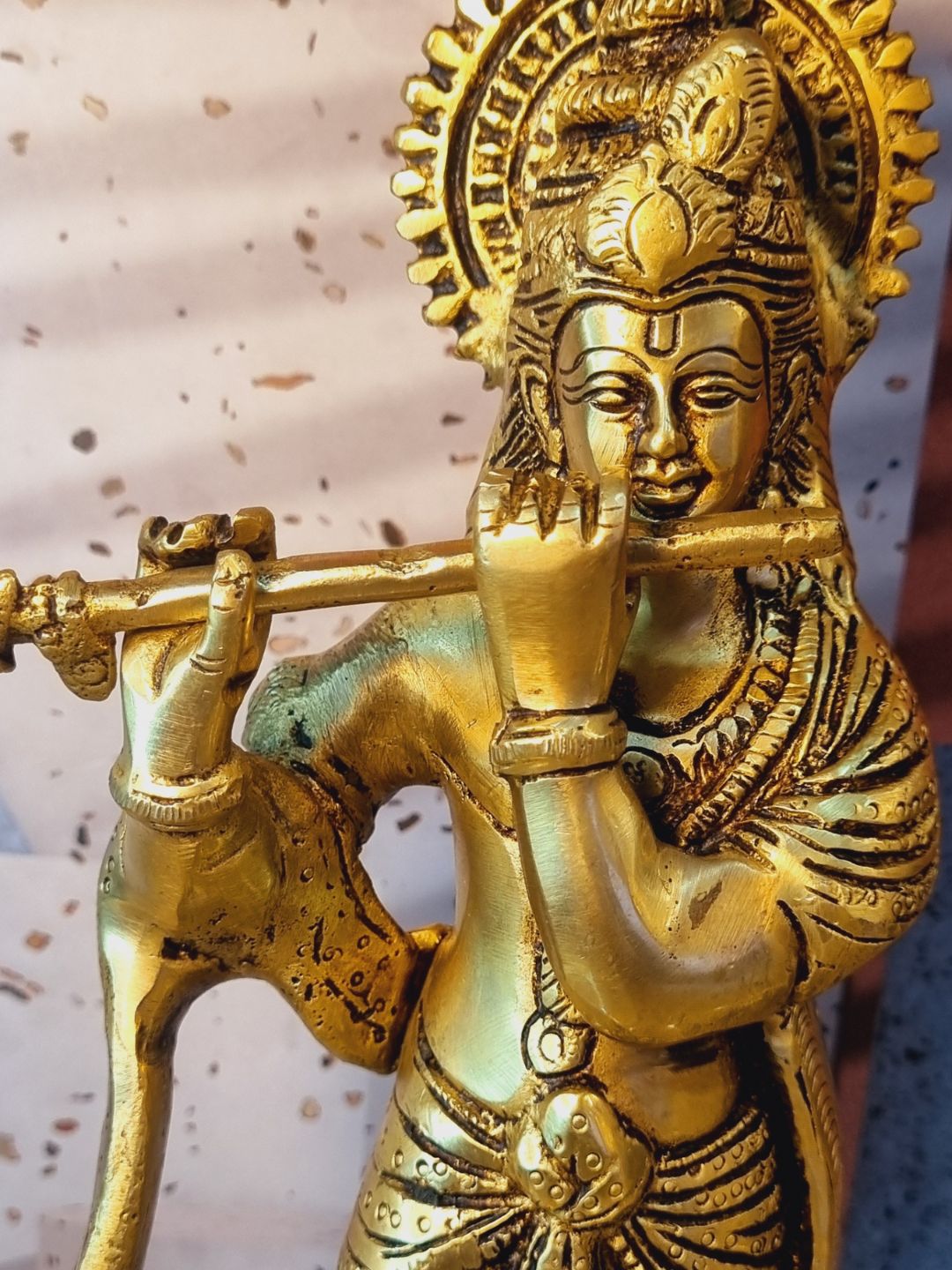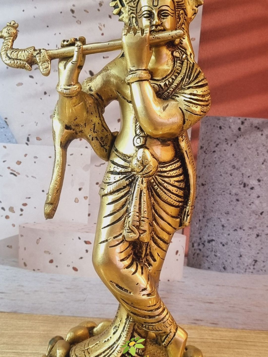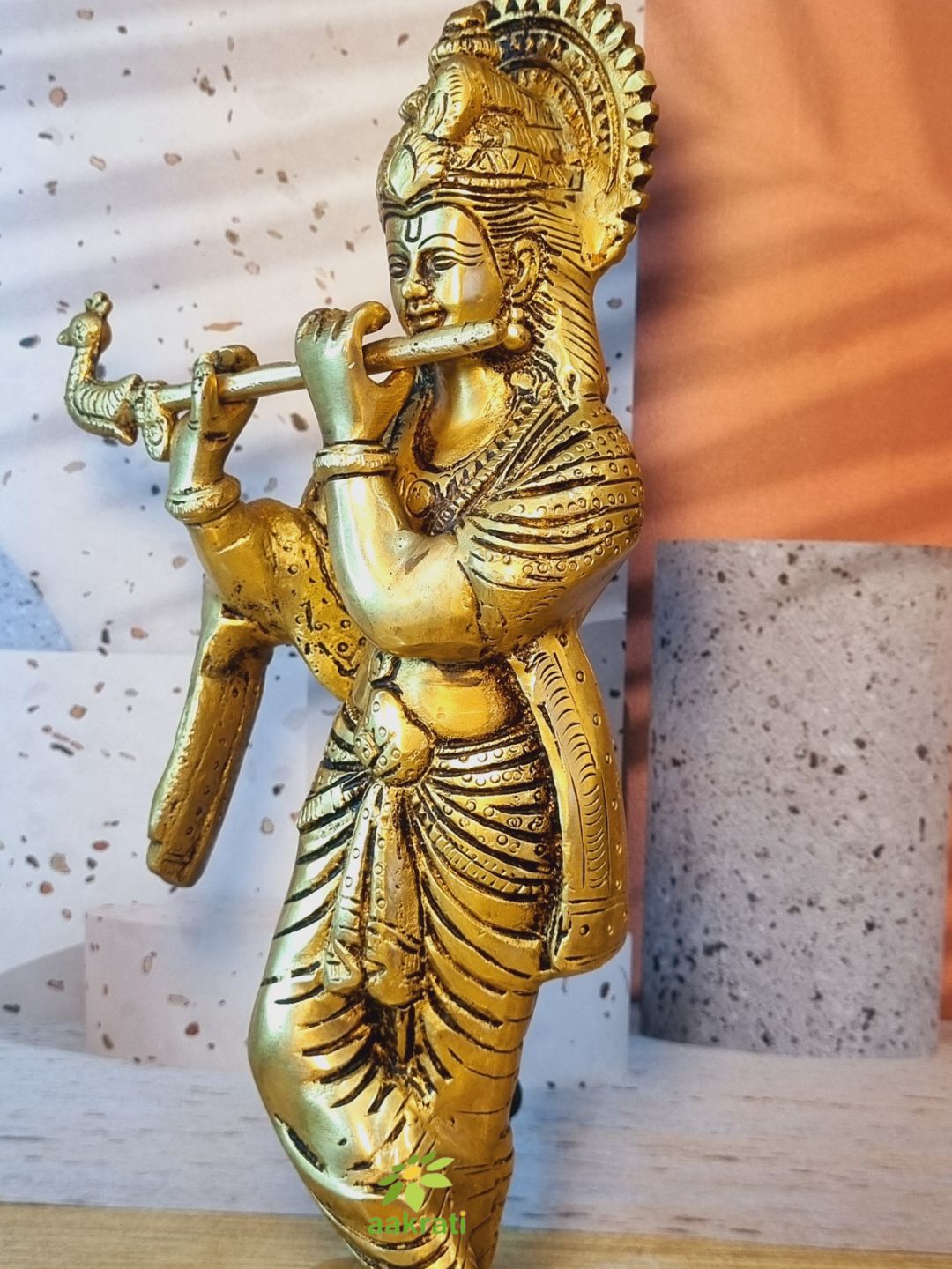 Handmade Brass Krishna Murti | Divine Idol for Home & Pooja Room | Brass Krishna Murti ( Yellow, 11.5 inch)