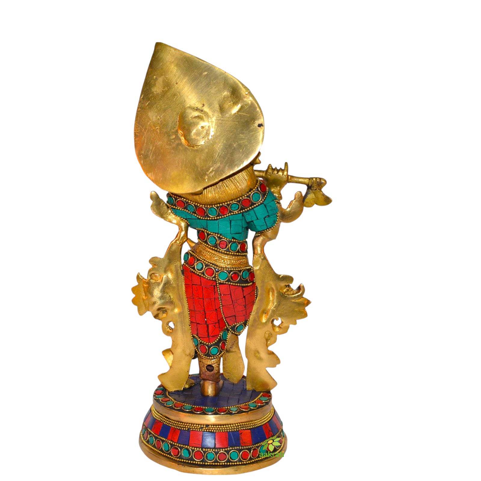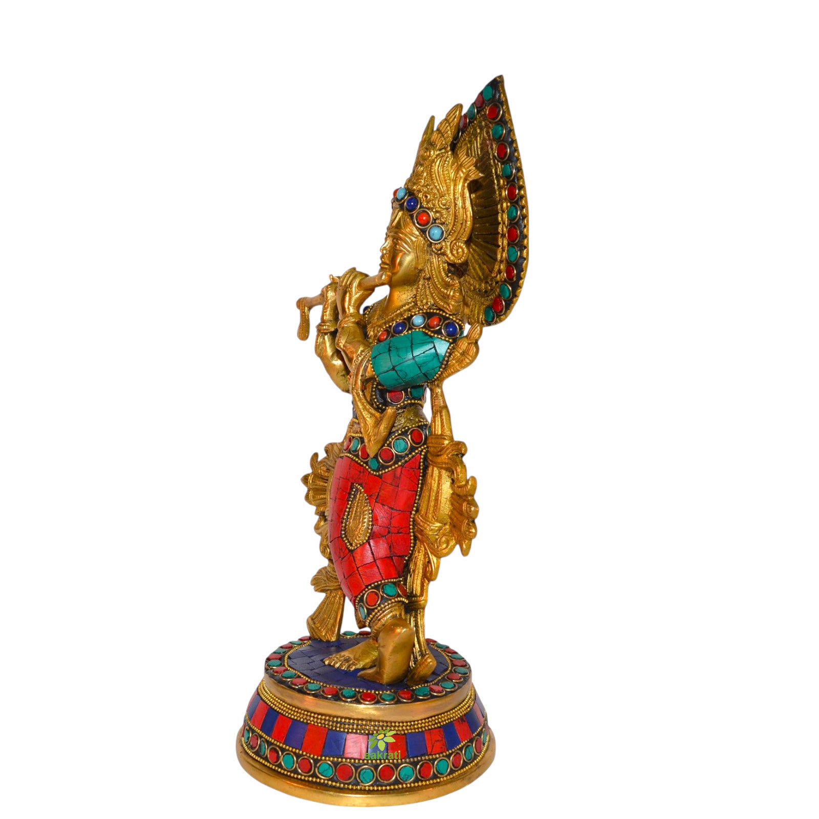 Krishna Statue Made in Brass Metal with turquoise stone finish By Aakrati