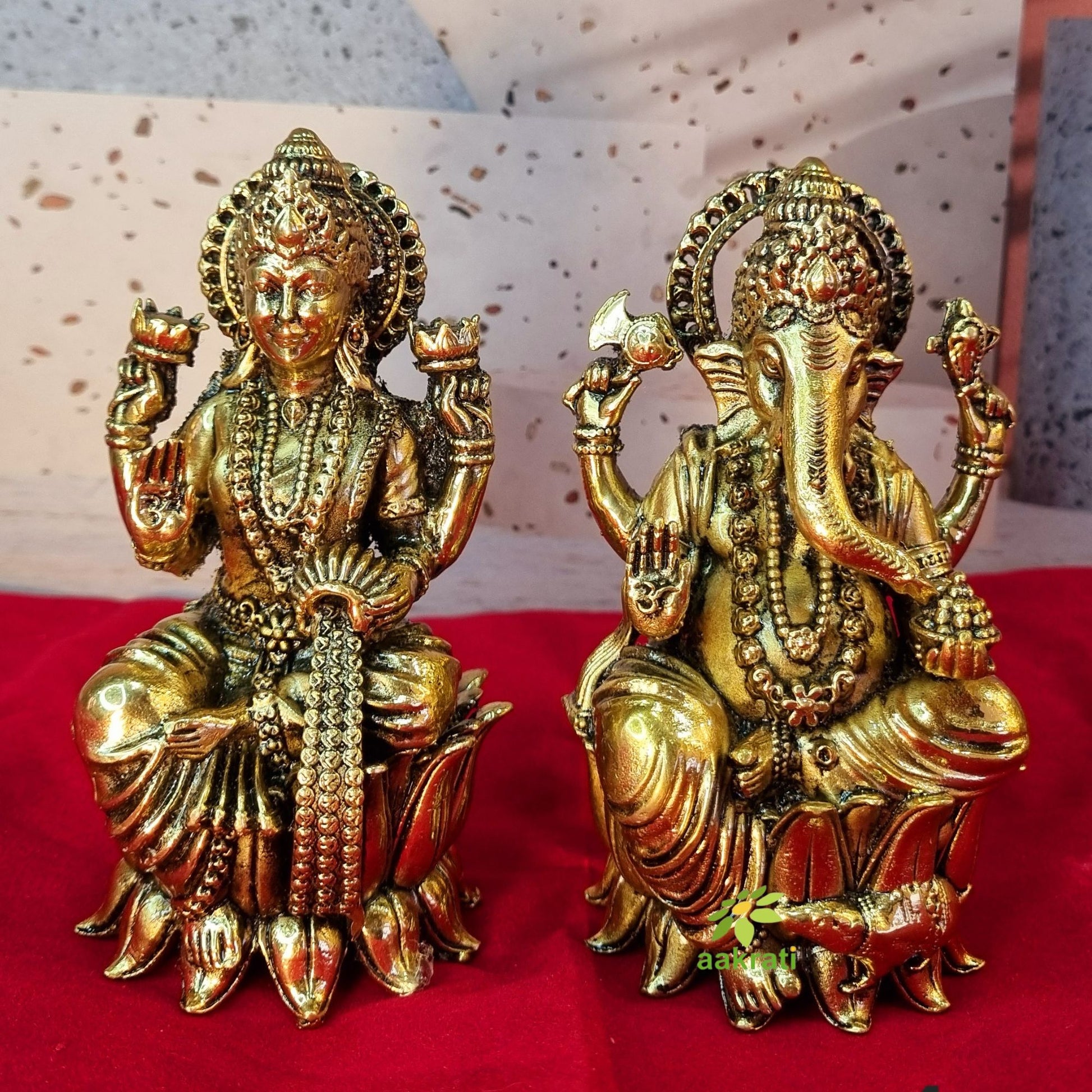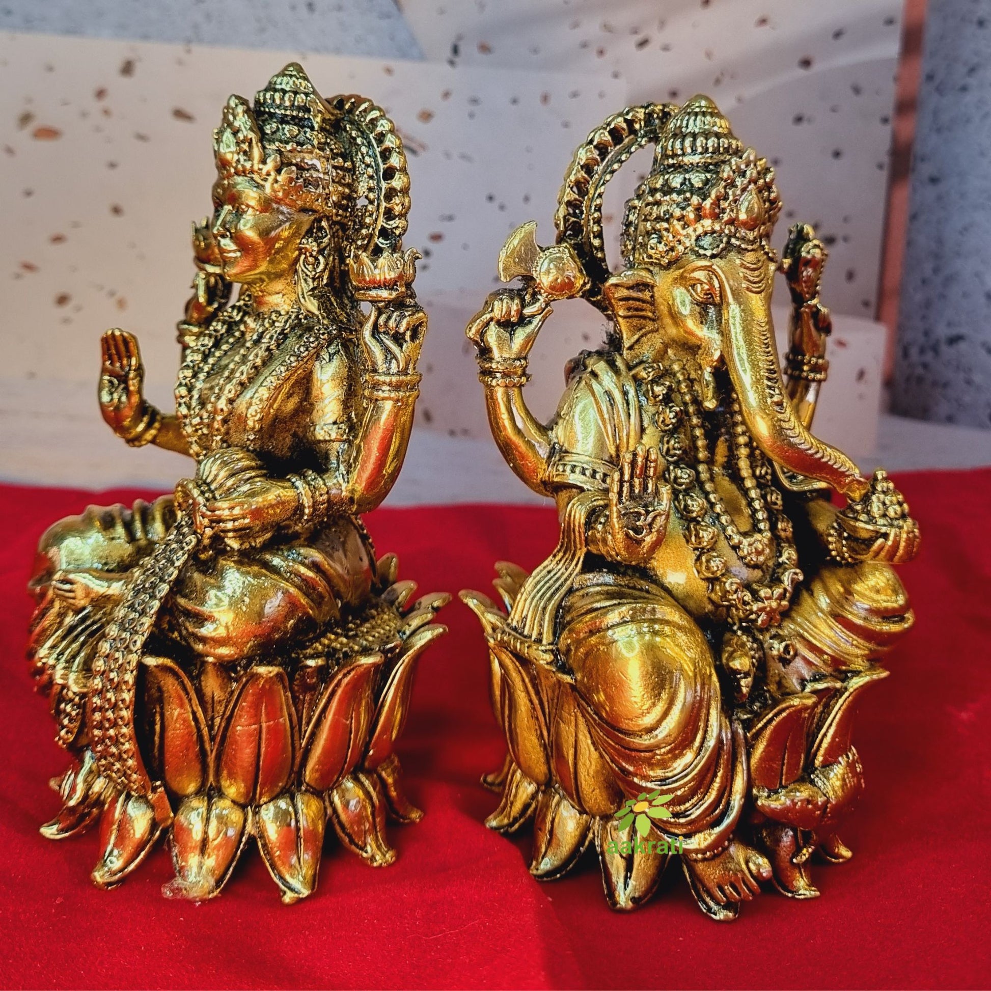 Brass Lakshmi Ganesh Pair| Divine Sculptures for Wealth and Harmony