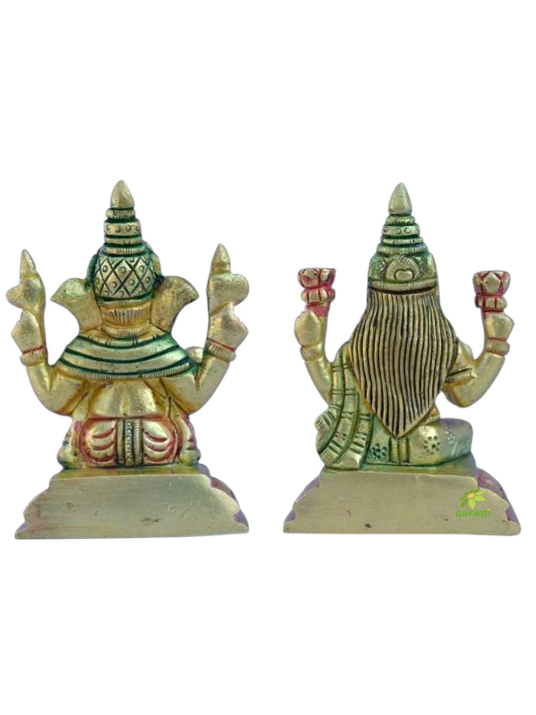 Brass Lakshmi Ganesha Idol Pair | Blessings of Wealth and Prosperity for Your Space | Elegant Brass Lakshmi Ganesha Set ( Multi Colour, 3.1 inch)