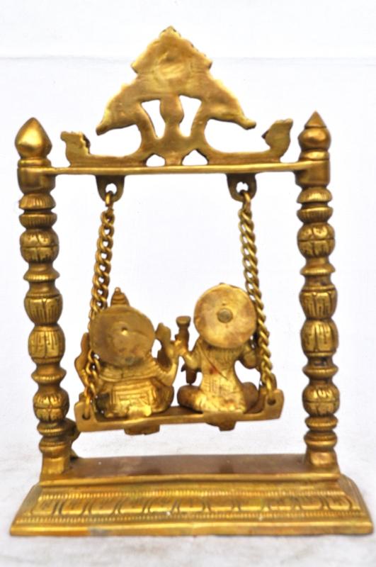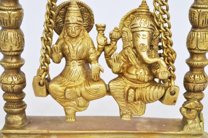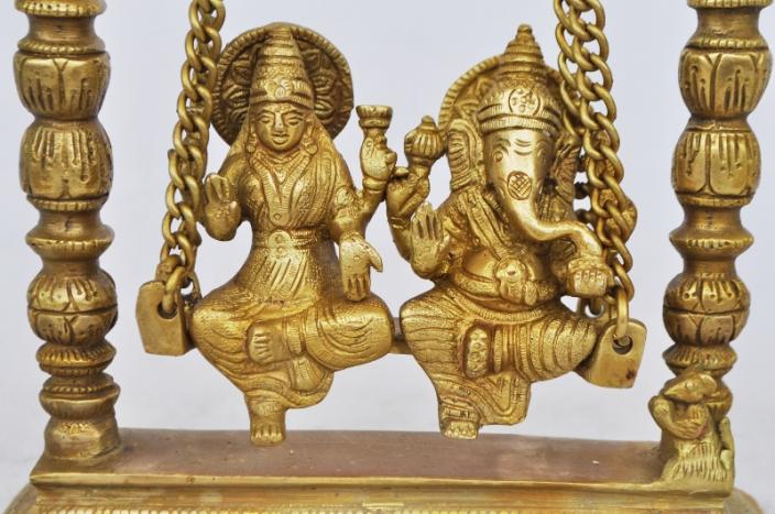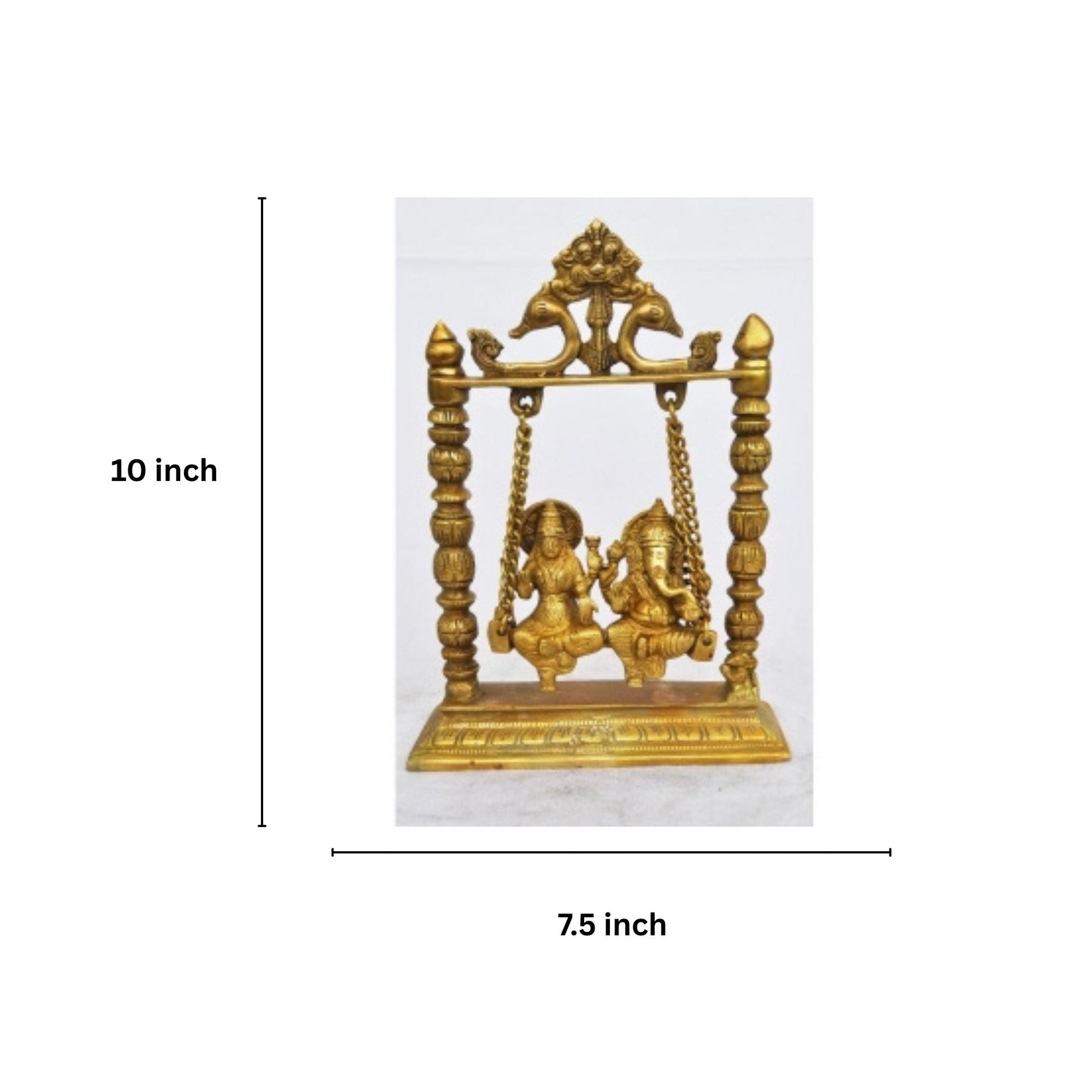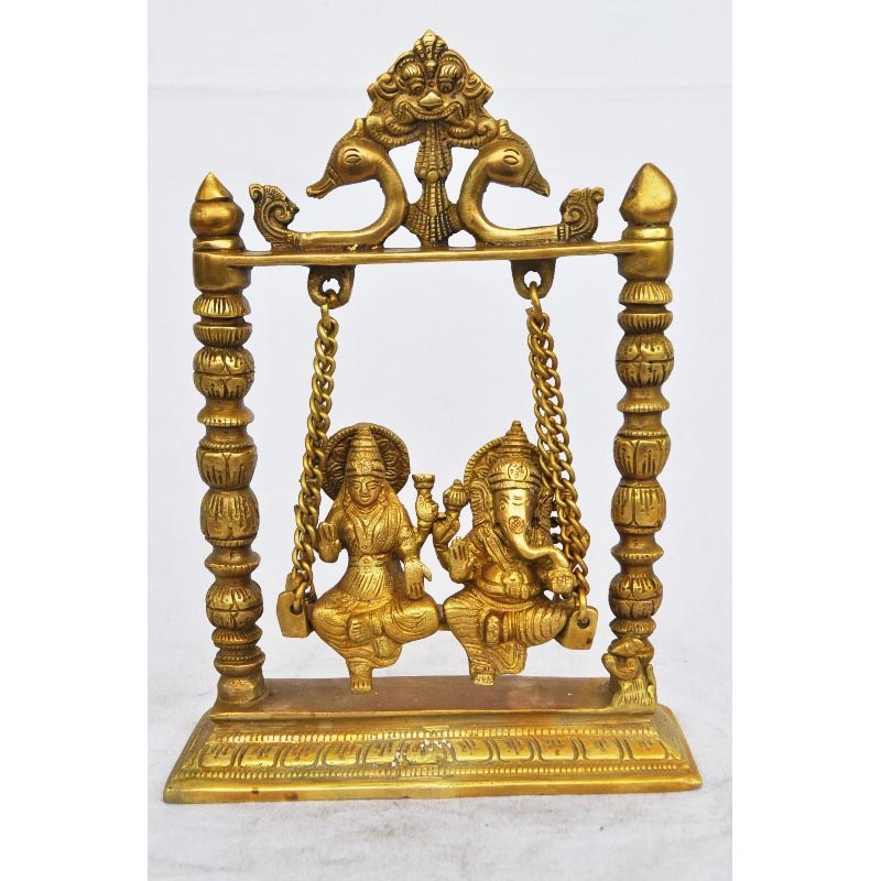 Brass Laxmi Ganesha Swing Idol | Handcrafted Religious Decor for Home Temple | Brass Laxmi Ganesha Murti ( Yellow, 10 inch)