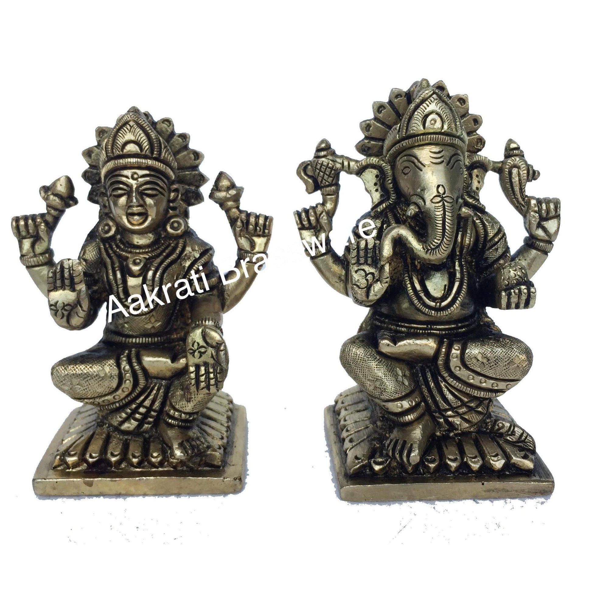 Laxmi Ganesha Brass metal hand carved pooja ghar statue
