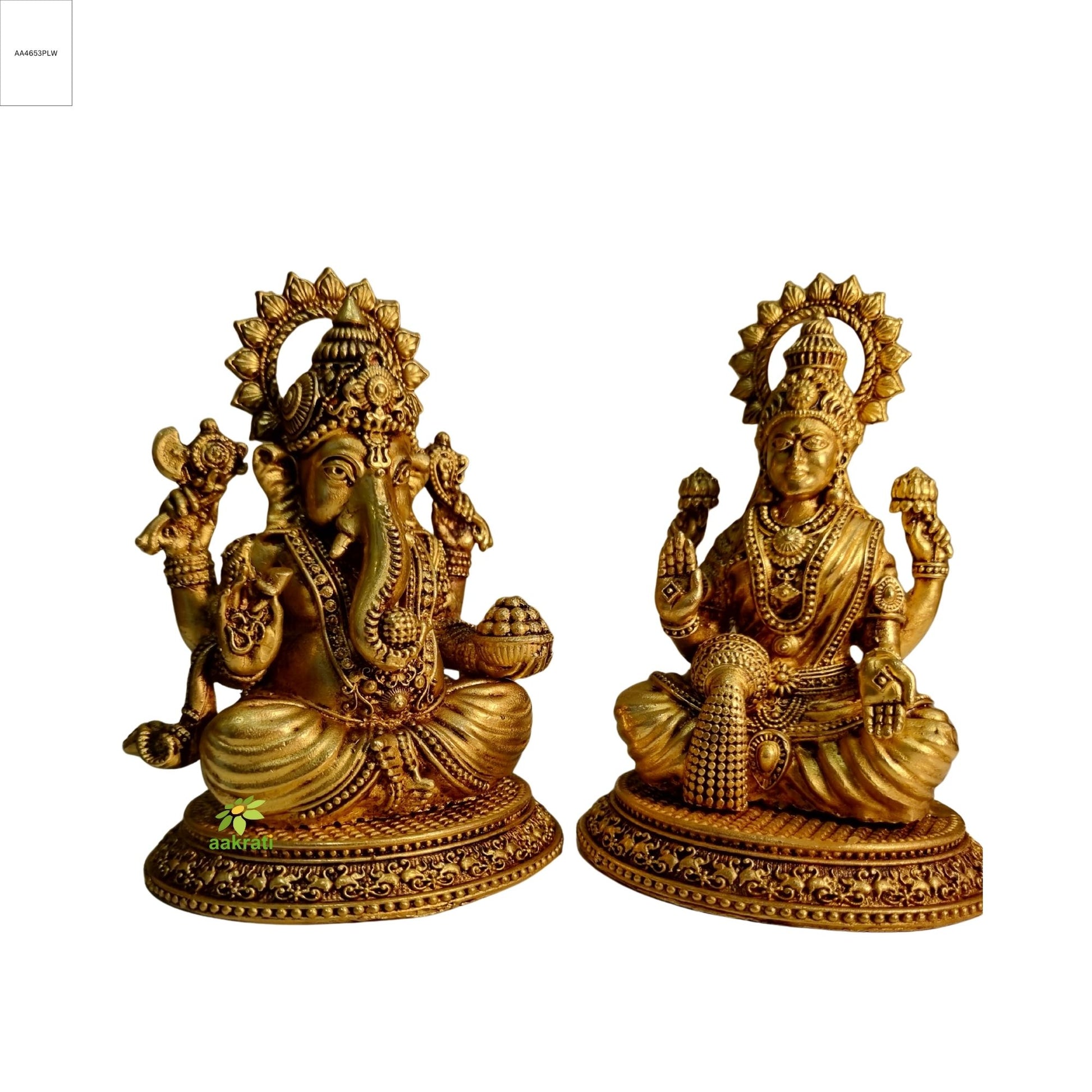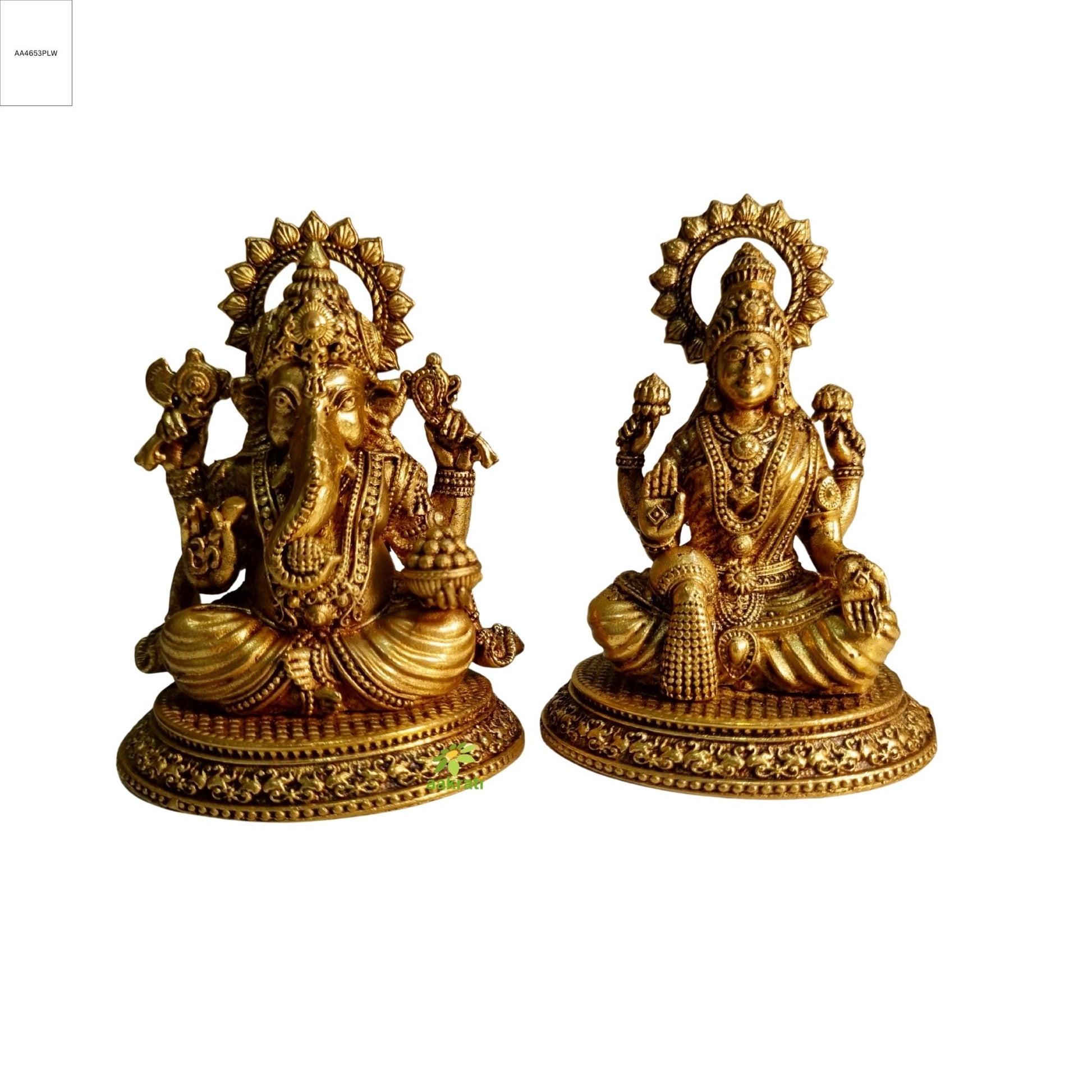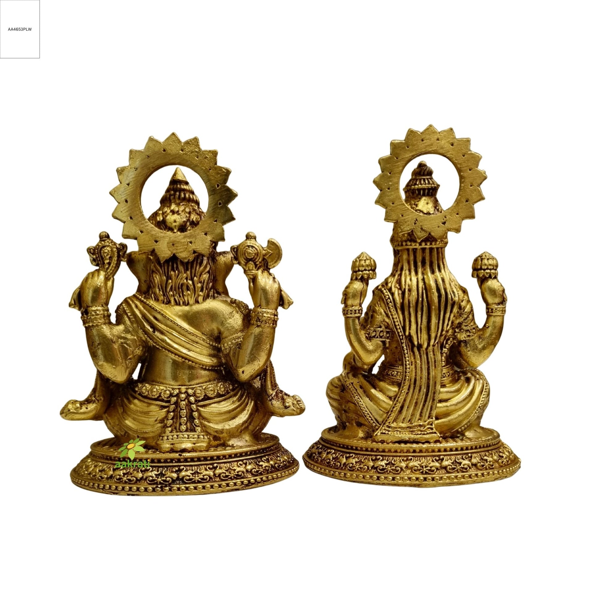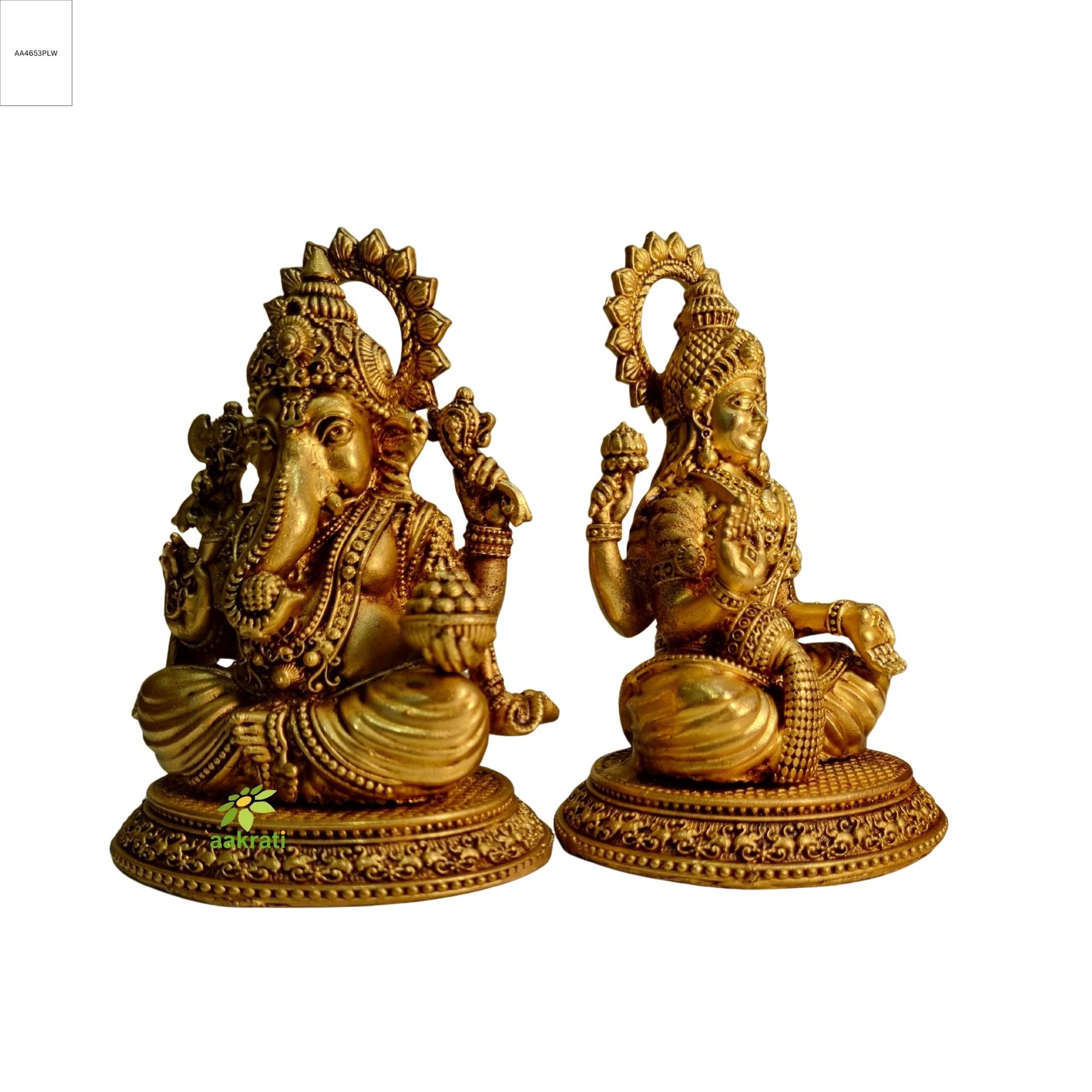 Pure Brass Laxmi Ganesh Murti | Decorative Idol for Temple & Festive Gifting | Light Weighted Lakshmi Ganesh Brass Idol Set (Yellow, 3 Inch)