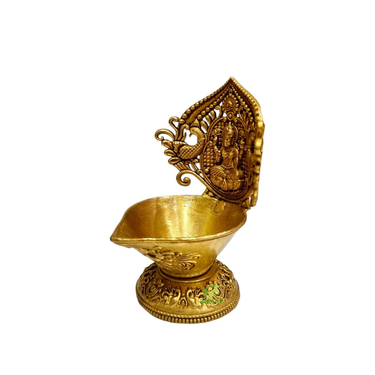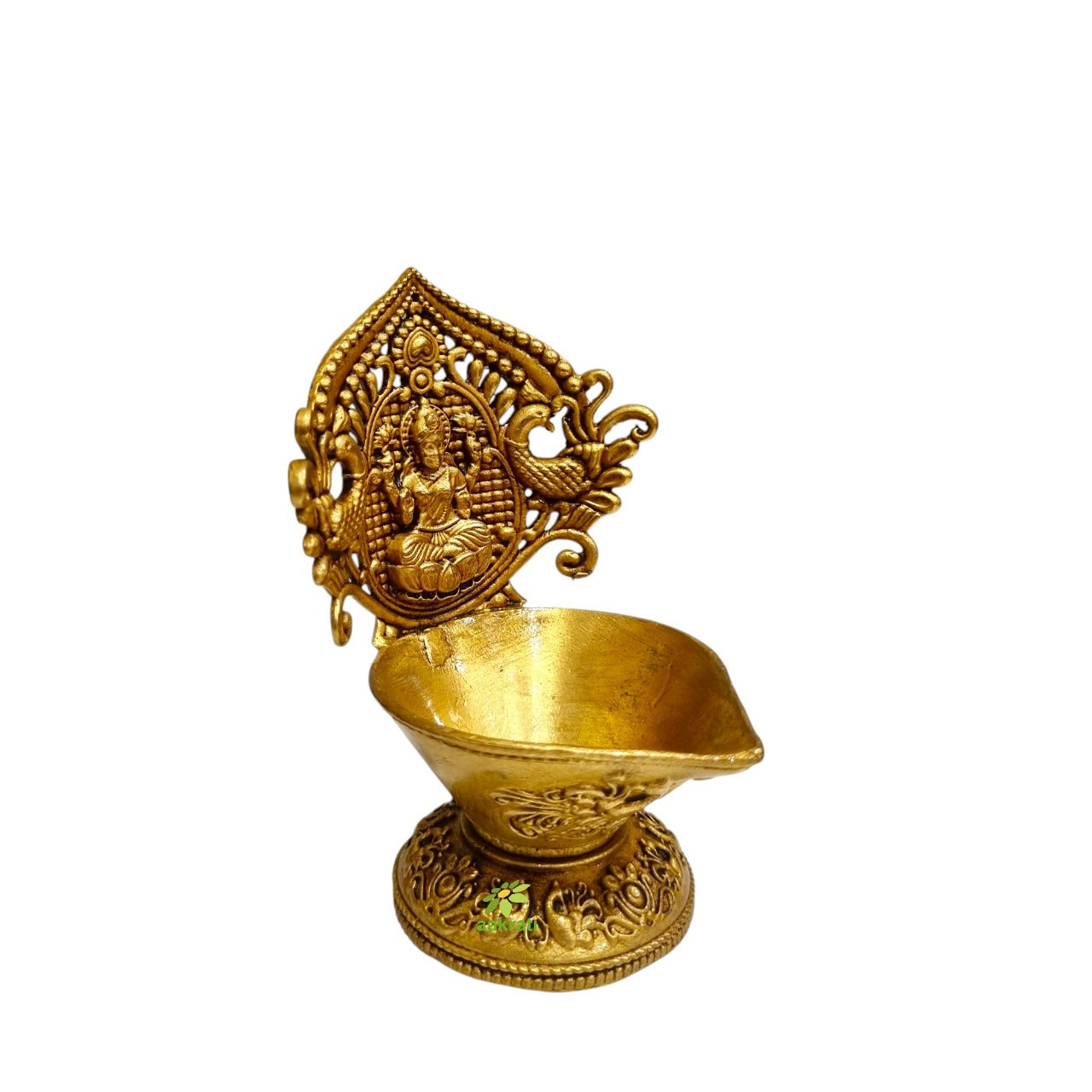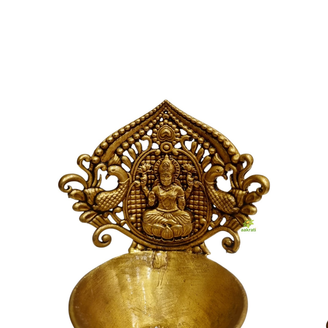 Brass Diya for Diwali, Pooja & Gifting | Elegant Oil Lamp for Hindu Religious Ceremonies | Brass Laxmi Diya (Yellow, 4.5 Inch)