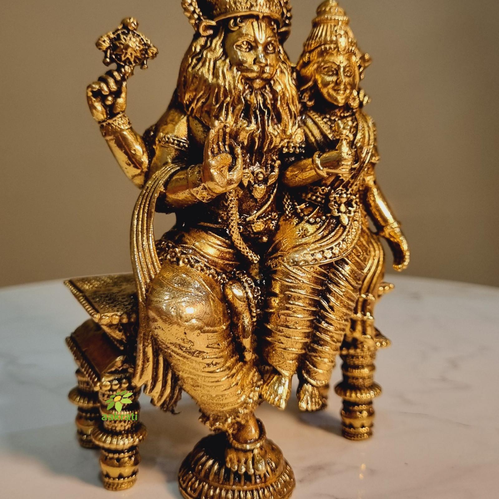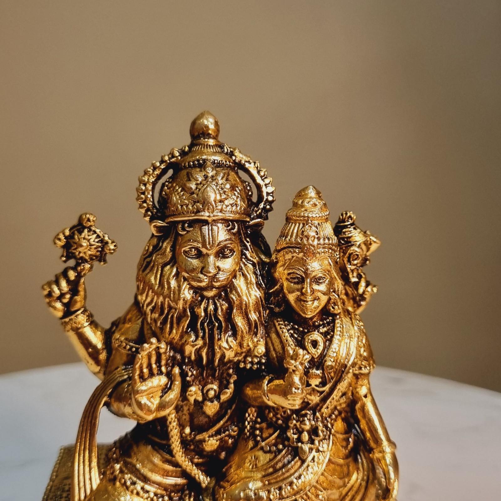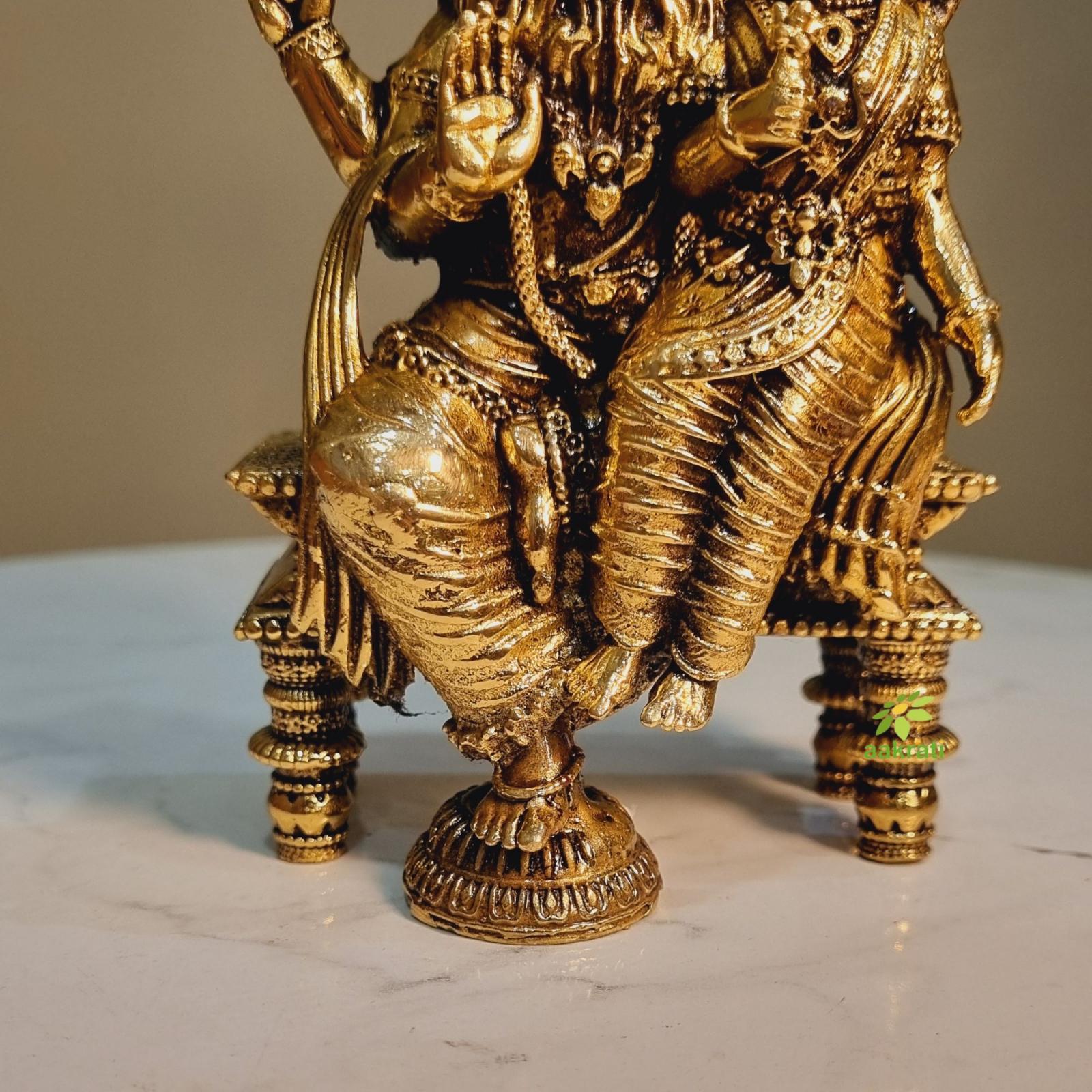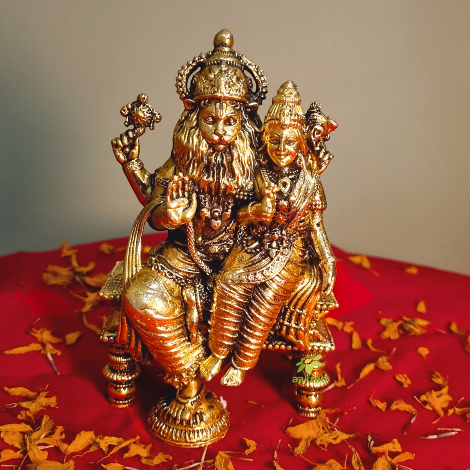 Brass Narsimha Idol | Bless Your Temple with Divine Might | Brass Narsimha Murti ( Yellow, 5.3 inch)