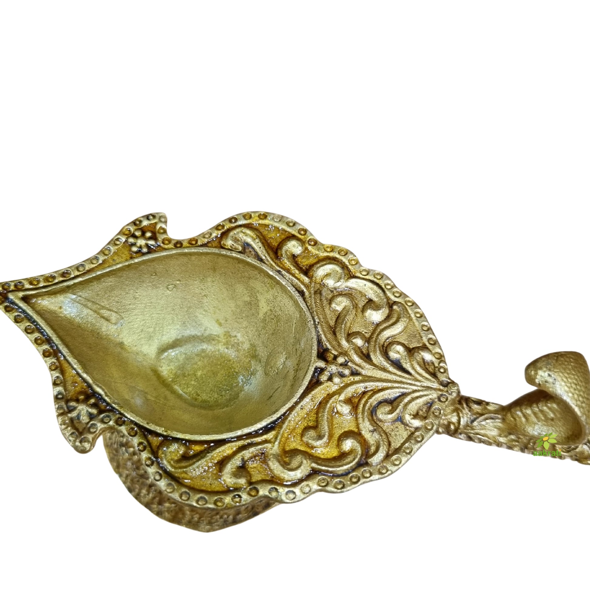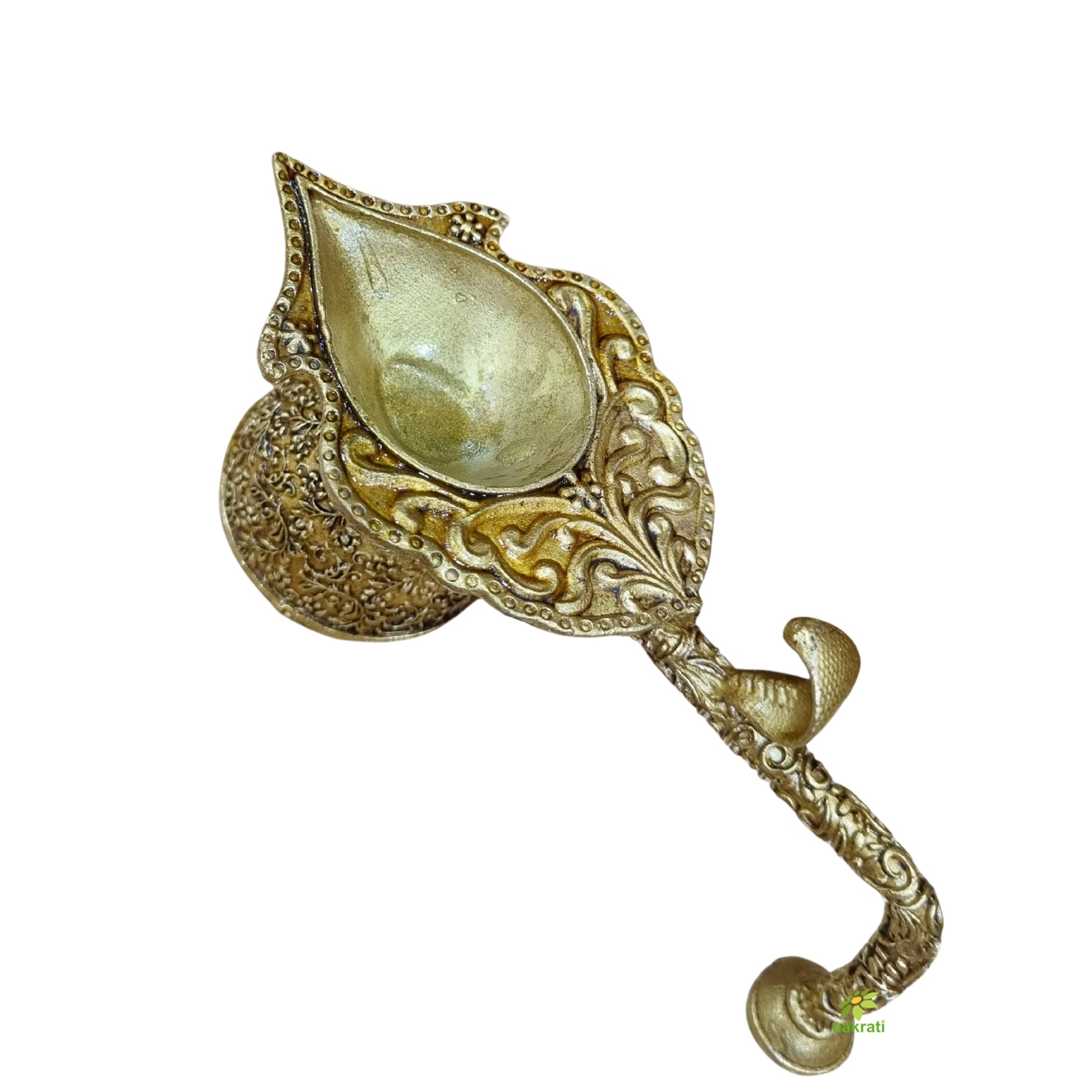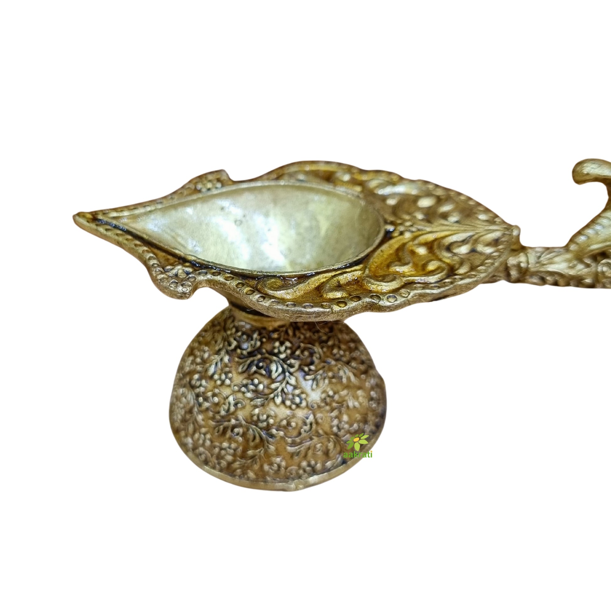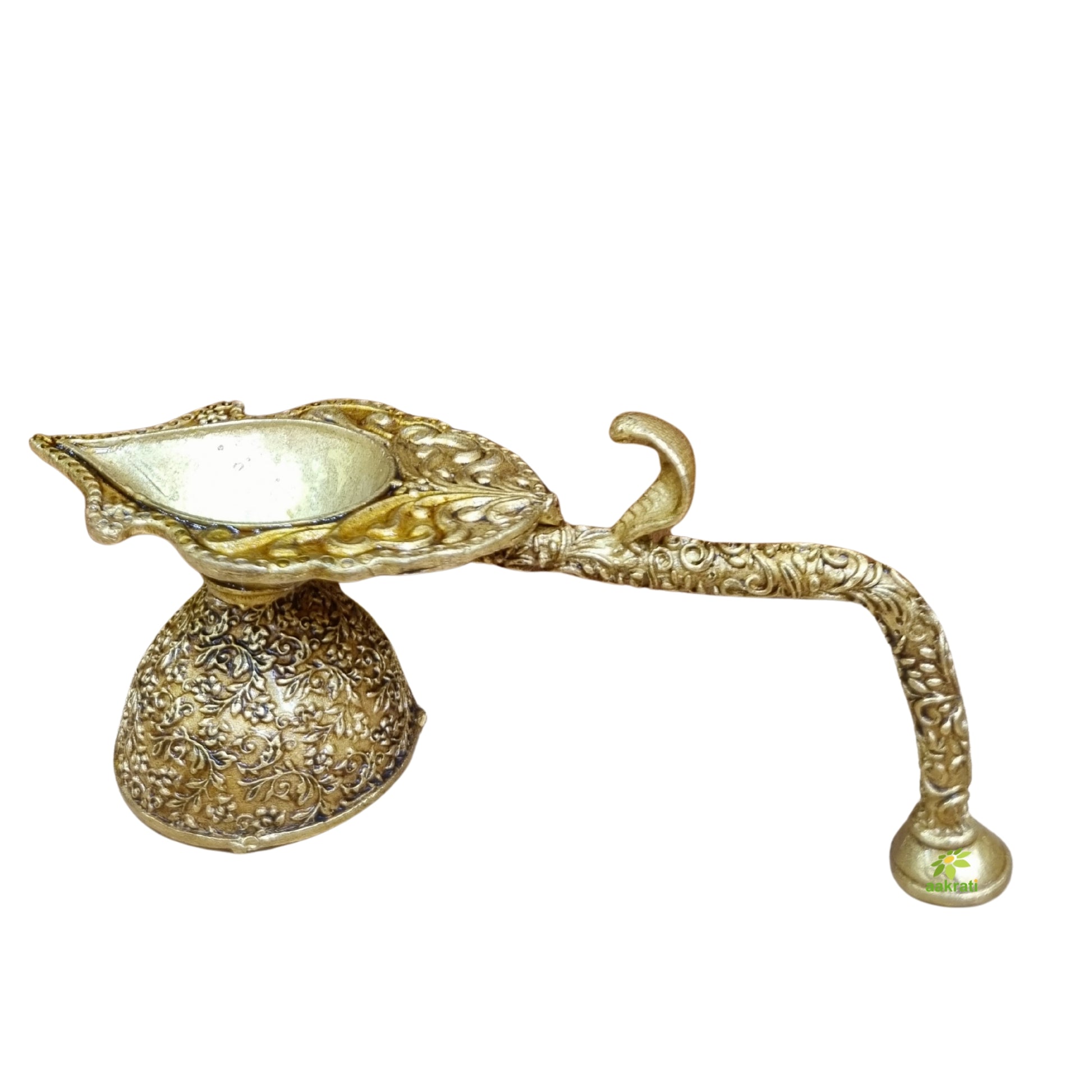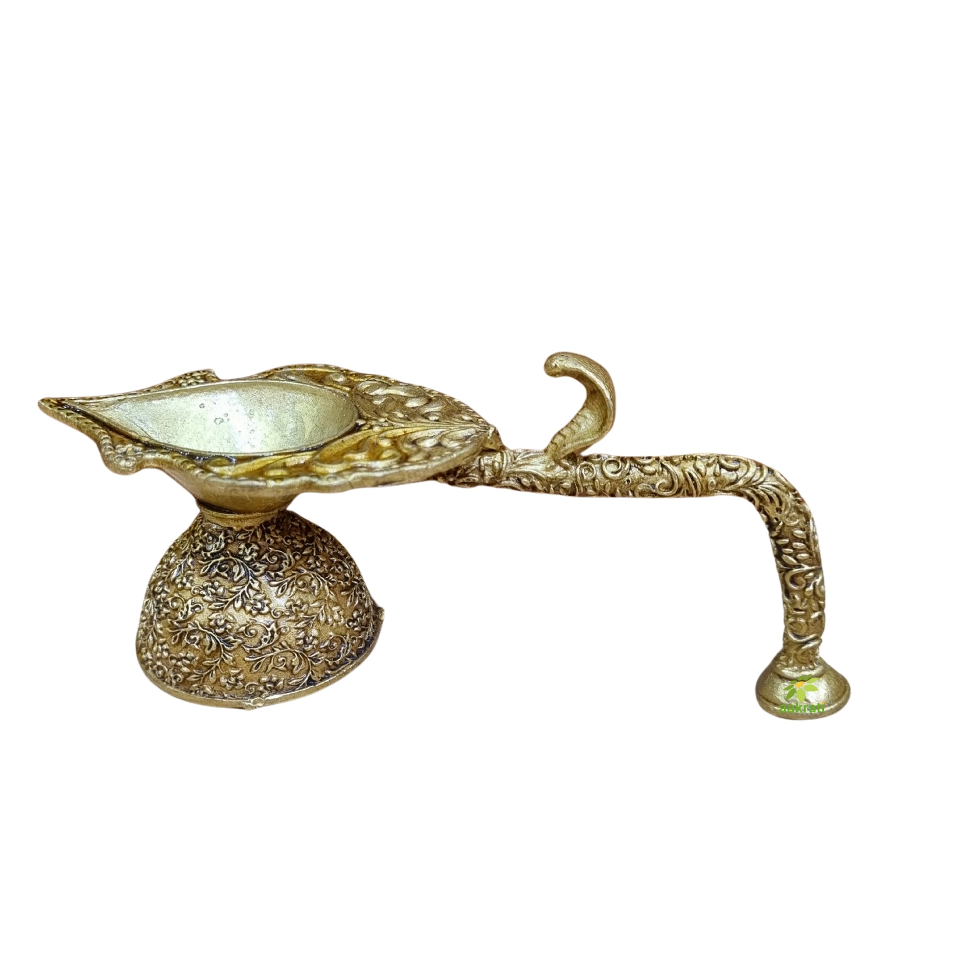 Light Weighted Brass Diya with Handle | Antique Oil Lamp for Puja & Home Decor | Handcrafted Brass Diya with Long Handle | Religious Decor & Festive Gift Item (Yellow, 2.2 Inch)