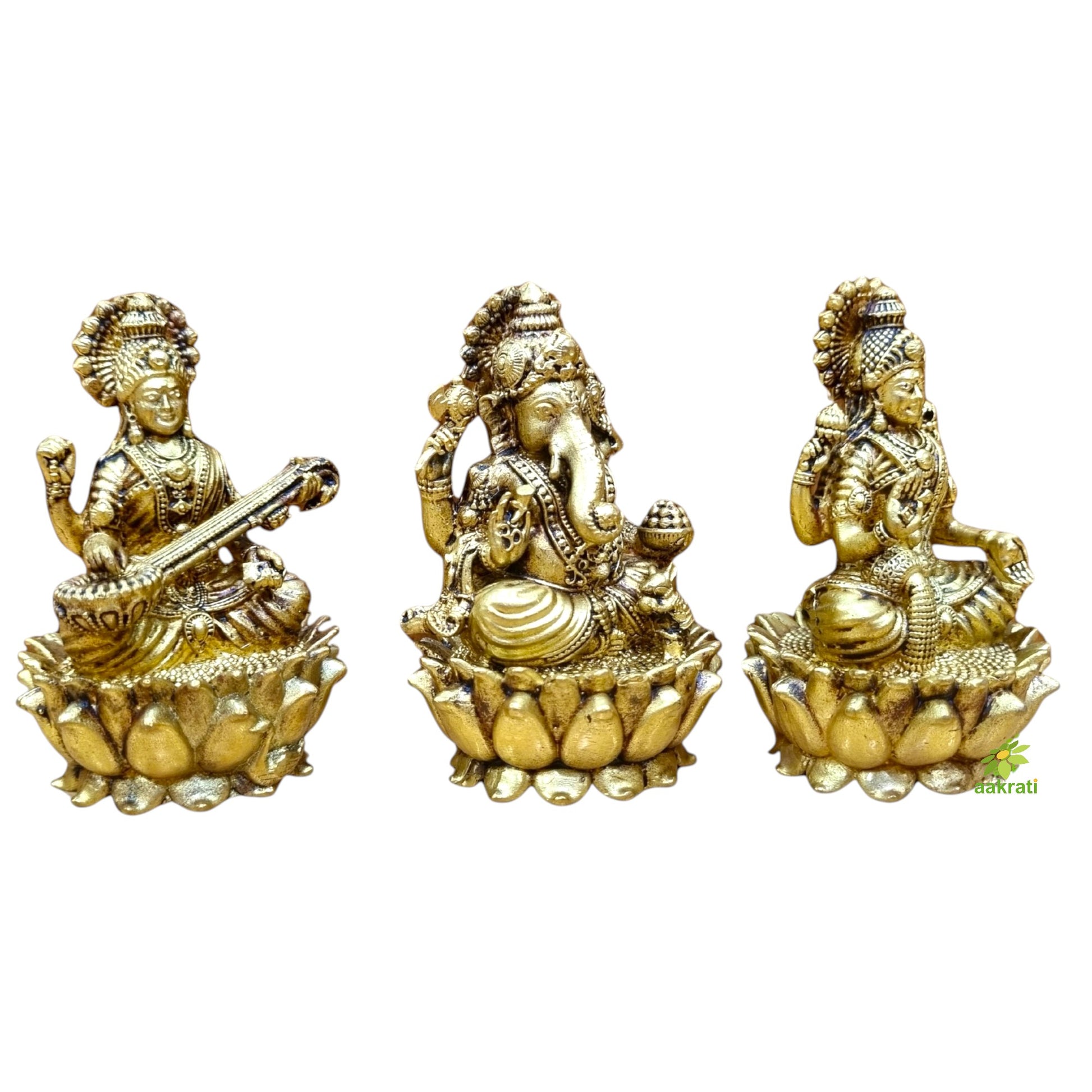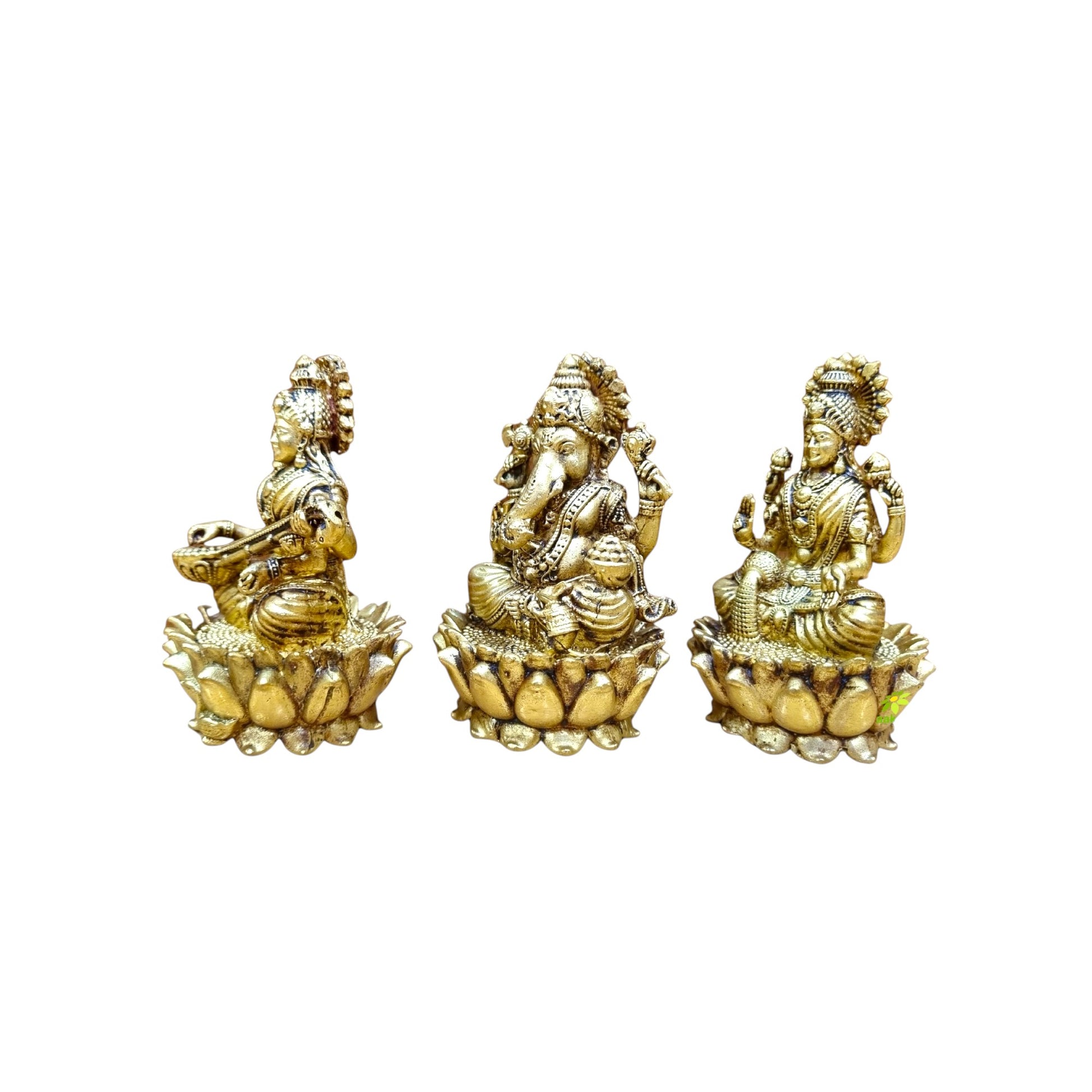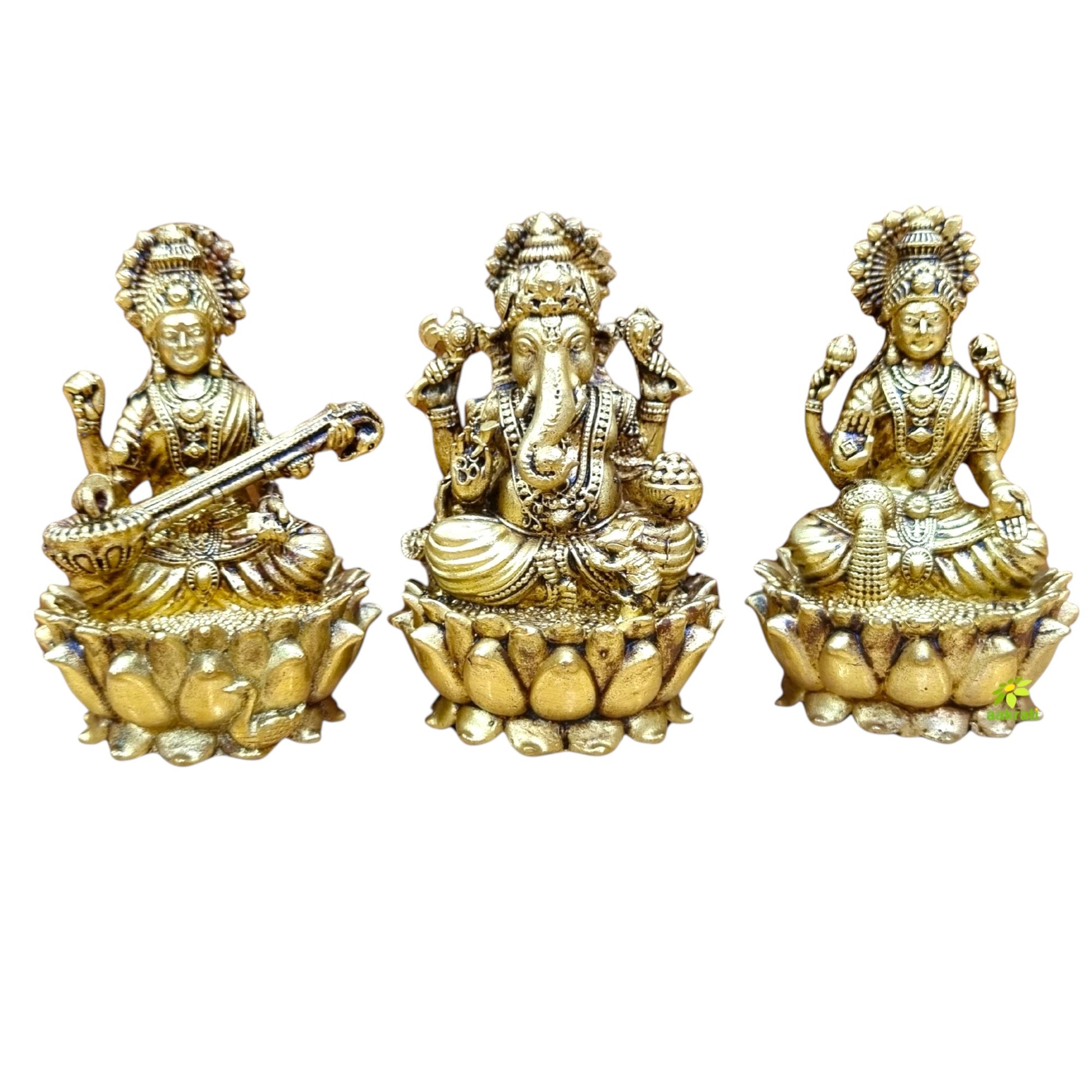 Light Weighted Brass Laxmi Ganesh Saraswati Idol Set for Temple | Puja Murti for Home & Office Mandir | Temple Idols for Diwali & Daily Rituals (Yellow, 3 Inch)