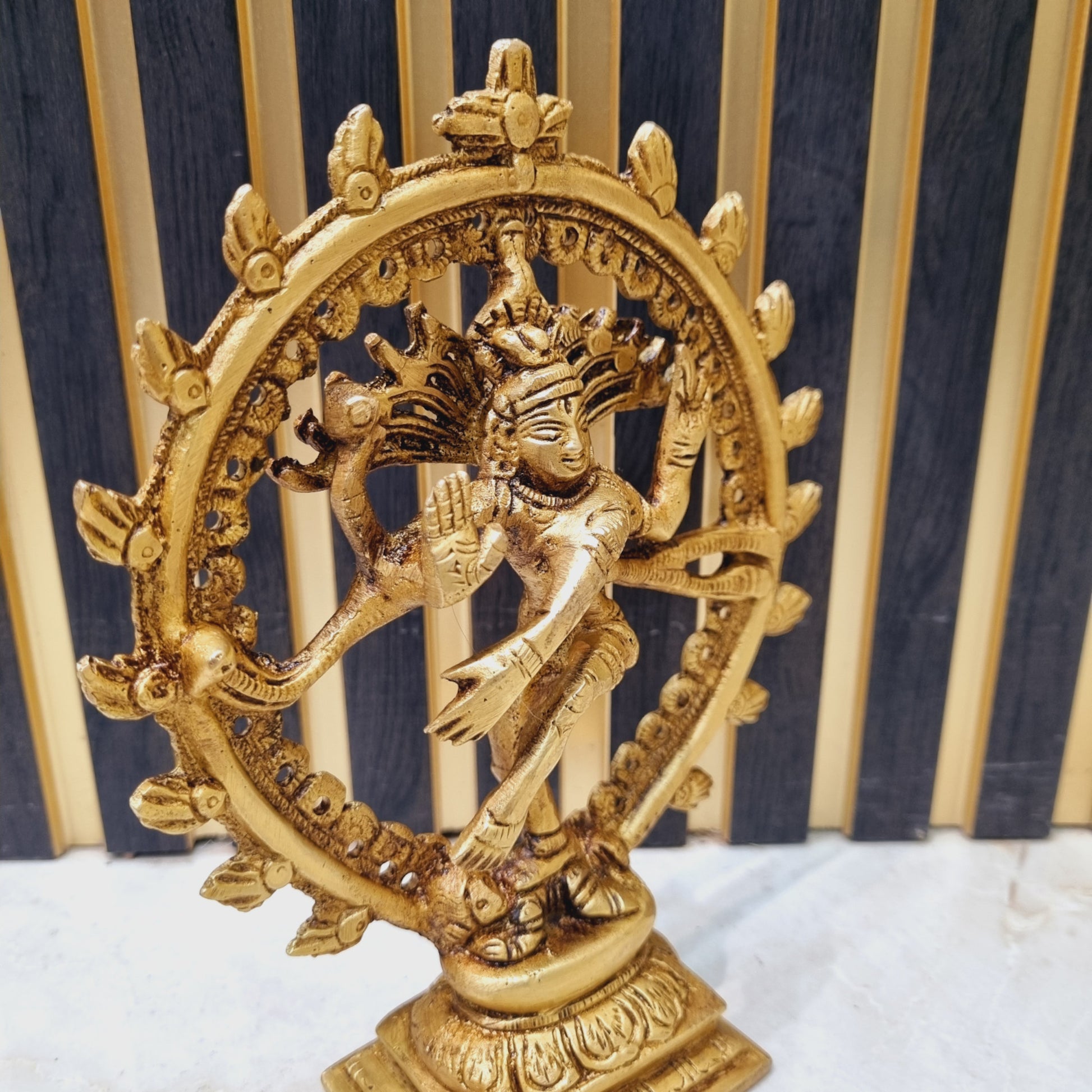 Handcrafted Nataraj Brass Statue | Spiritual Elegance for Your Home | Nataraj Brass Figurine ( Yellow, 6 inch)