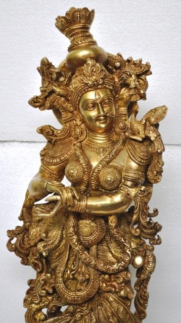 Brass Radha Murti | Perfect Gift for Devotees and Home Decor Lovers | Divine Radha Idol ( Antique, 30 inch)