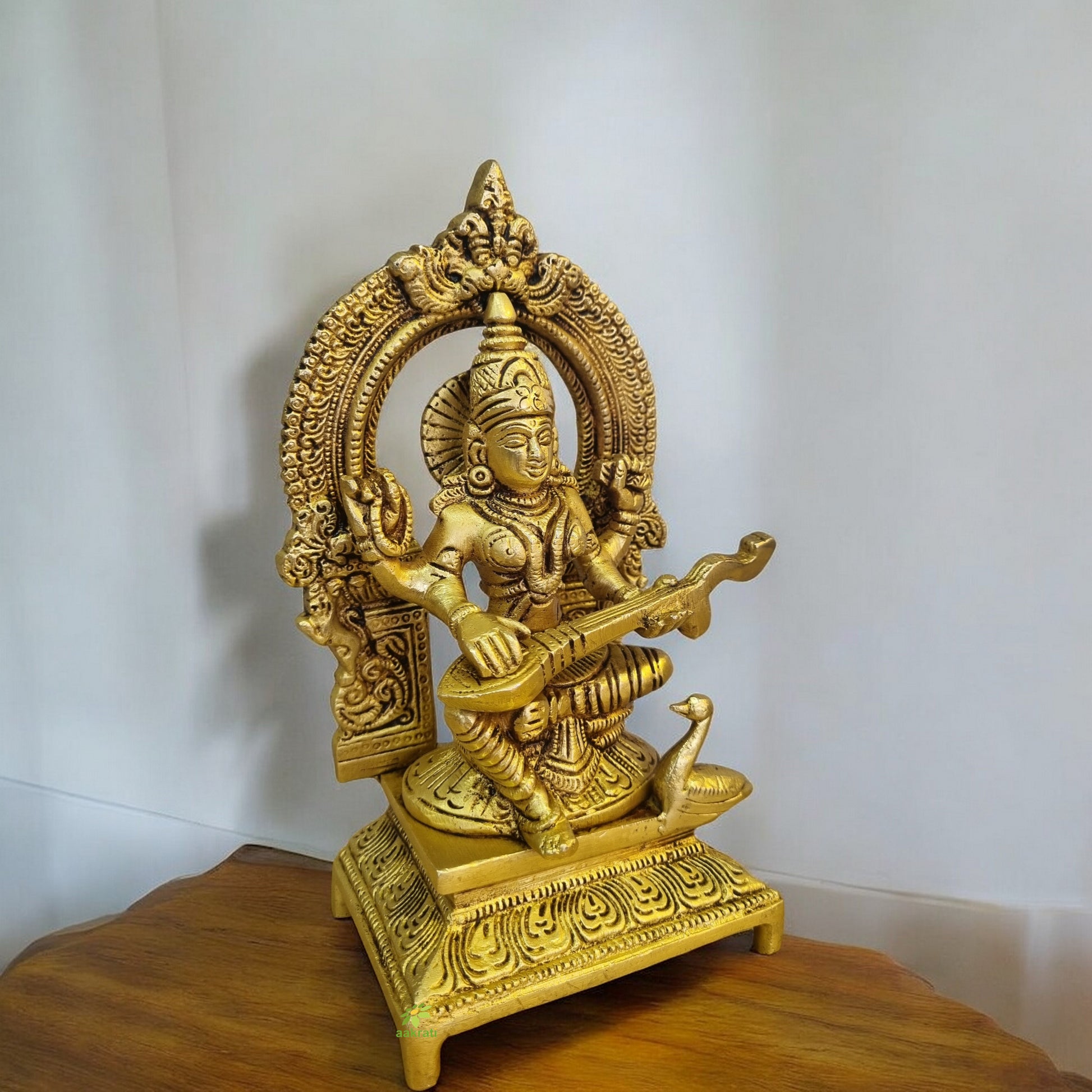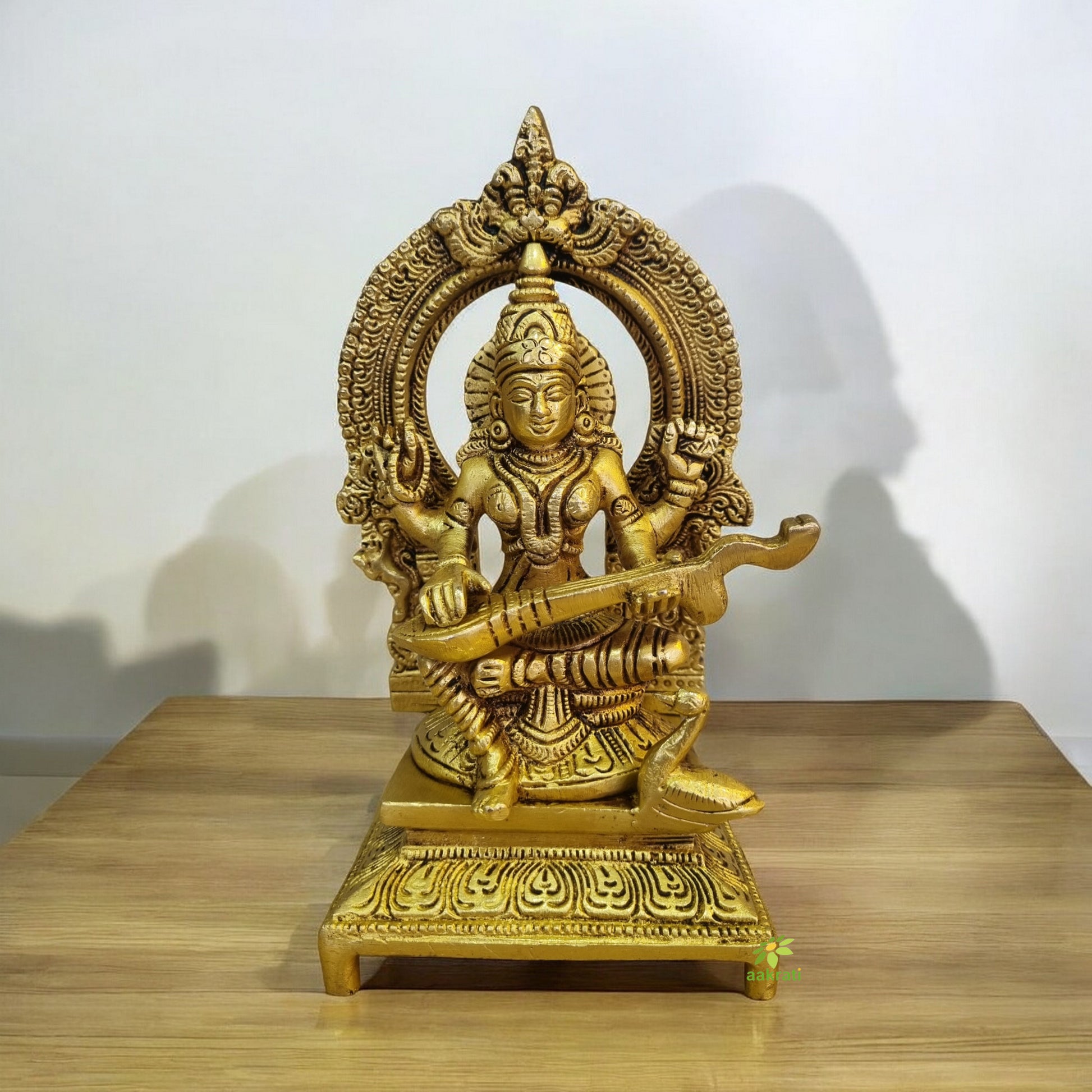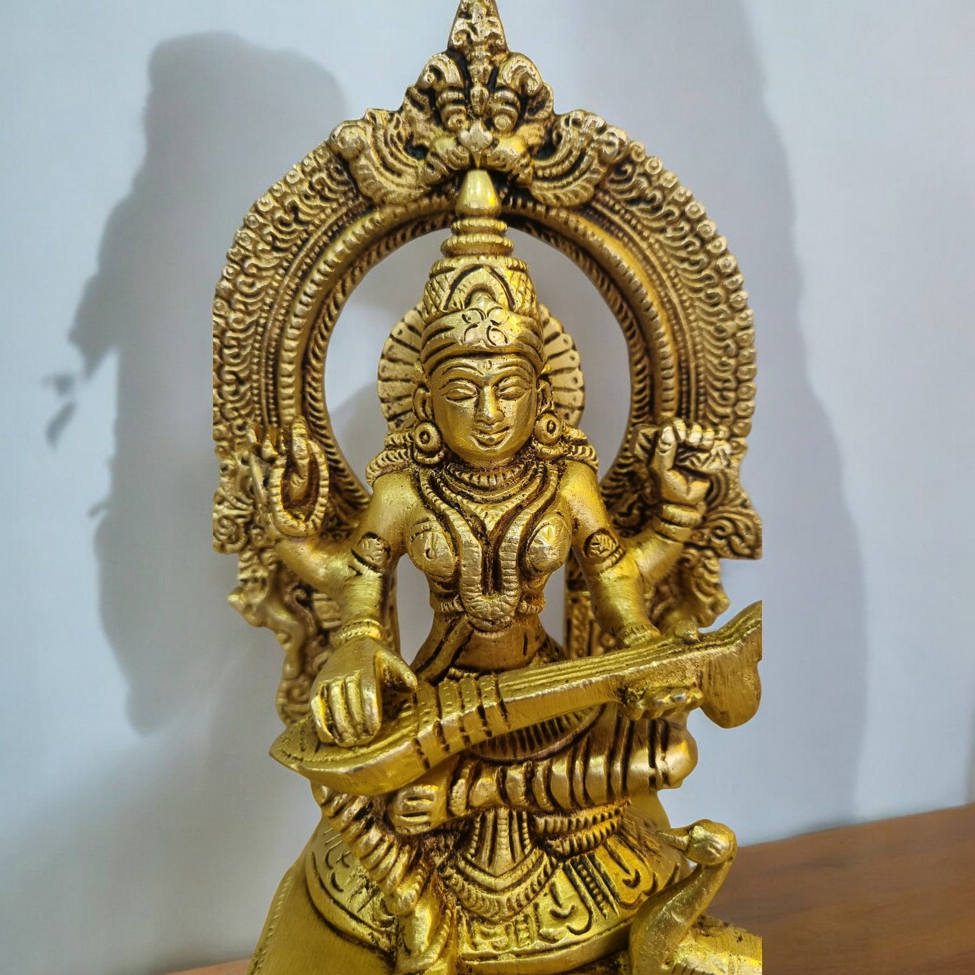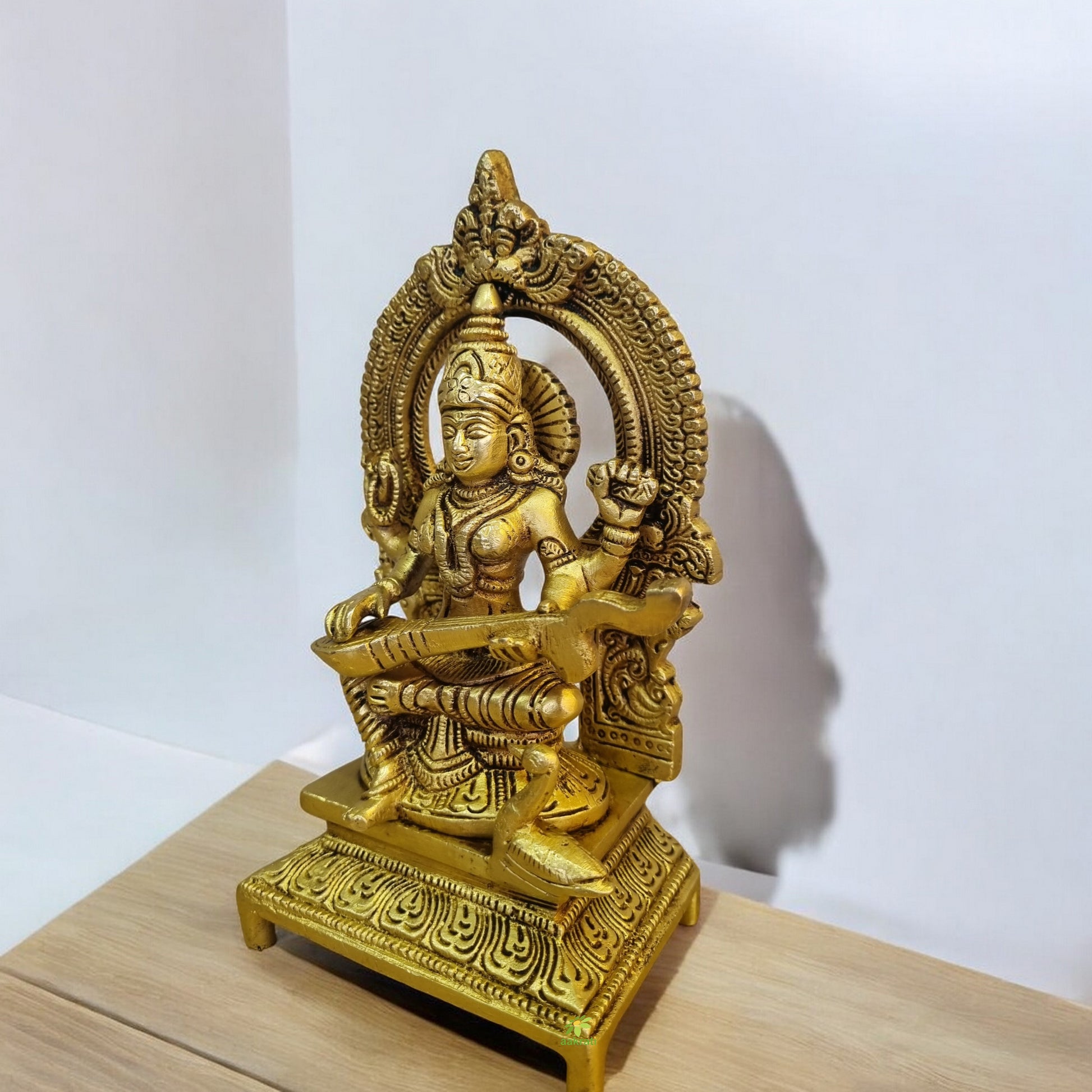 Traditional Brass Saraswati Idol | Perfect Home Decor for Wisdom, Learning, and Arts | Handmade Saraswati Murti ( Yellow, 7 inch)