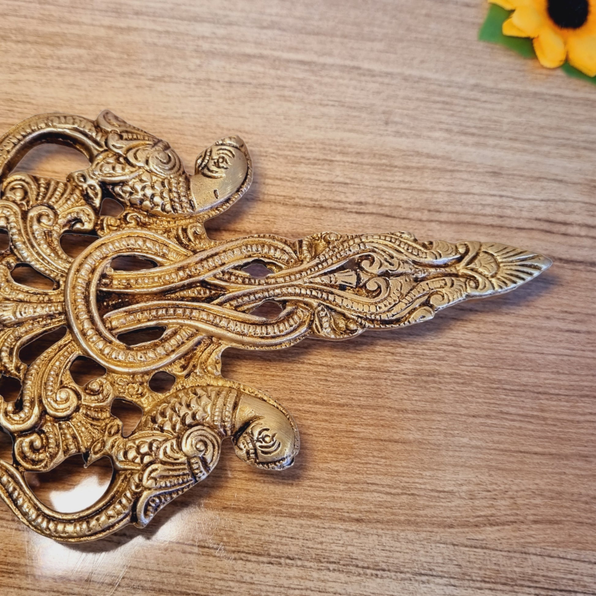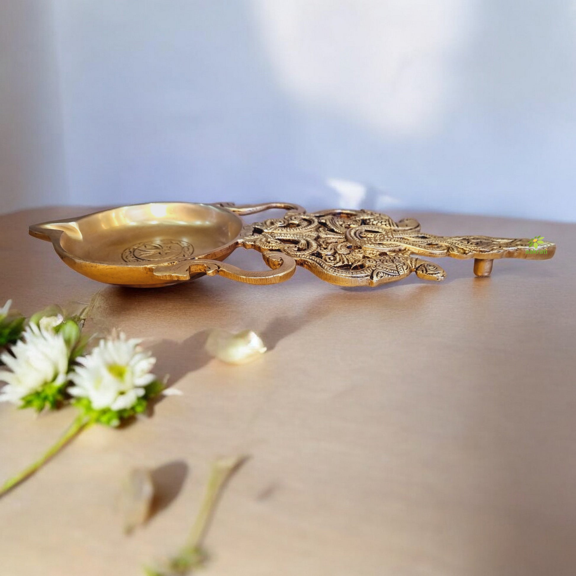 - Highlight the use of high-quality brass that ensures durability and longevity. Emphasize that it doesn't tarnish easily and retains its shine for a long time, making it suitable for religious rituals and decorations.
