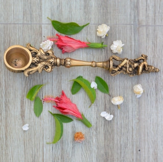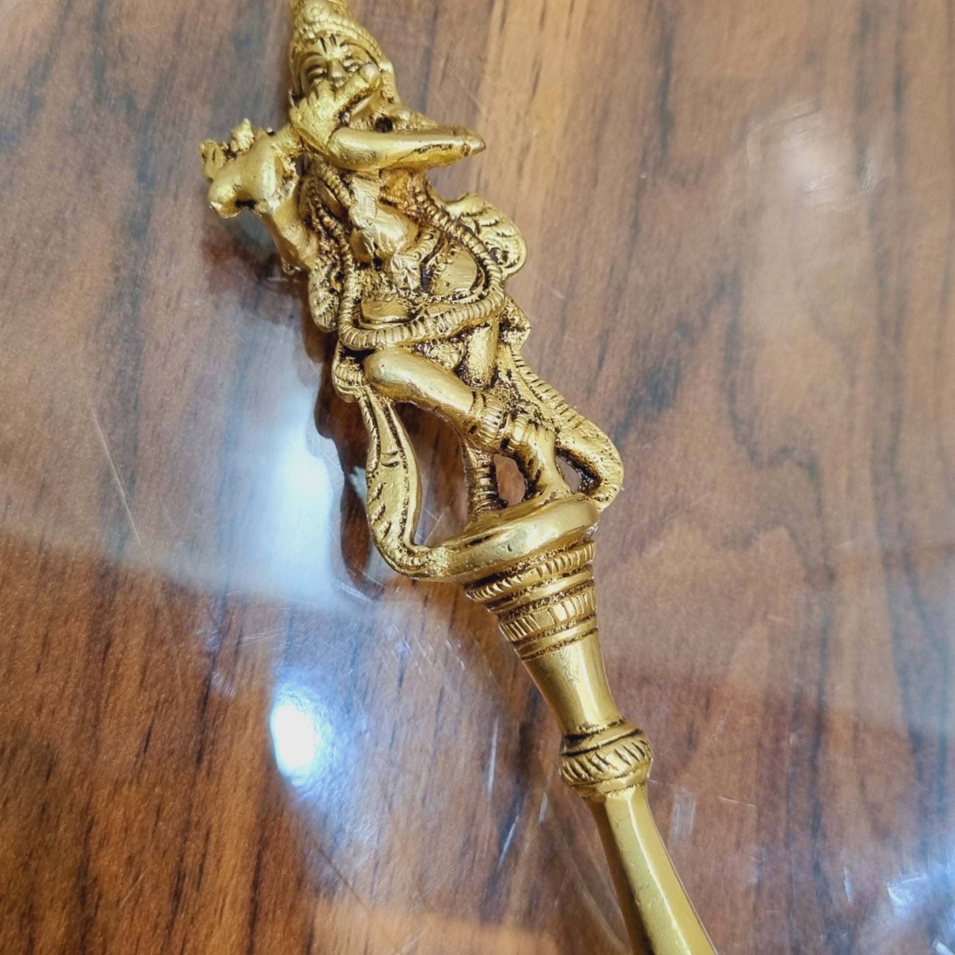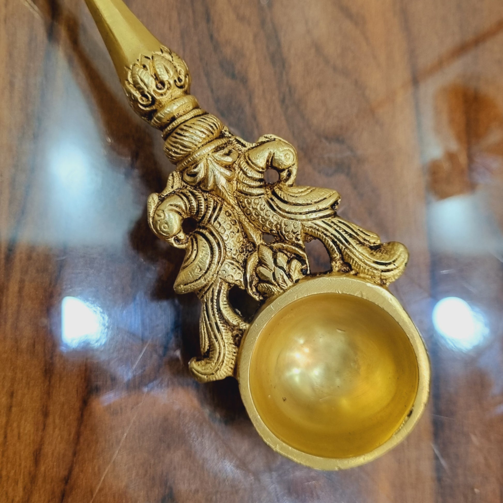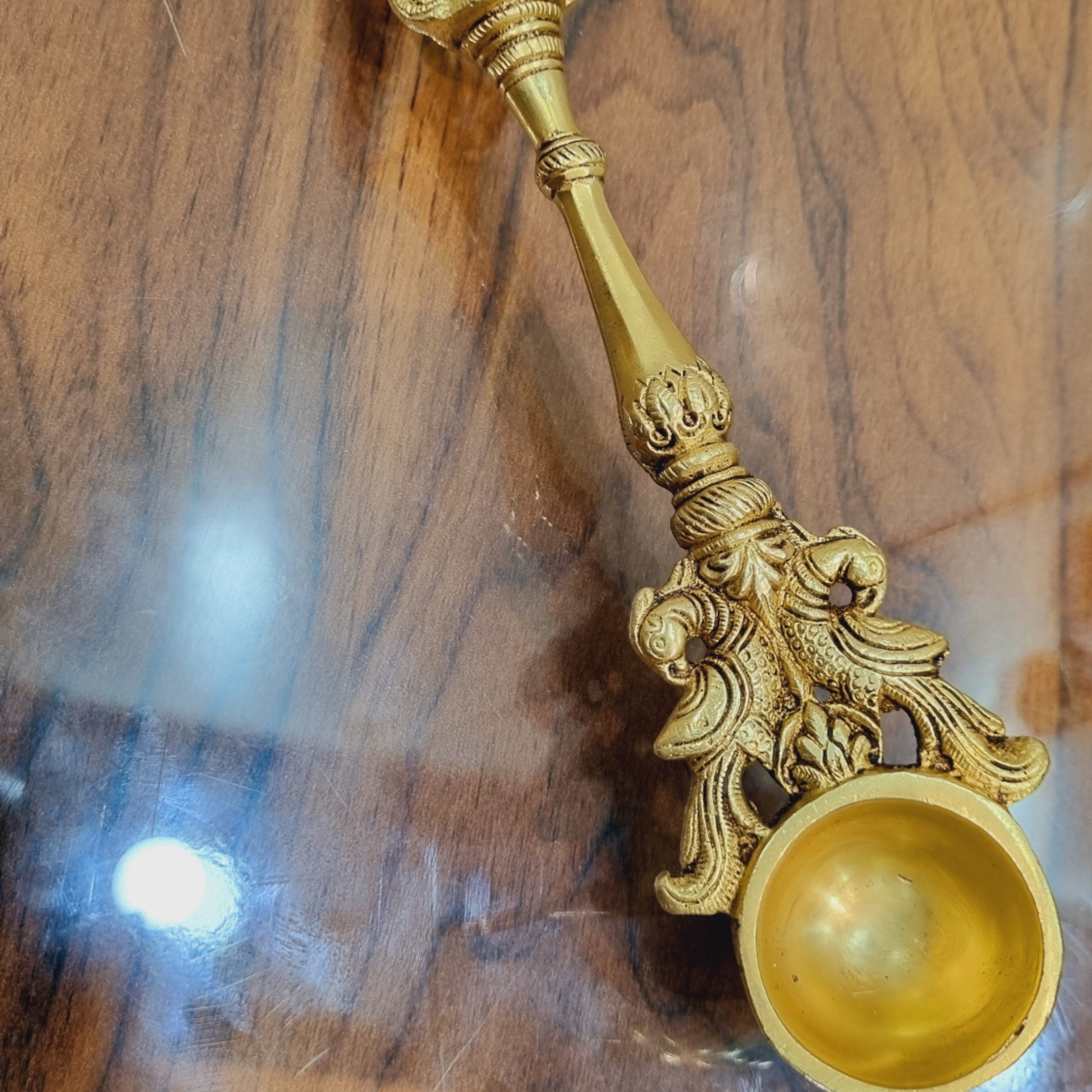 Brass Ritual Spoon | Handcrafted Religious Spoon for Temples and Home Pooja | Handmade Brass Pooja Spoon ( Yellow, 10 inch)