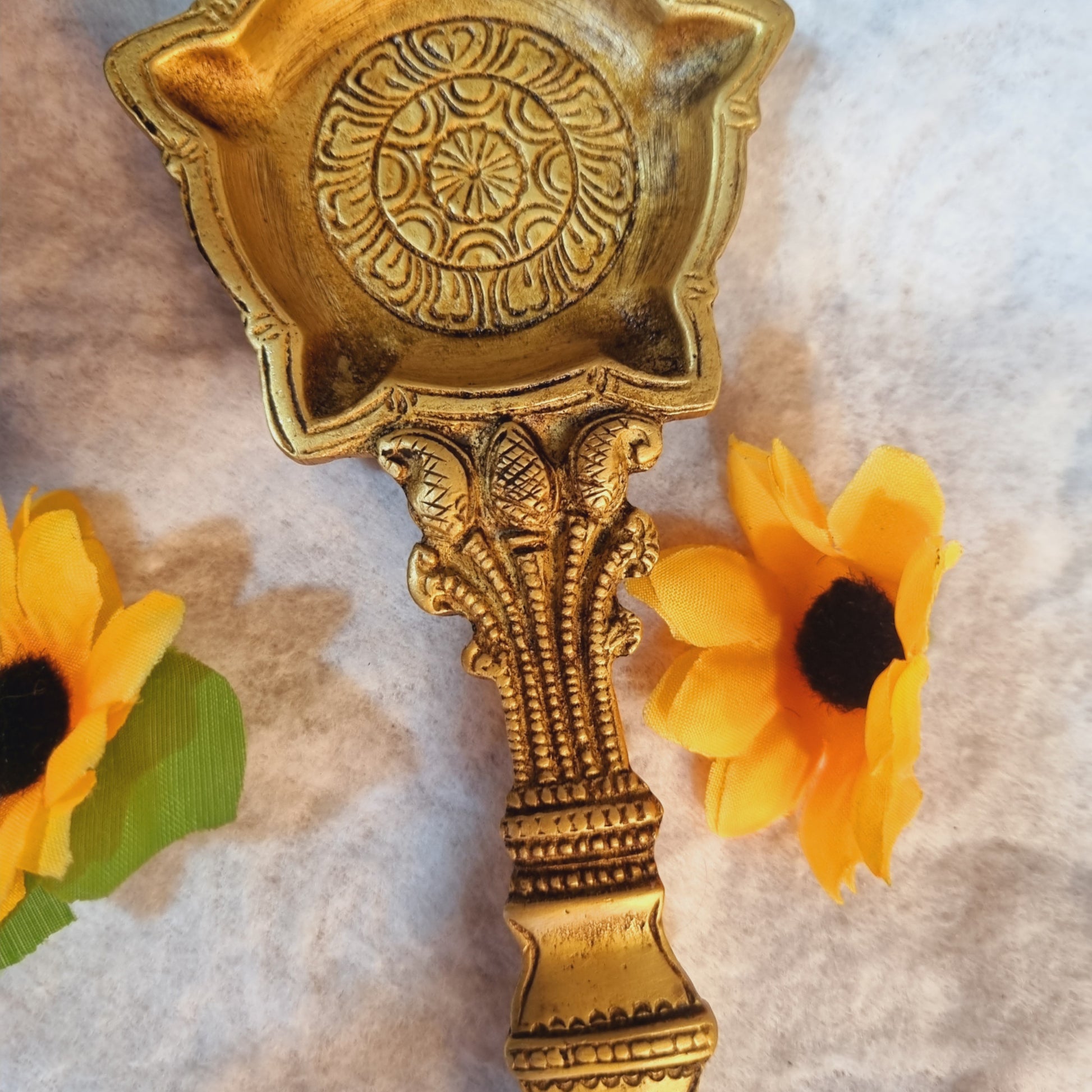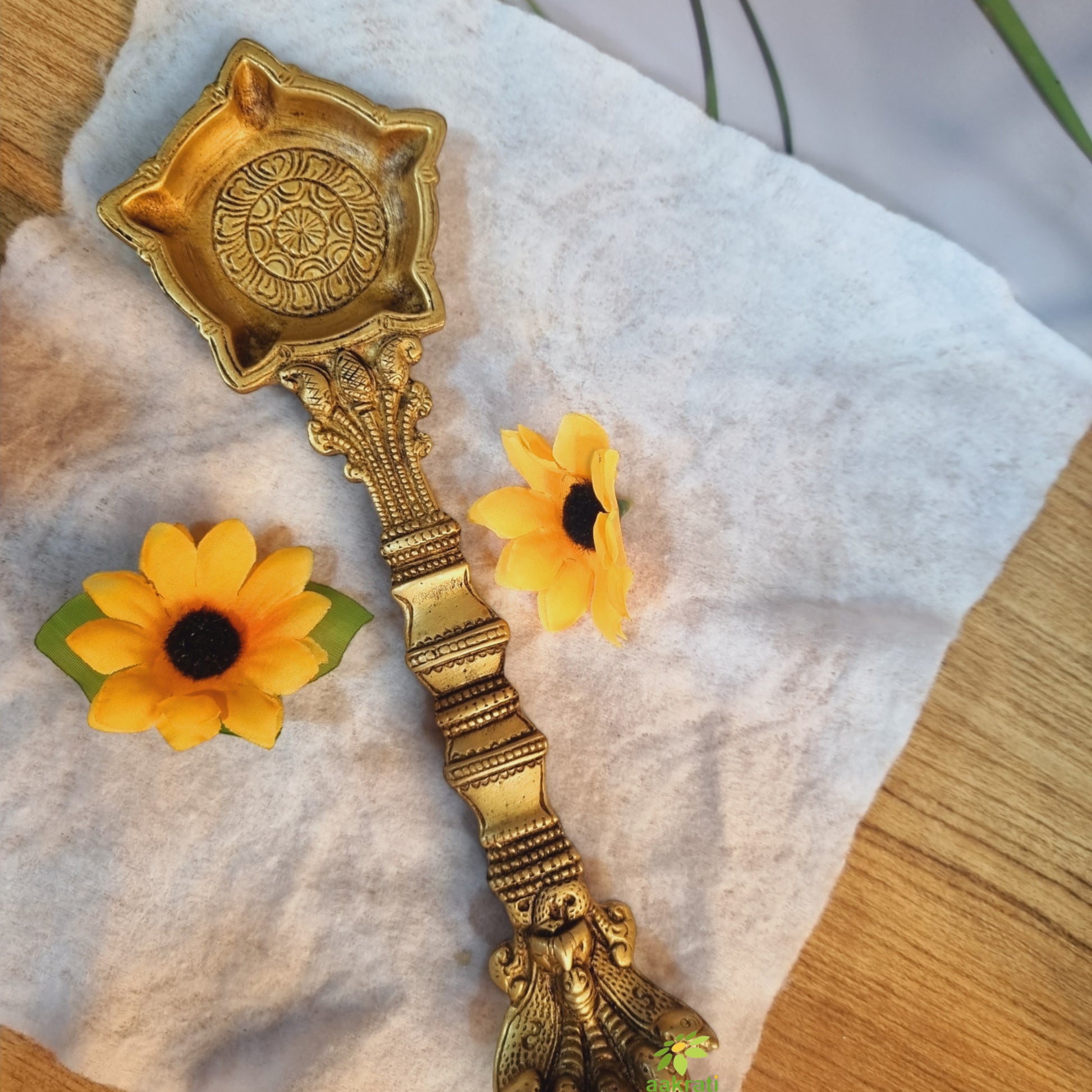 Handmade Brass Spoon for Pooja | Elegant Religious Spoon for Offerings and Rituals | Brass Pooja Spoon ( Yellow, 10 inch)