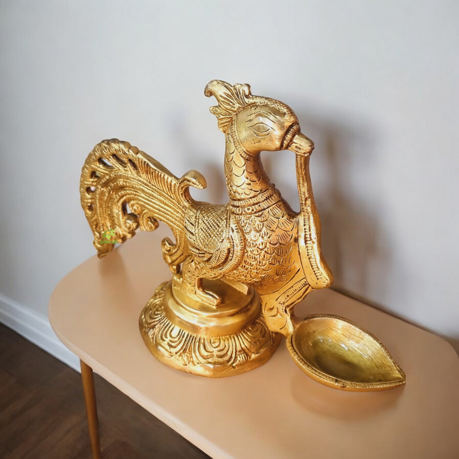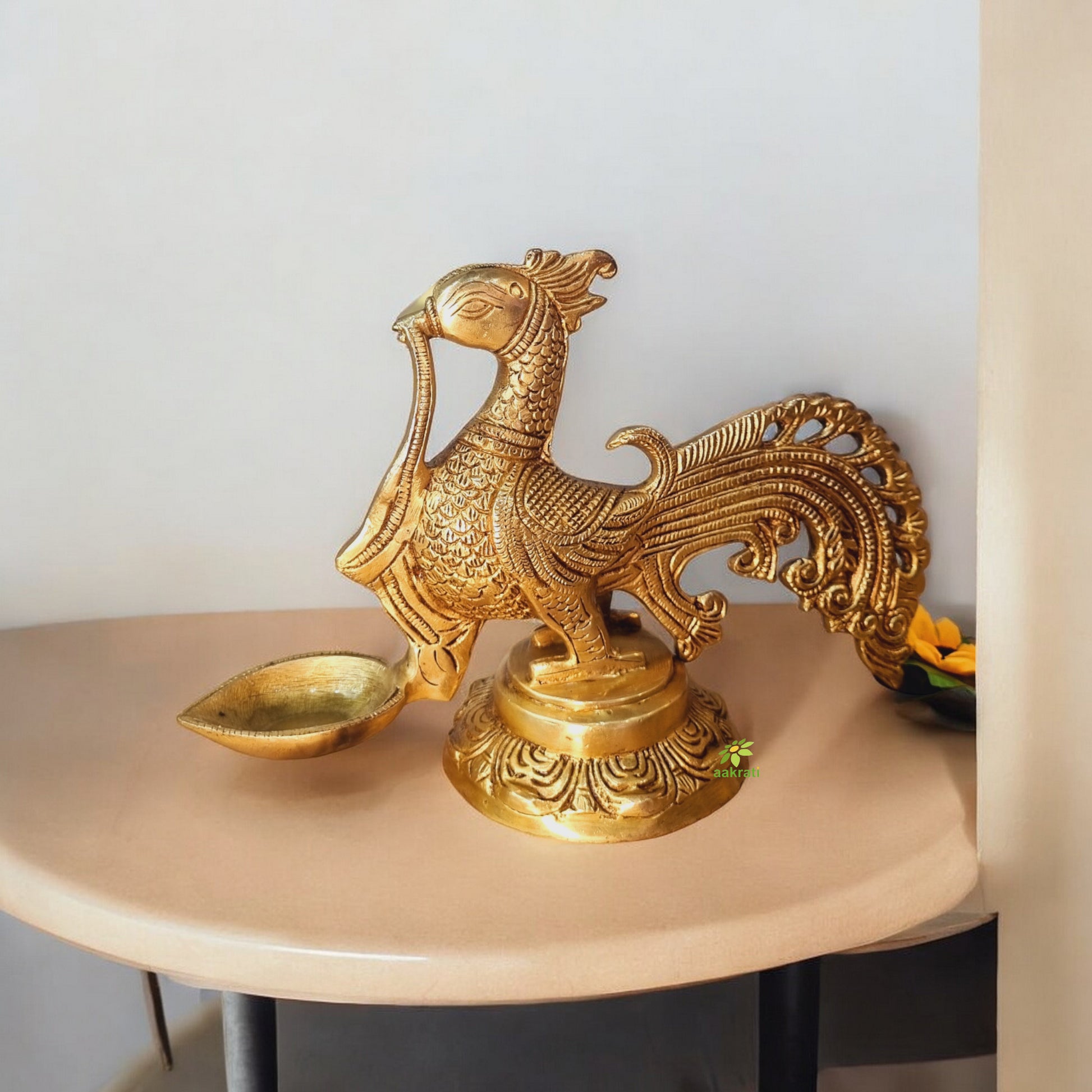 Handmade Traditional Brass Diya | Perfect for Spiritual Celebrations | Brass Bird Shape Luxury Diya ( Yellow, 9 inch)