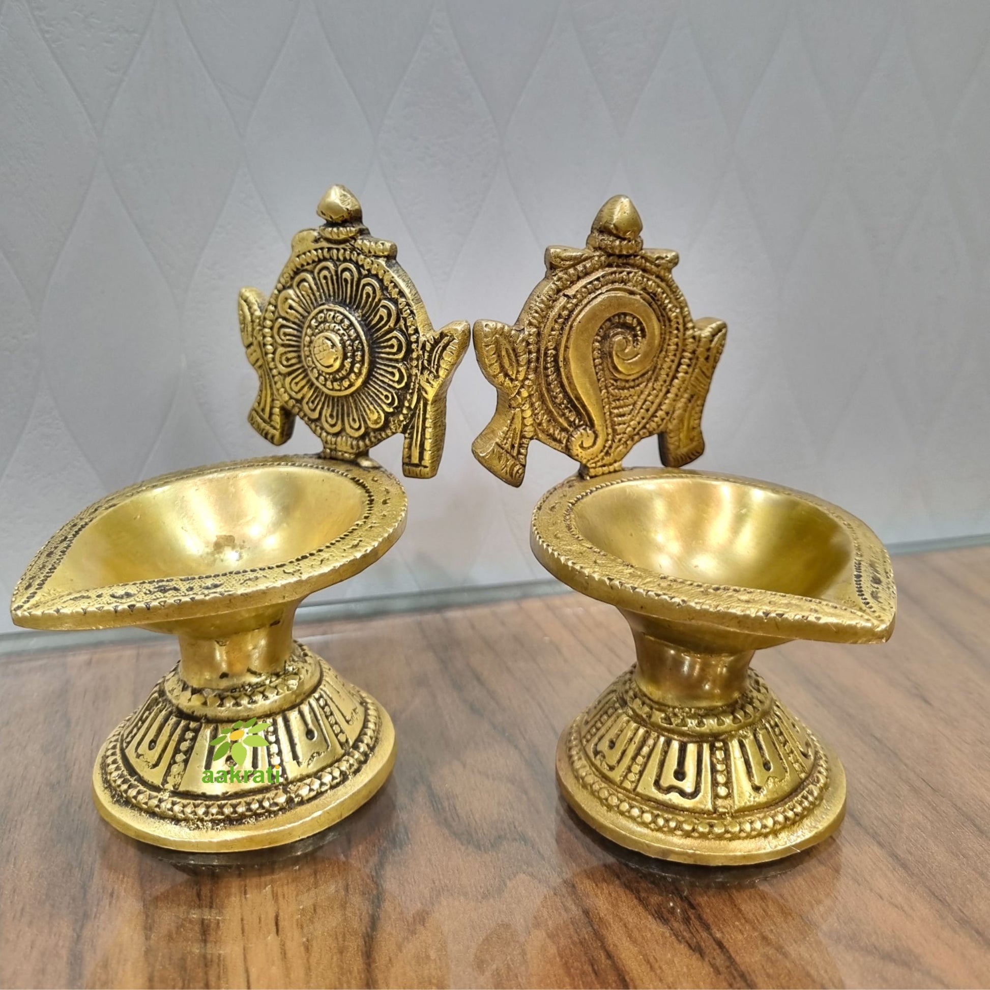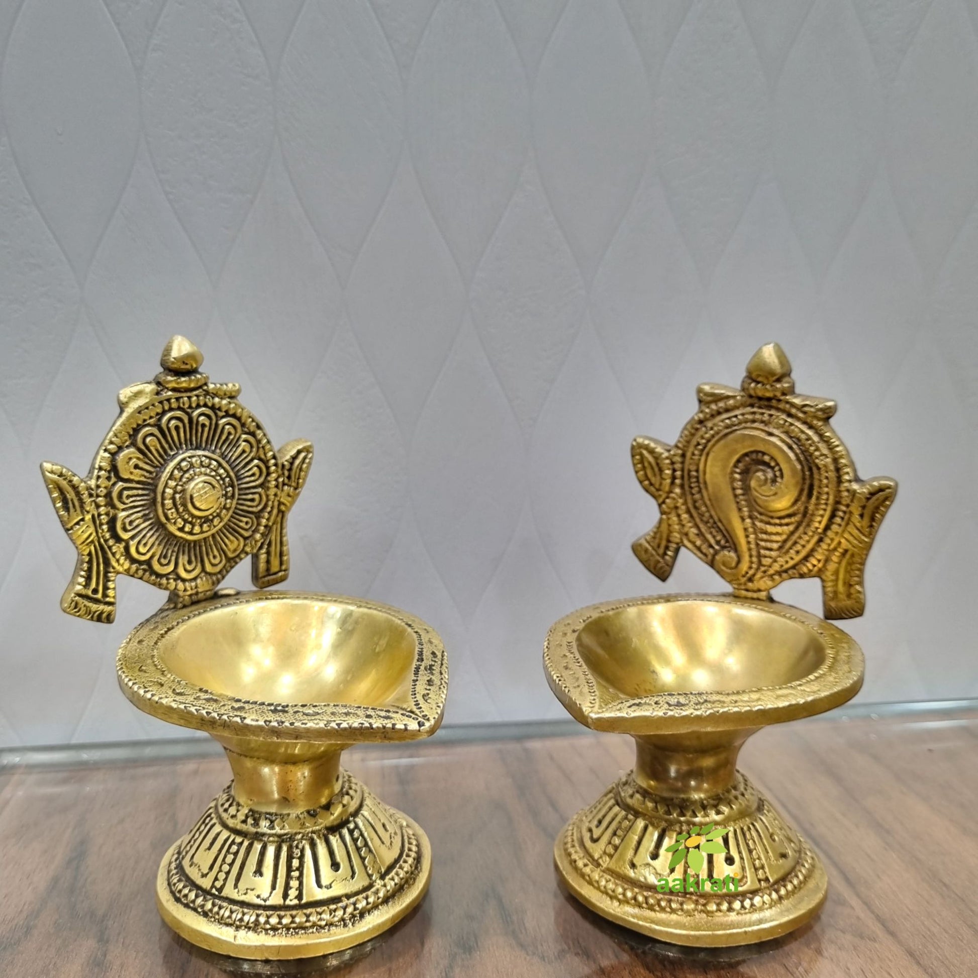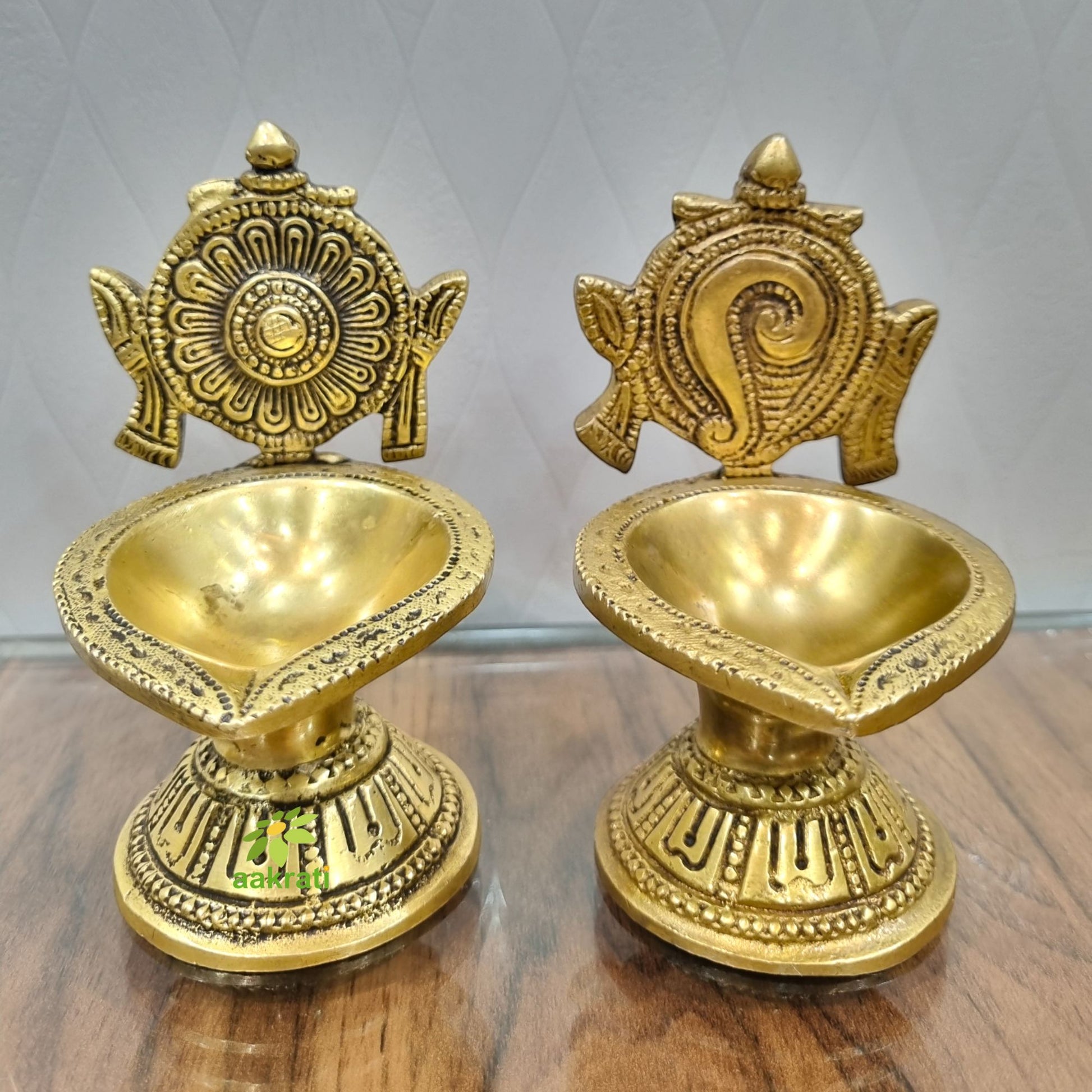 Shankh Chakra Diya Lamp 5 inch/ Home Temple Diya/ Handmade Brass Vishnu Lamp