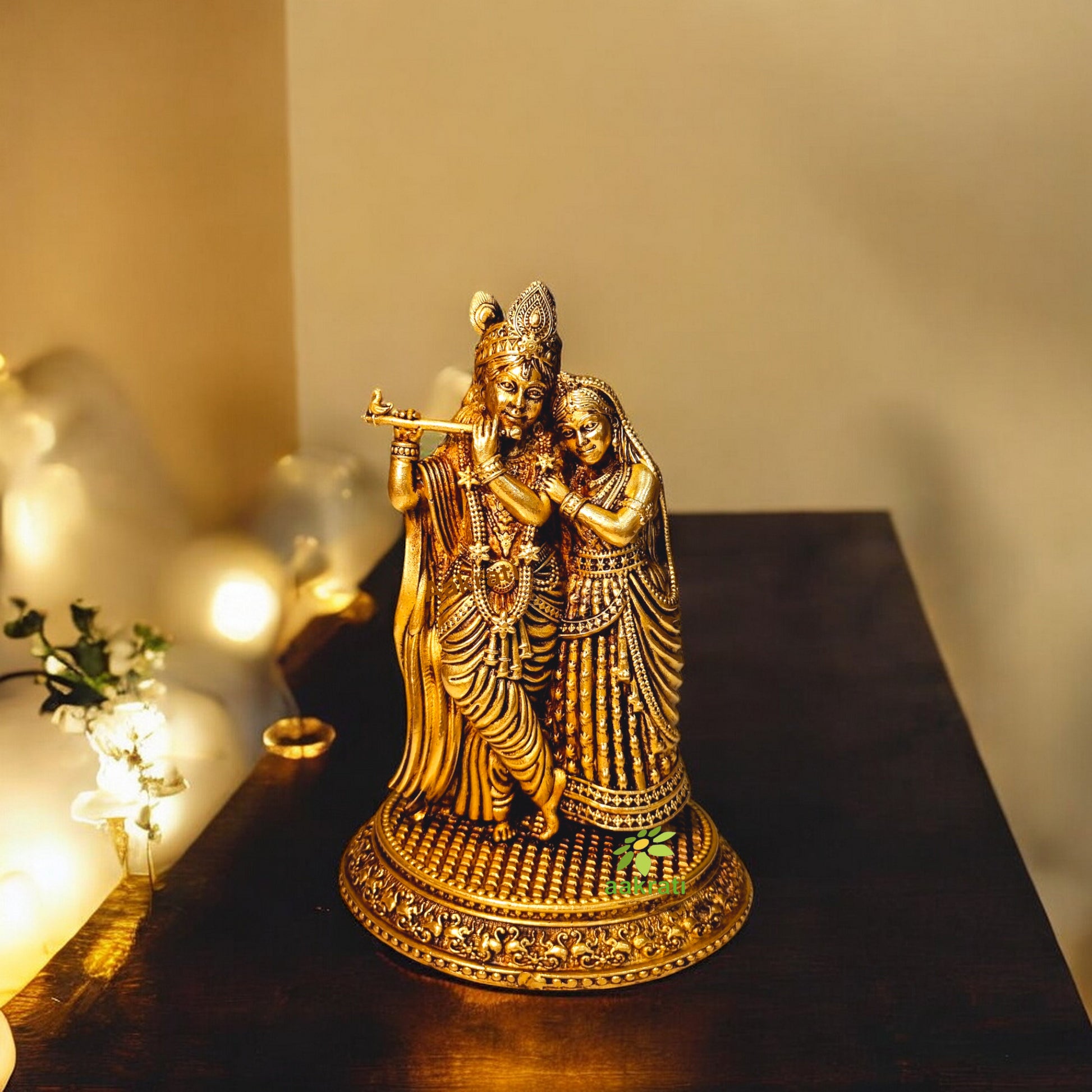 Brass Gift Set – Radha Krishna Murti, Laxmi Narayan Idols & Diya Lamp | Ideal for Home Temple, Festival Rituals & Gifting